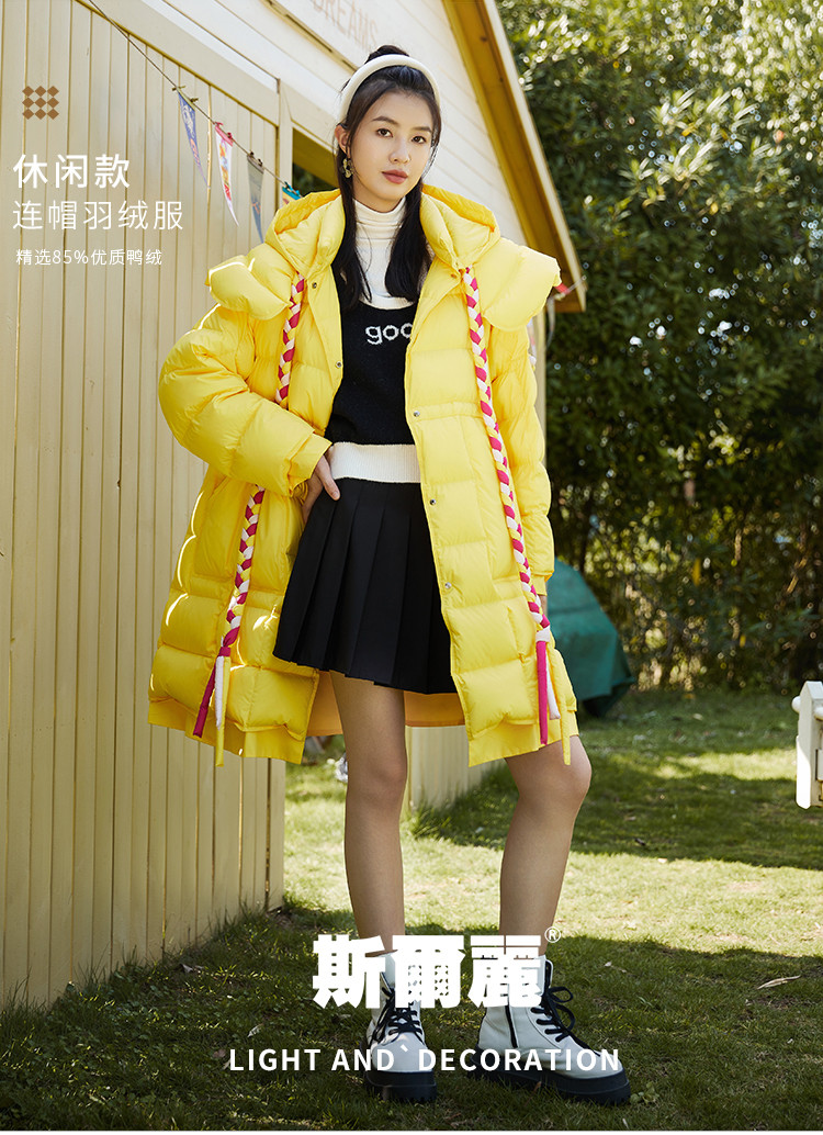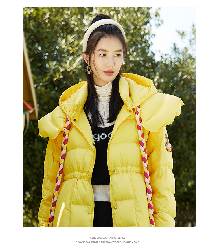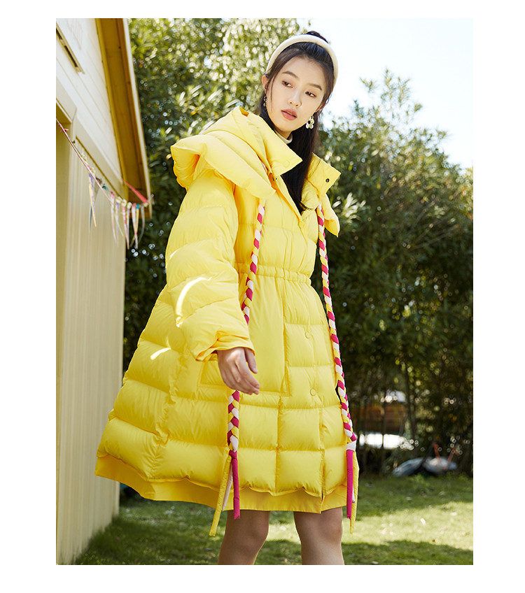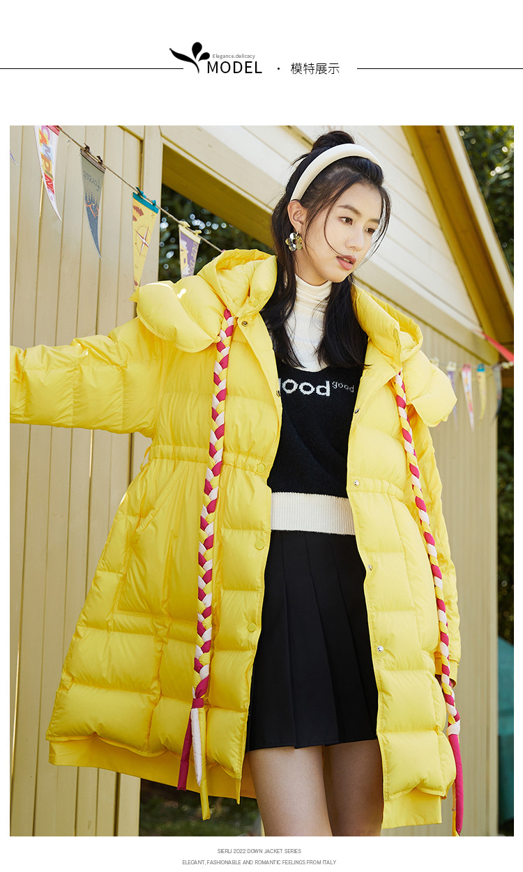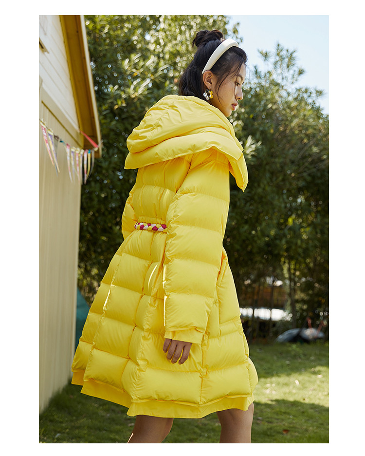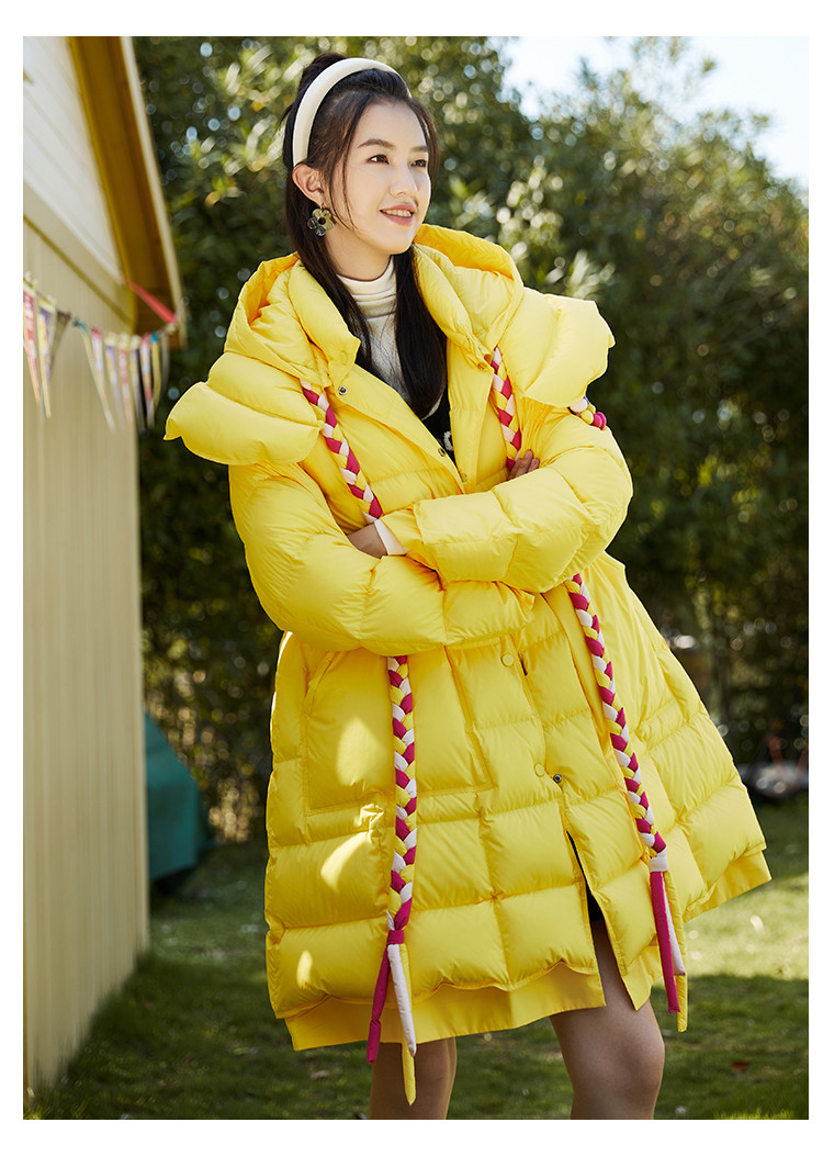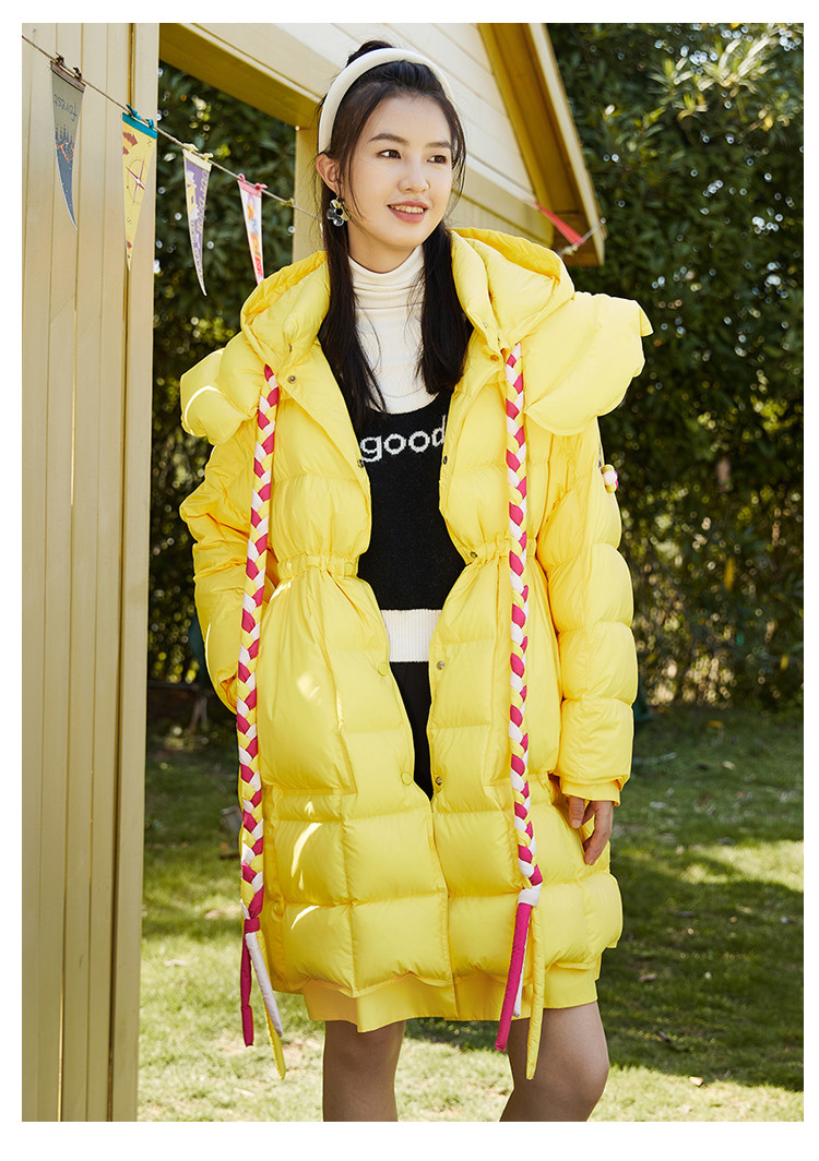 商品名称:活力泡芙女式连帽保暖宽松厚款中长款休闲羽绒服 582175