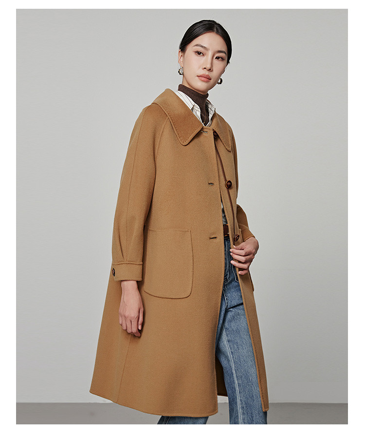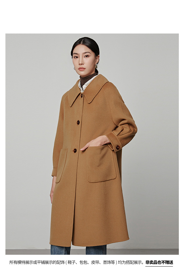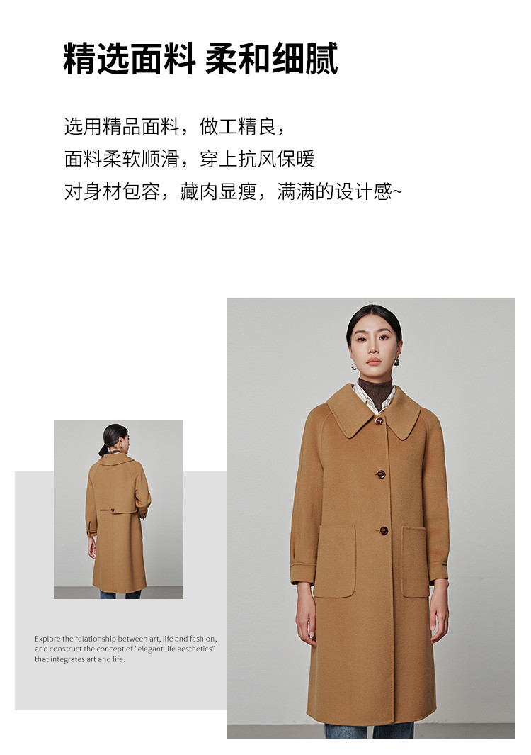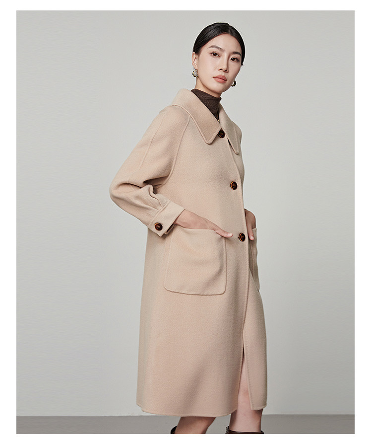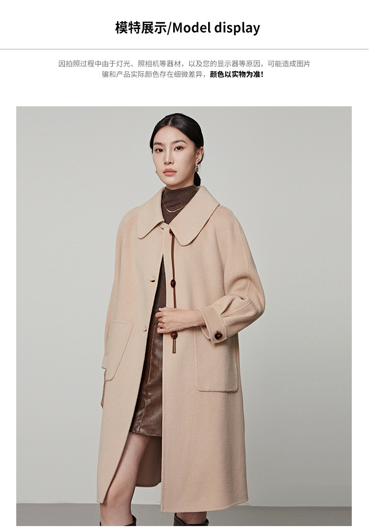 商品名称:秋冬小个子翻领100%羊毛大衣女式长款单排扣双面呢外套 555999