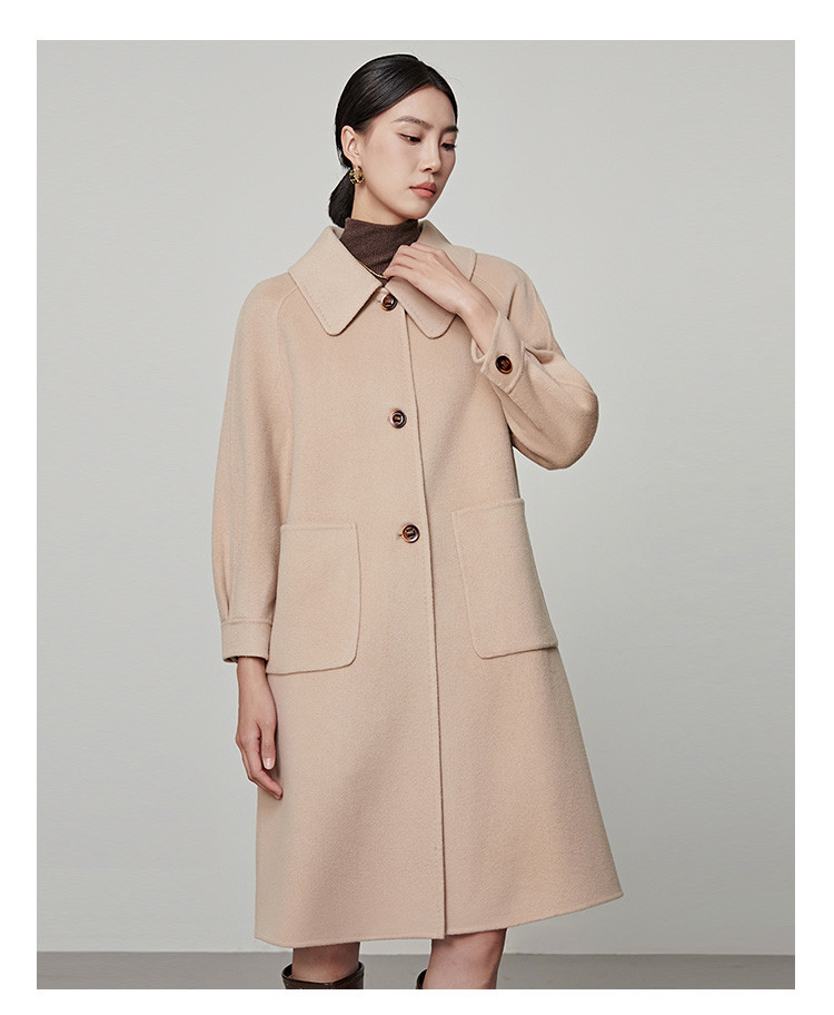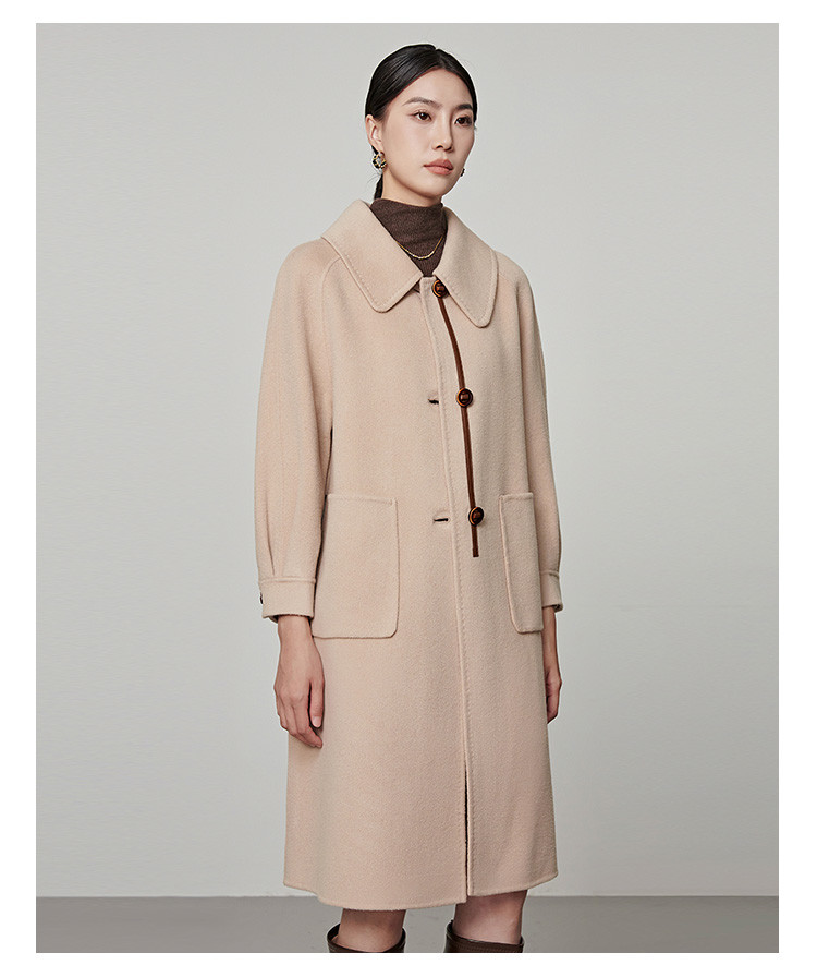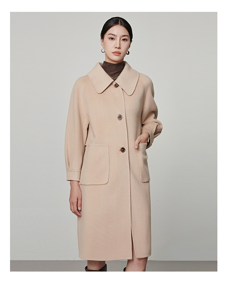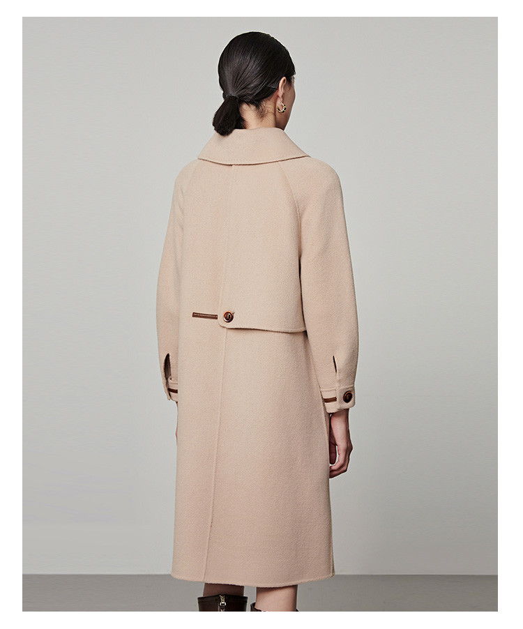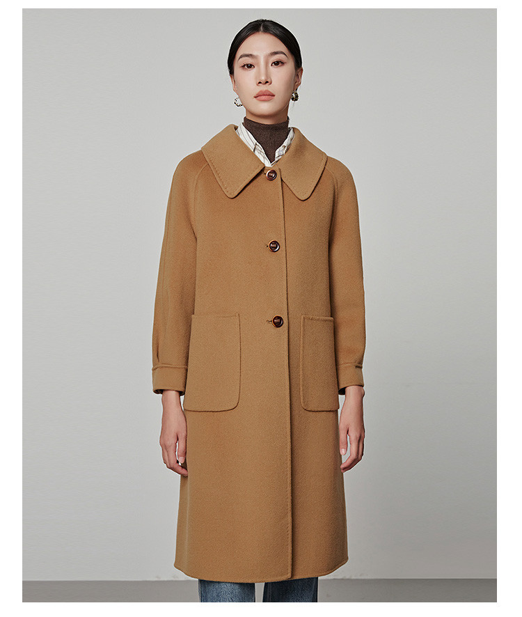商品名称:秋冬小个子翻领100%羊毛大衣女式长款单排扣双面呢外套 555999