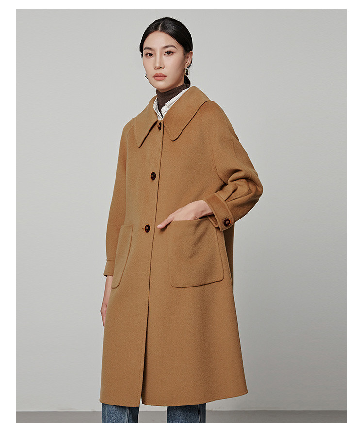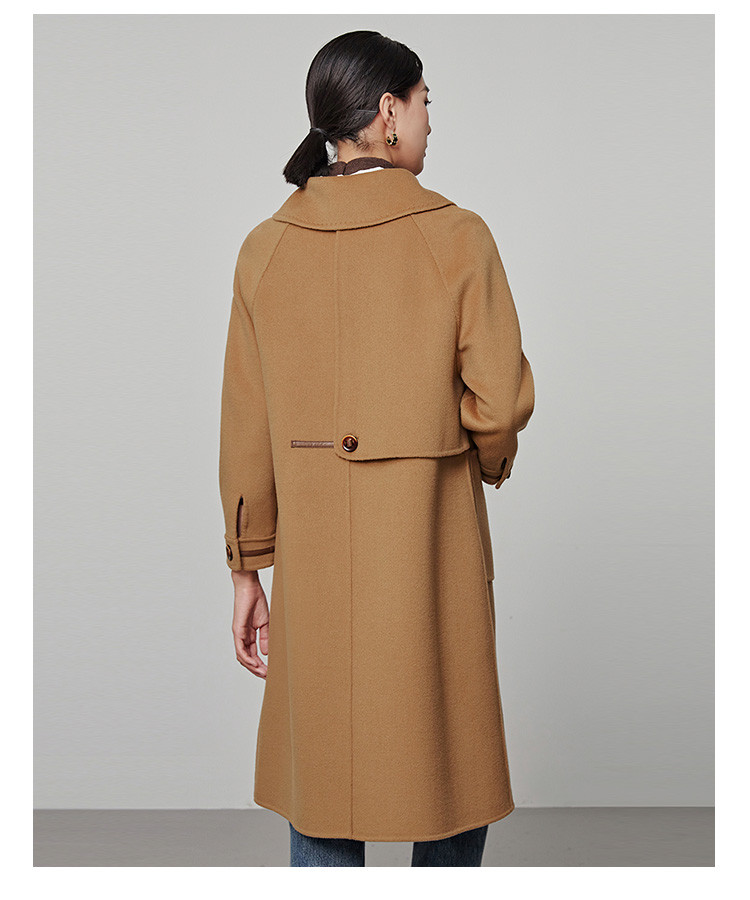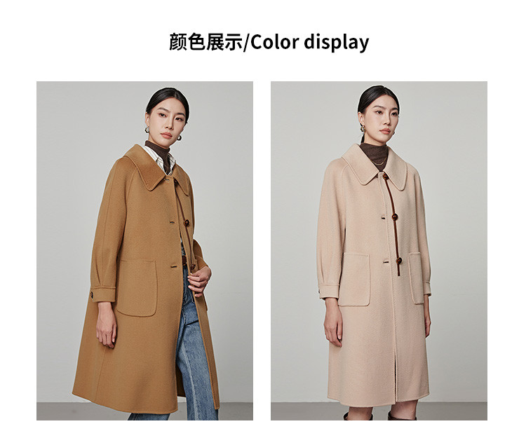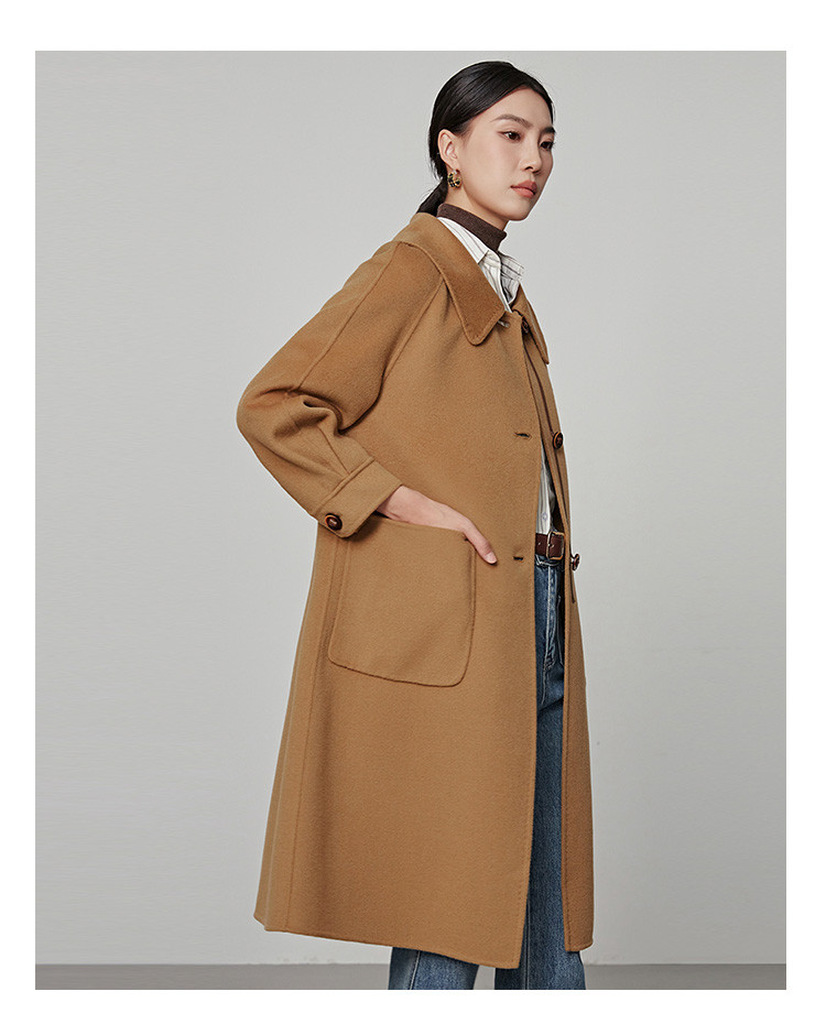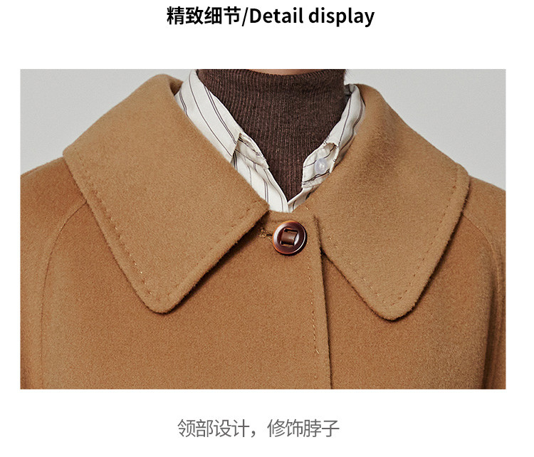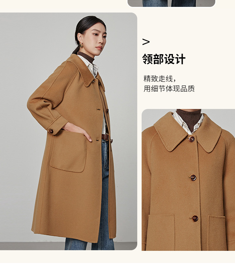 秋冬小个子翻领100%羊毛大衣女式长款单排扣双面呢外套 555999
