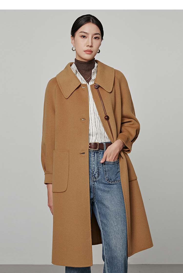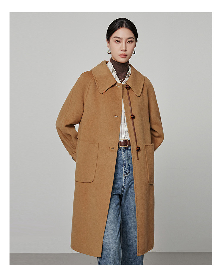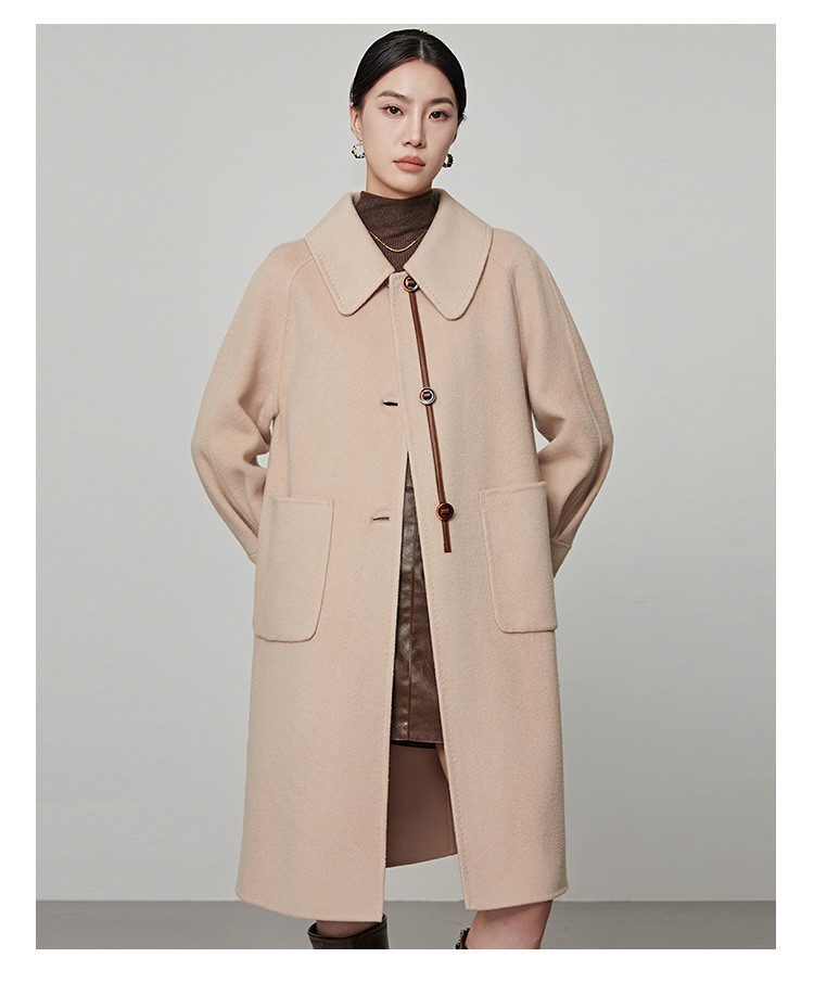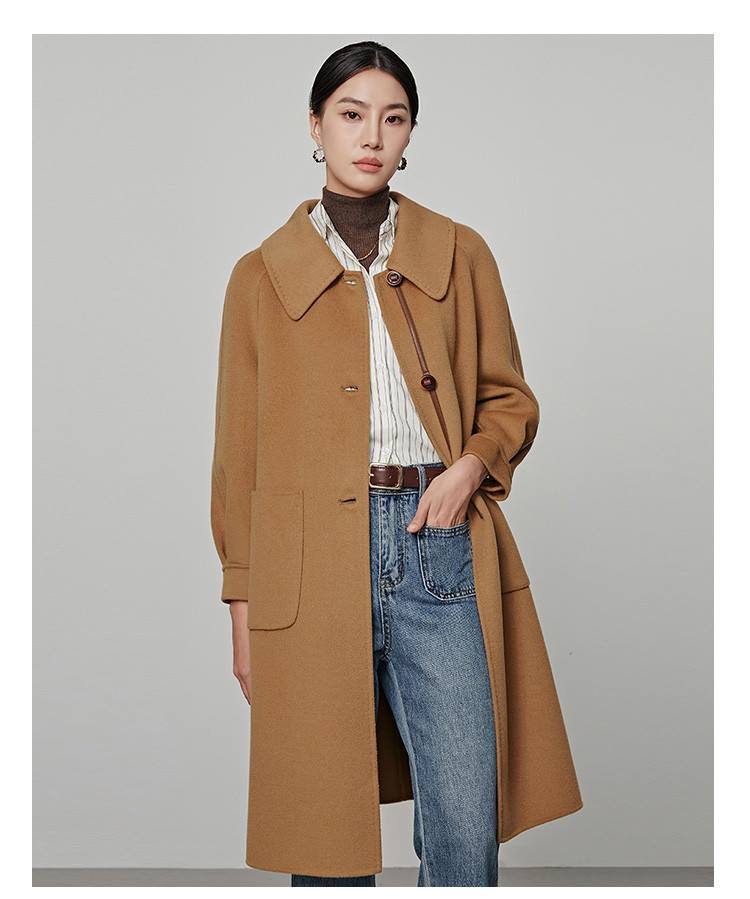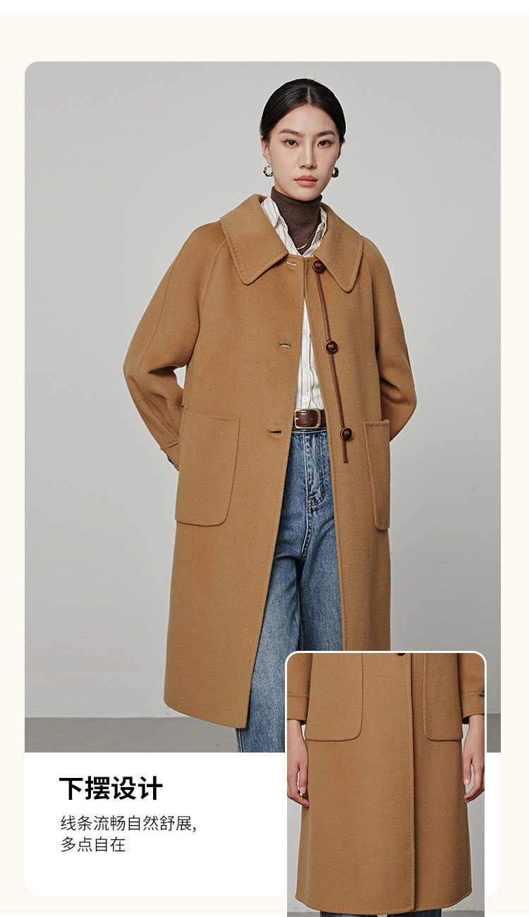 秋冬小个子翻领100%羊毛大衣女式长款单排扣双面呢外套 555999