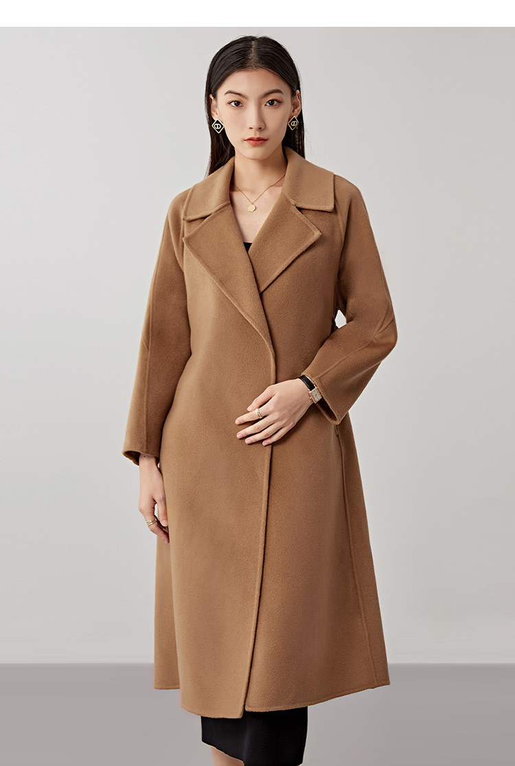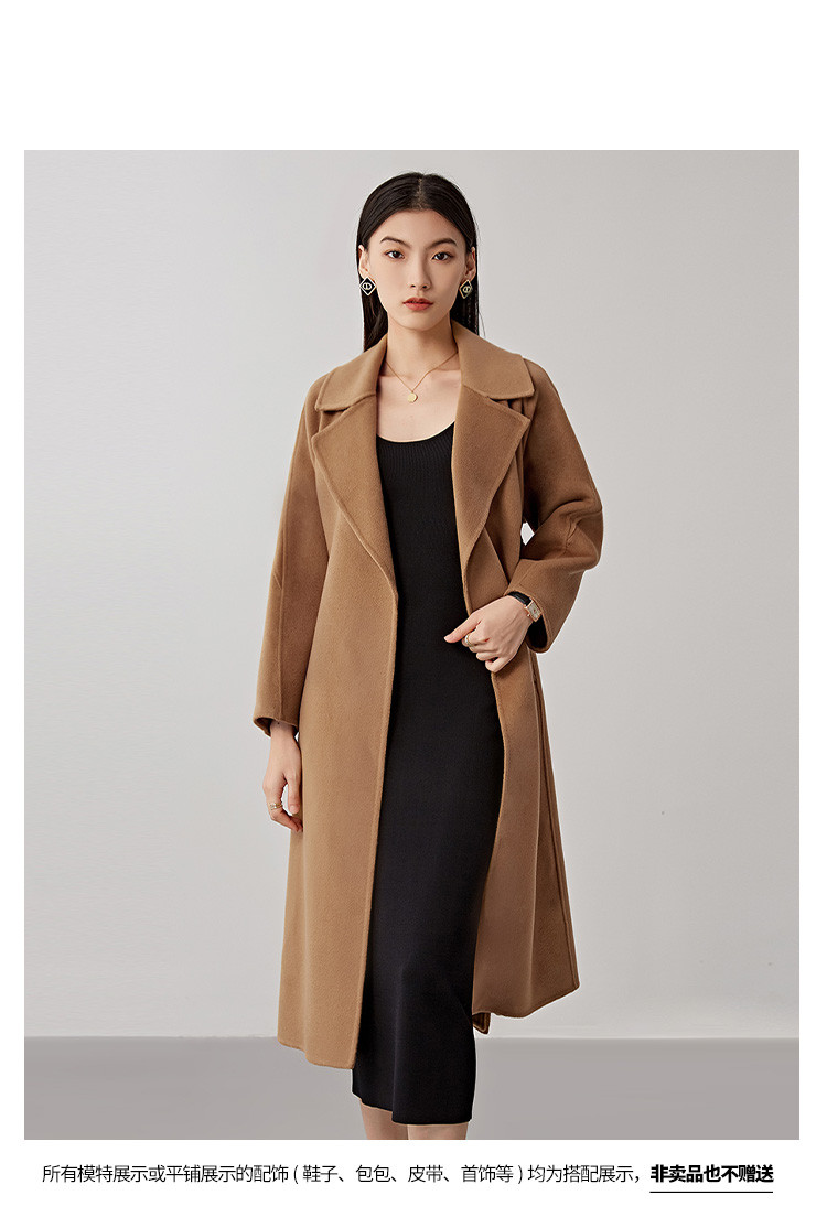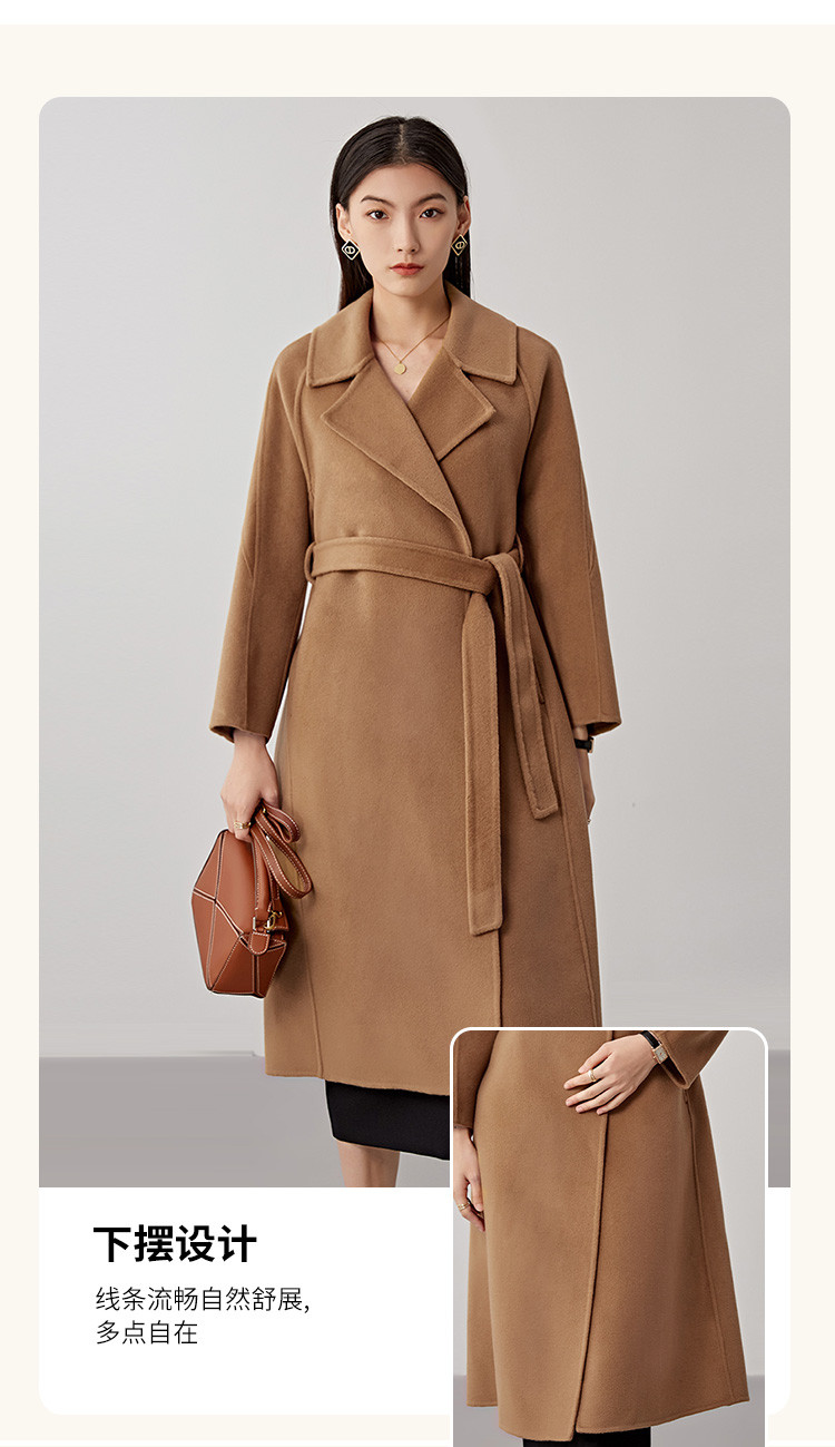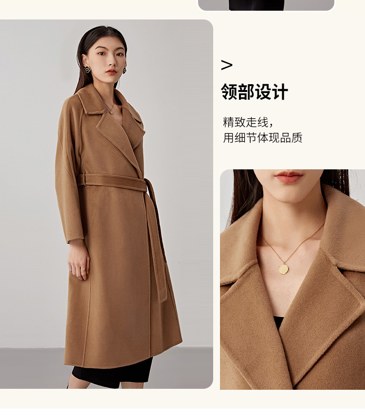 【含山羊绒】秋冬简约百搭羊毛羊绒大衣女式长款双面呢外套 041375