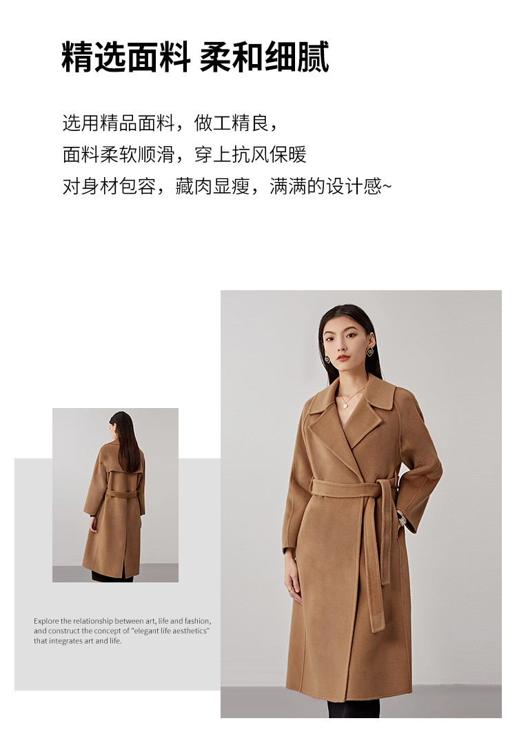 商品名称:【含山羊绒】秋冬简约百搭羊毛羊绒大衣女式长款双面呢外套 041375