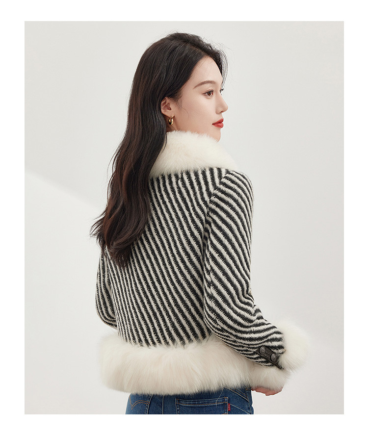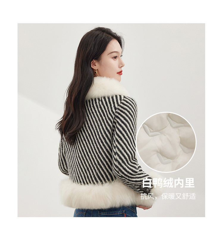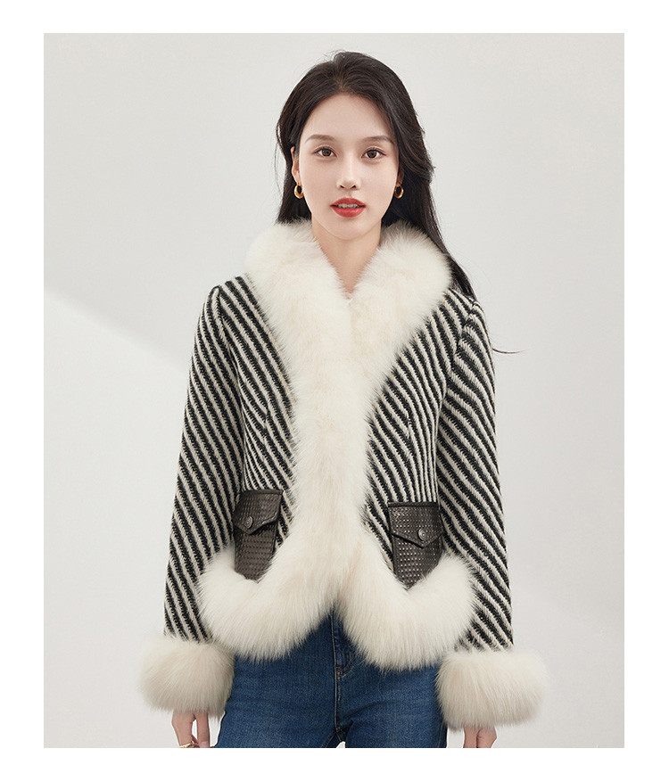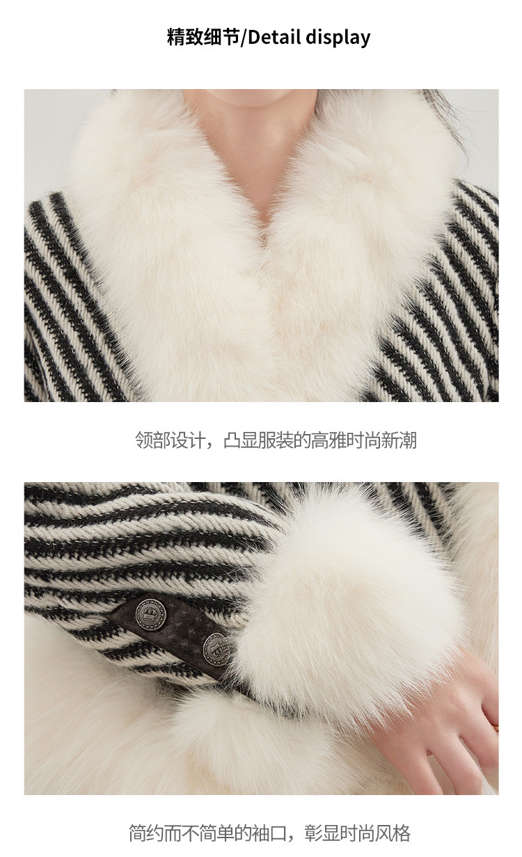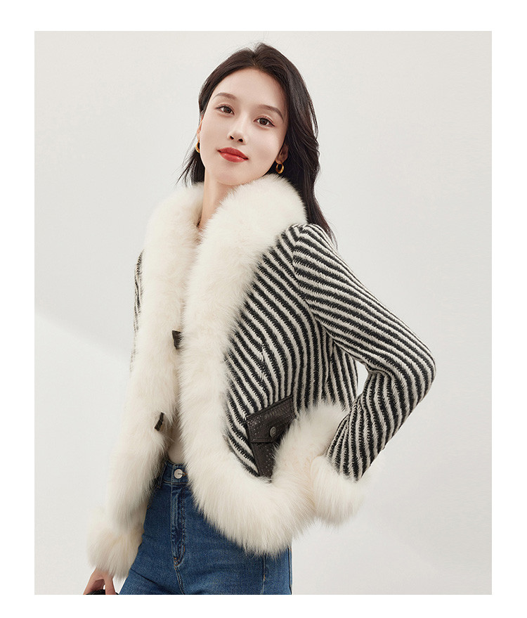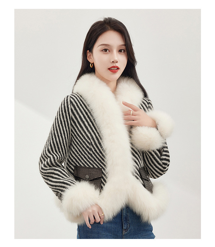 商品名称:冬季短款小香风绵羊皮拼接狐狸毛皮外套女式气质优雅休闲仿皮草 376095
