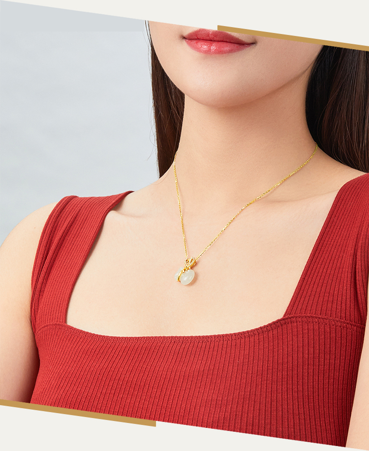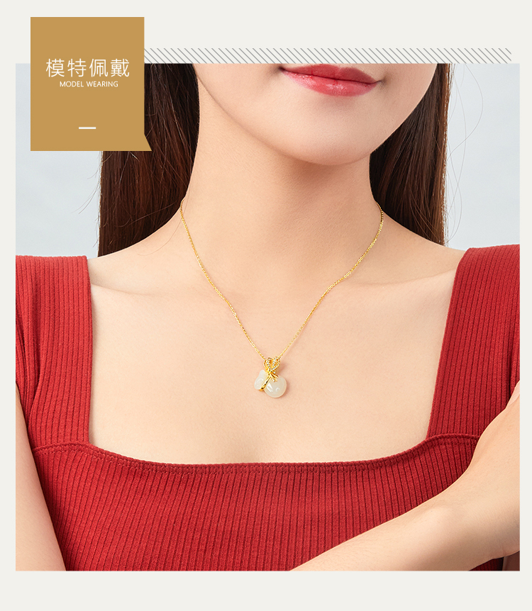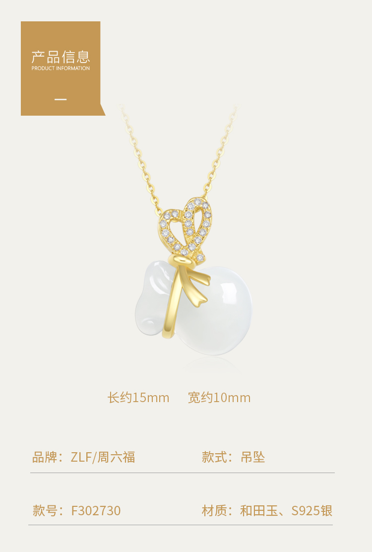 商品名称:周六福S925银和田白玉戴袋有钱吊坠项链
