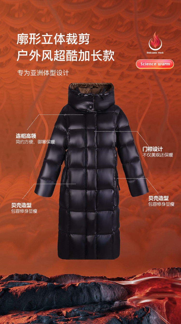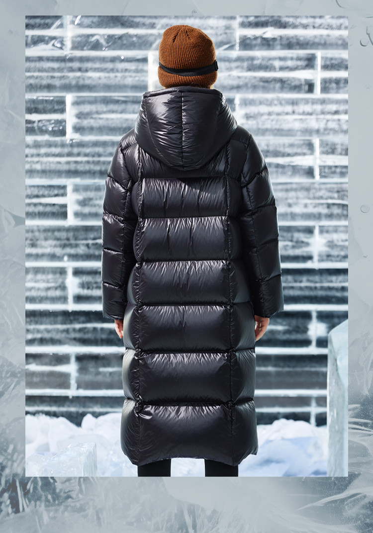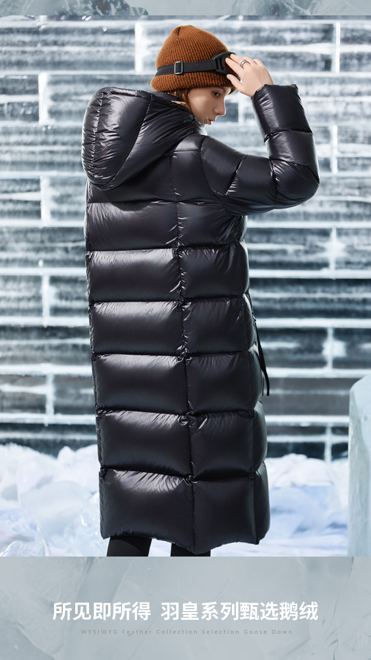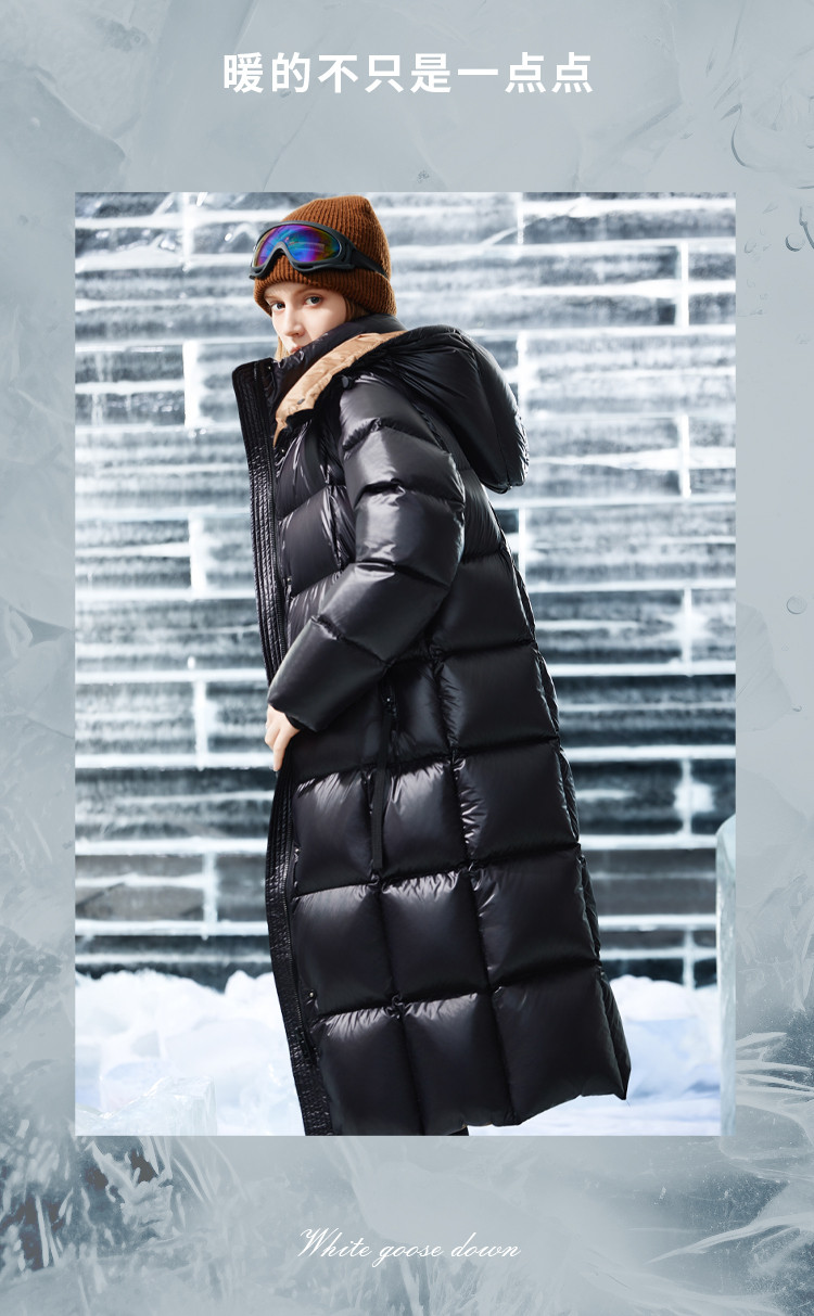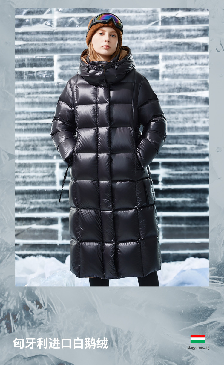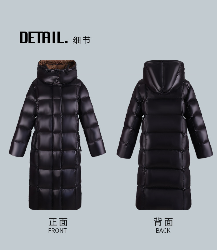 商品名称:【鹅绒羽皇系列】加厚宽松连帽女式直筒长款羽绒服 160351