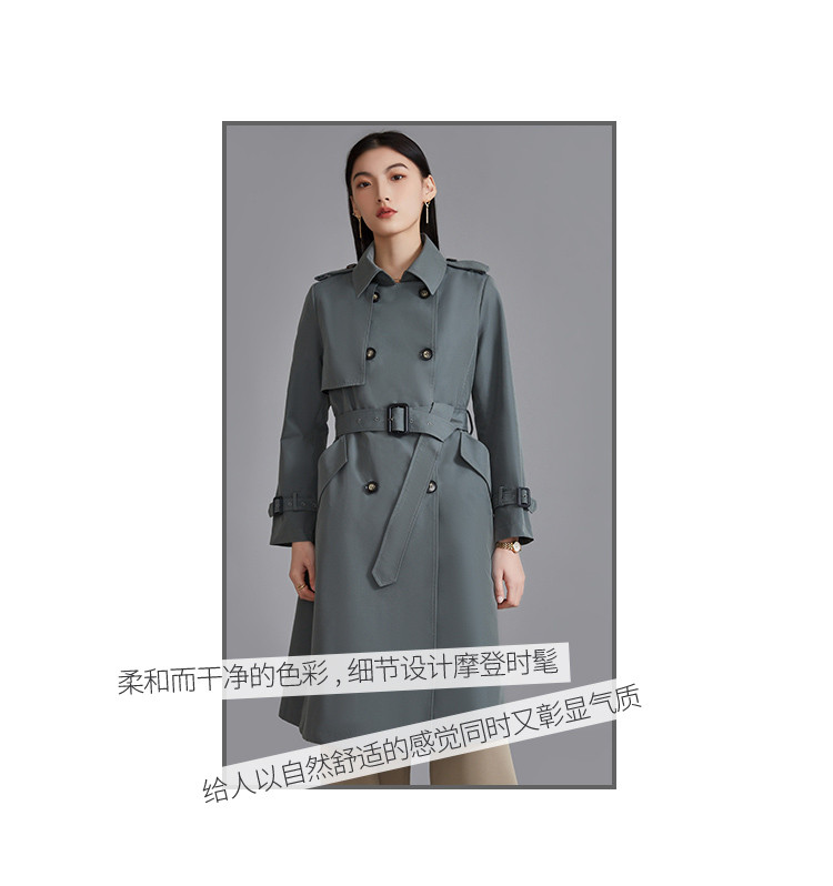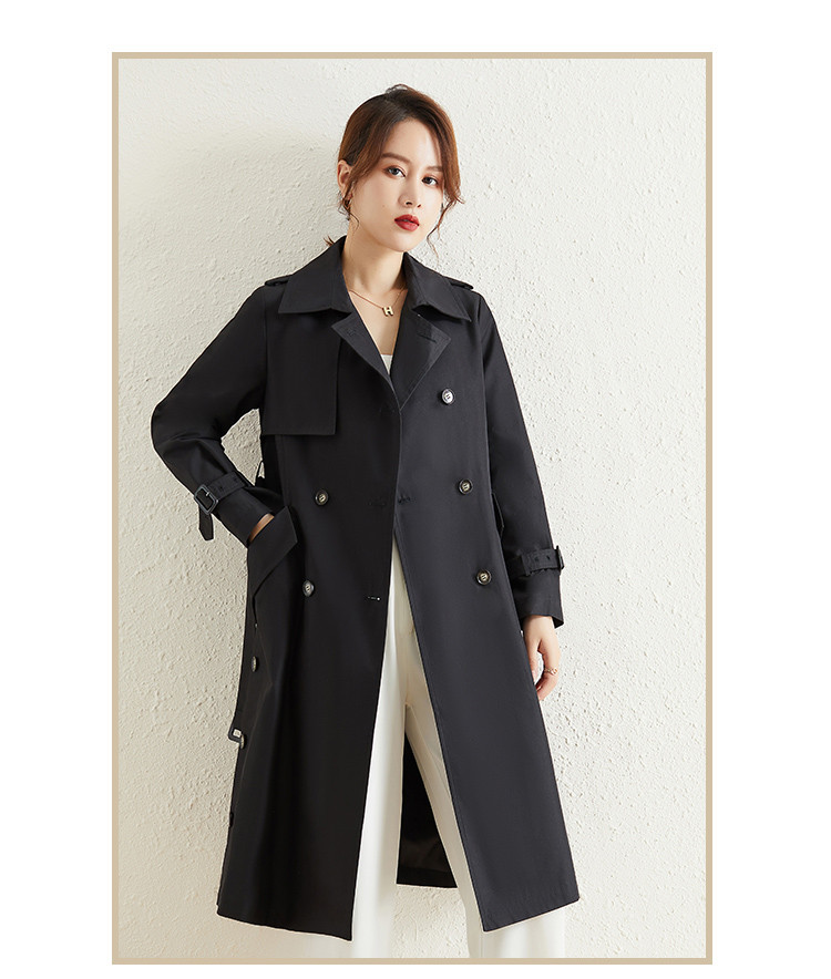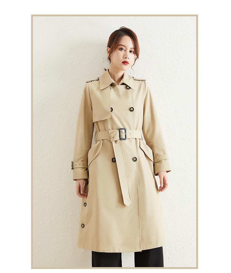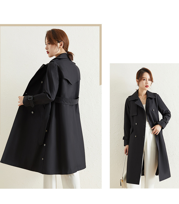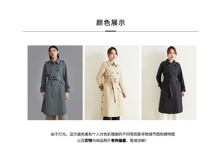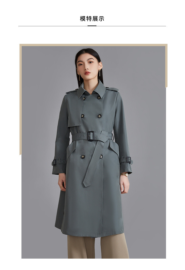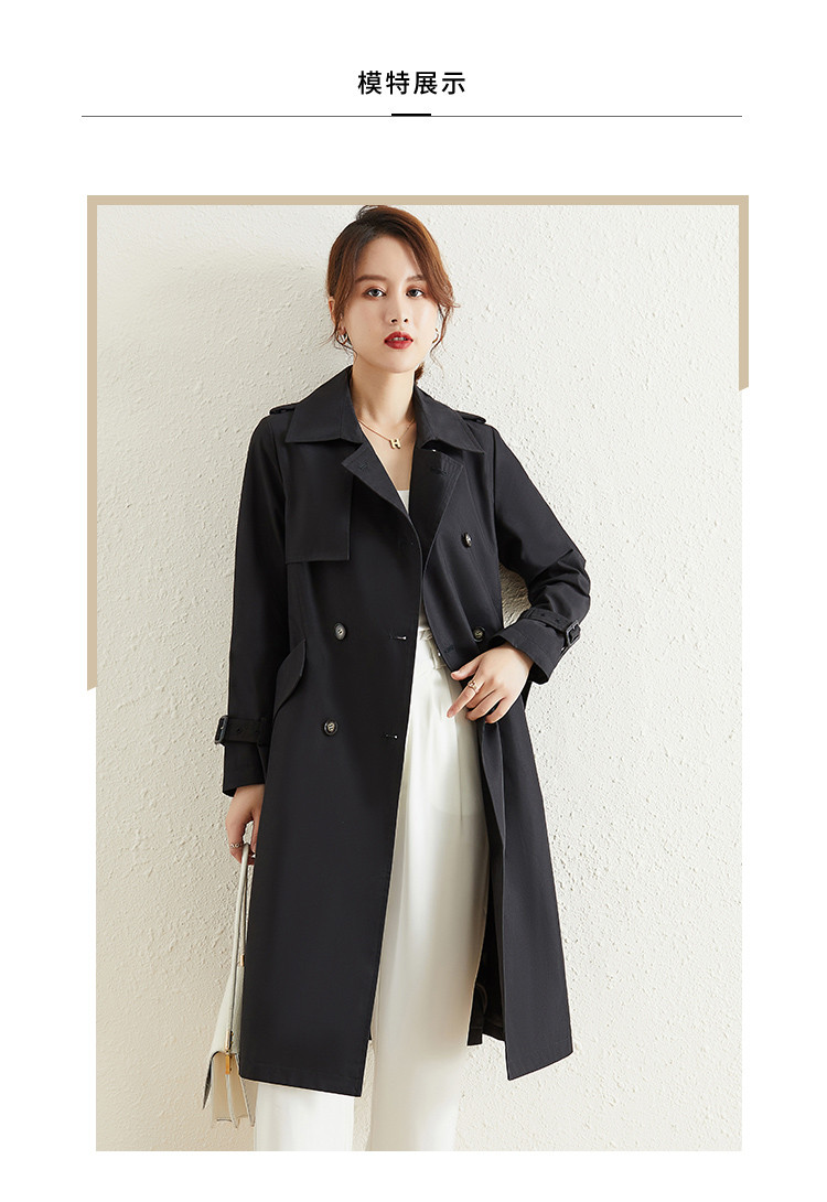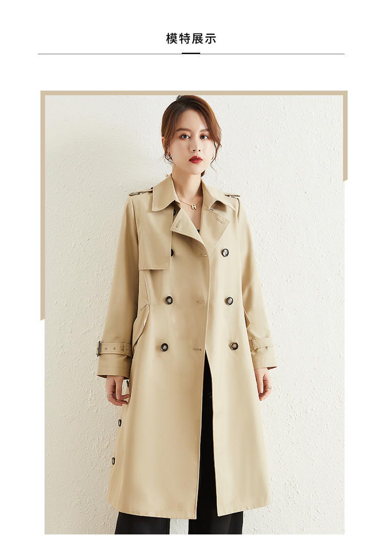 商品名称:【双排扣简约风】春秋女式翻领长袖中长款风衣外套 458655