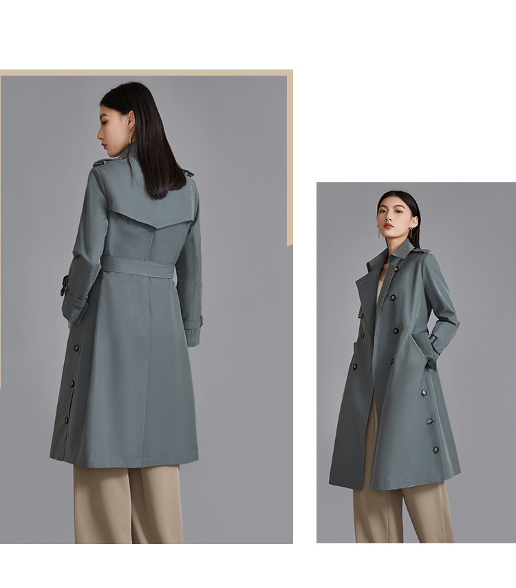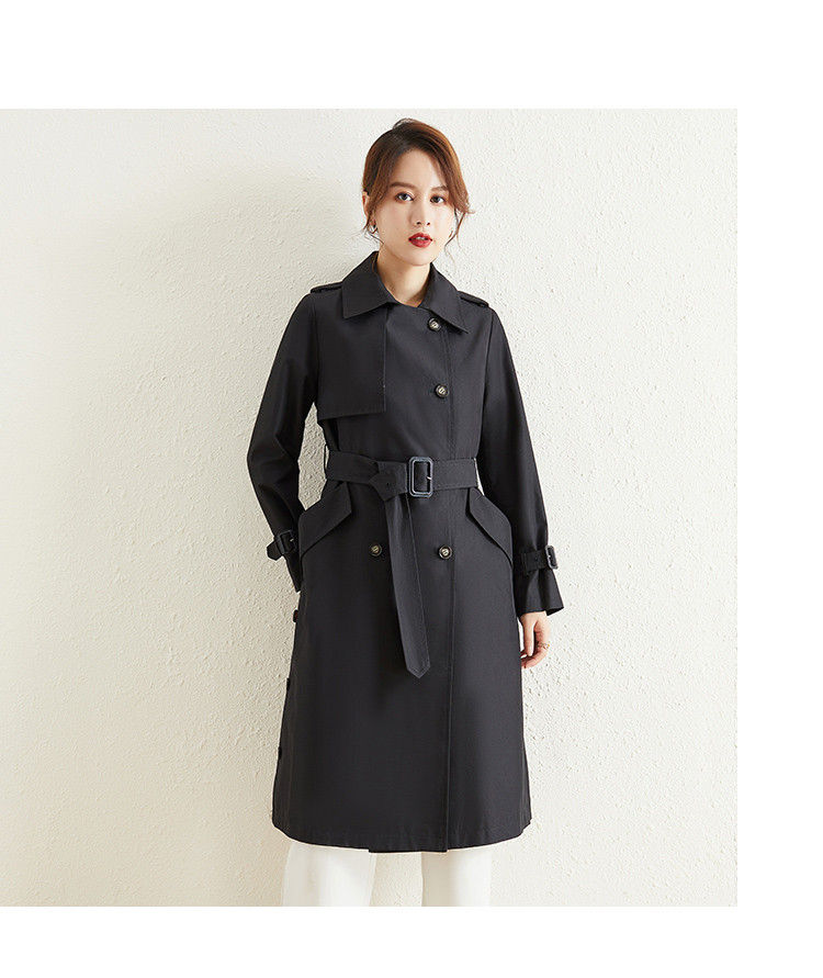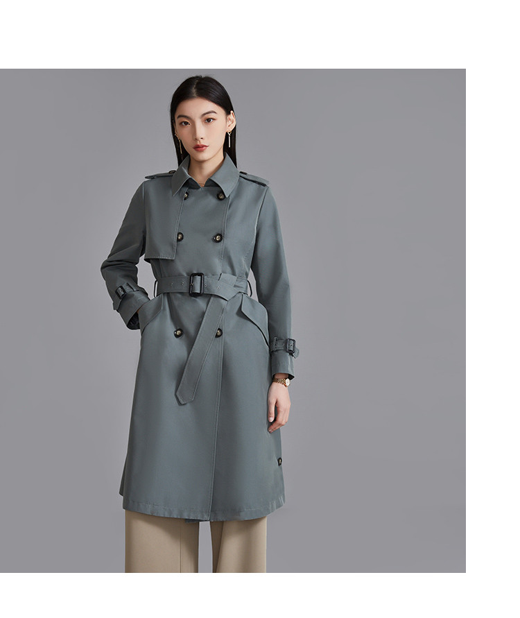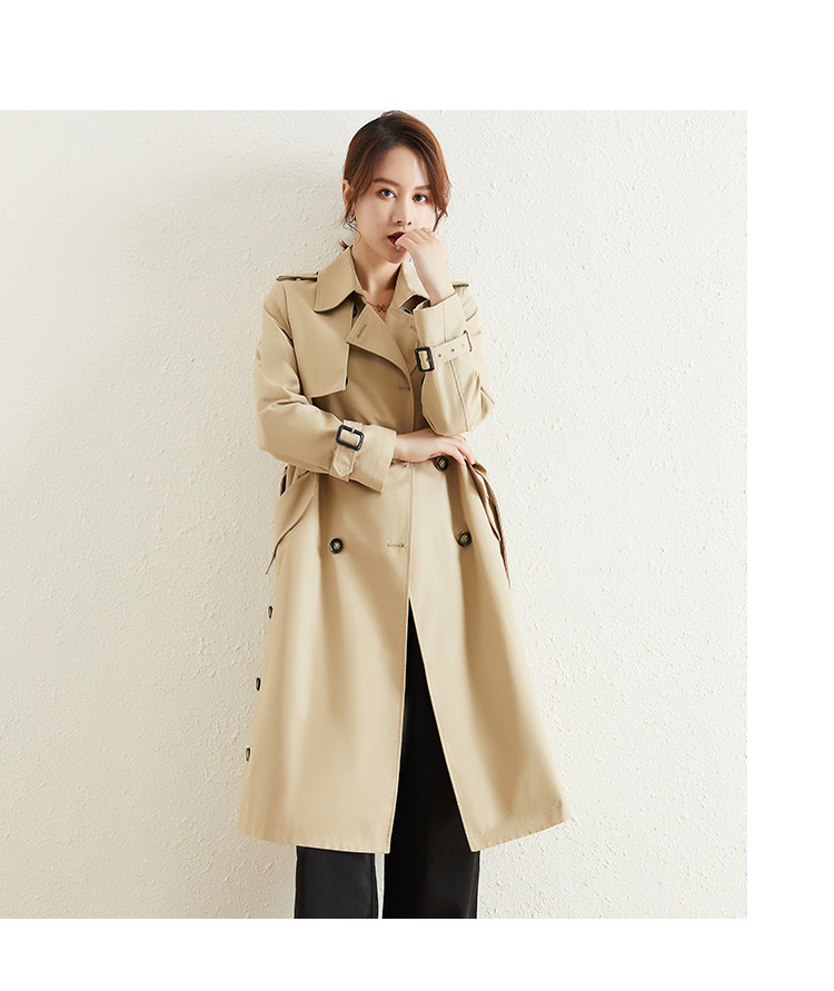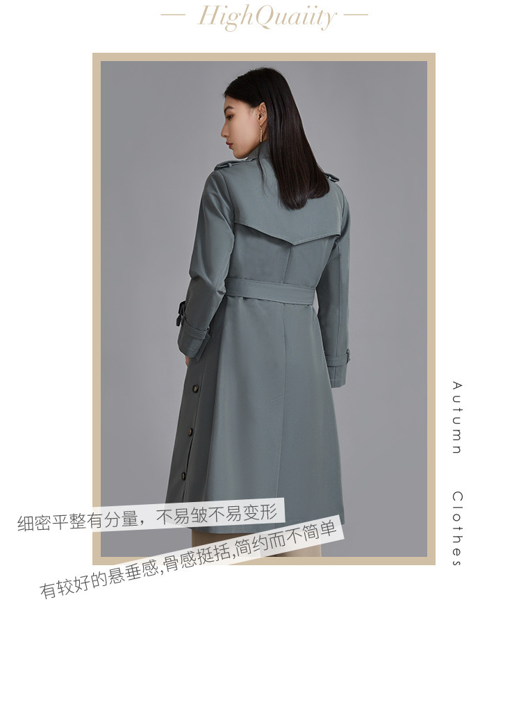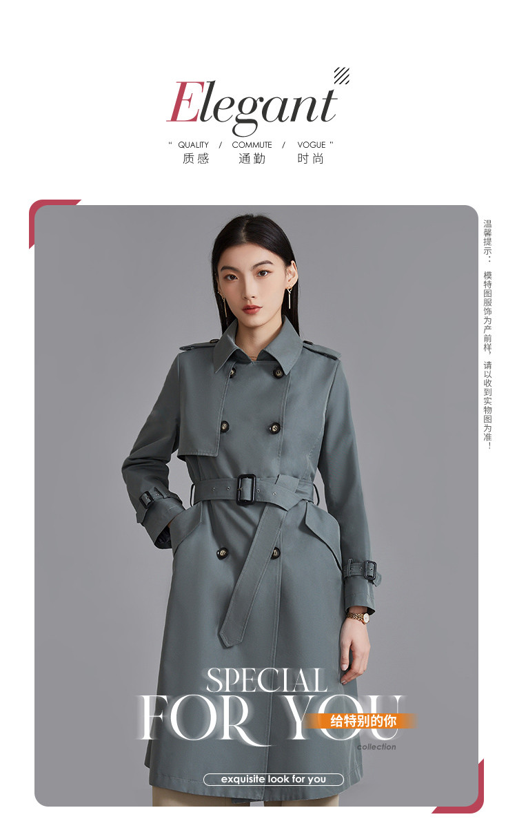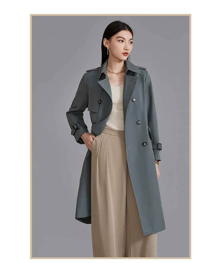 商品名称:【双排扣简约风】春秋女式翻领长袖中长款风衣外套 458655
