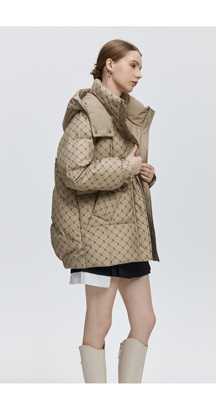 【潮流印花】高级感设计舒适连帽女式时尚百搭休闲羽绒服 326495