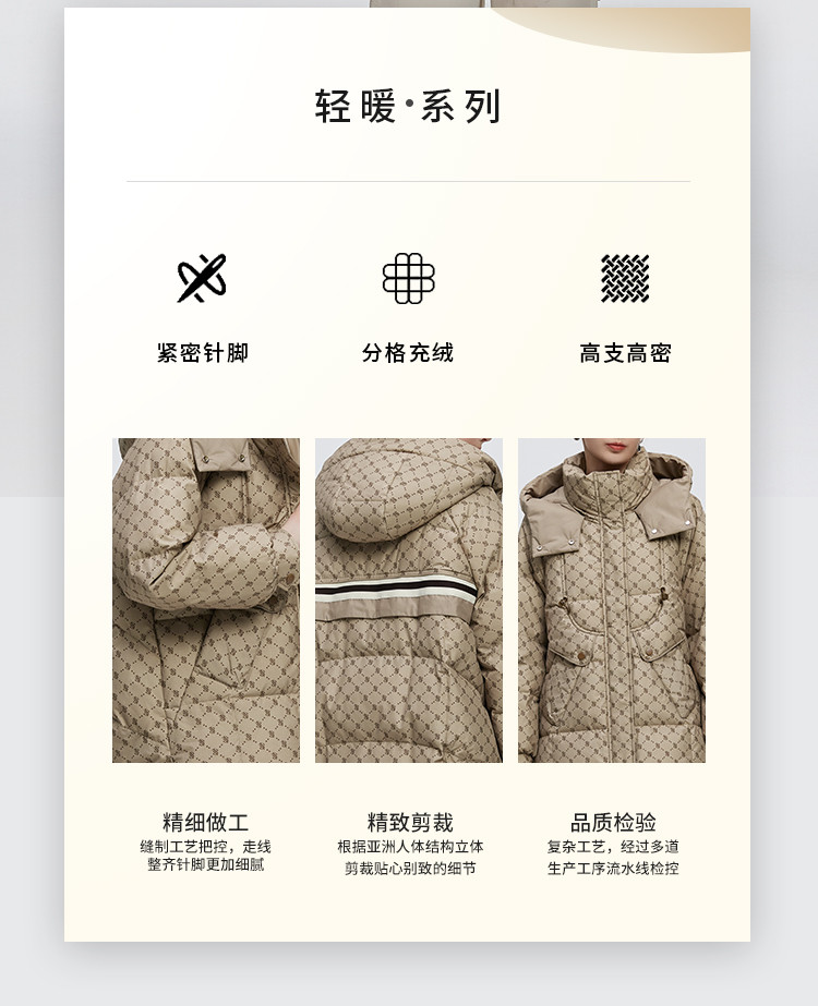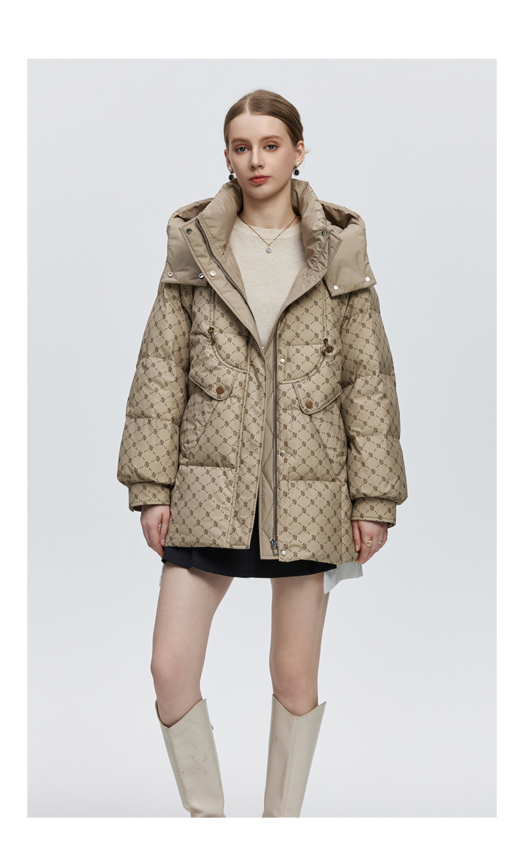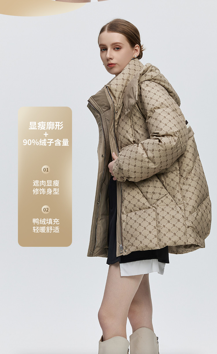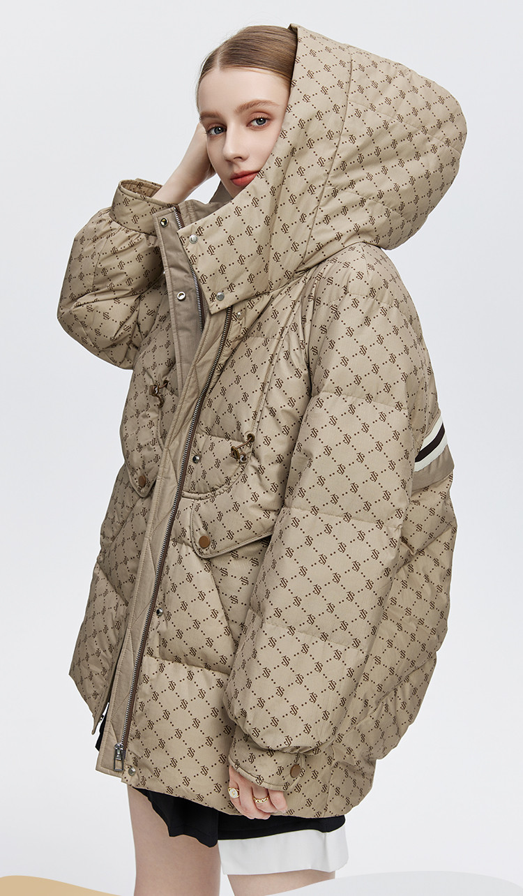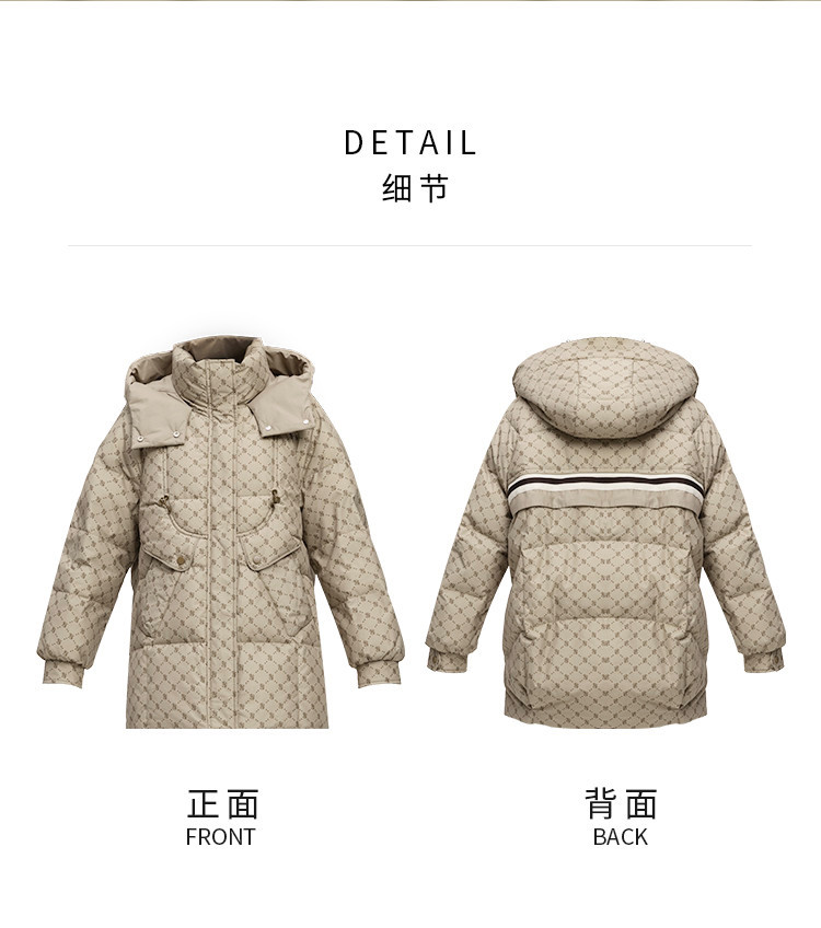 商品名称:【潮流印花】高级感设计舒适连帽女式时尚百搭休闲羽绒服 326495