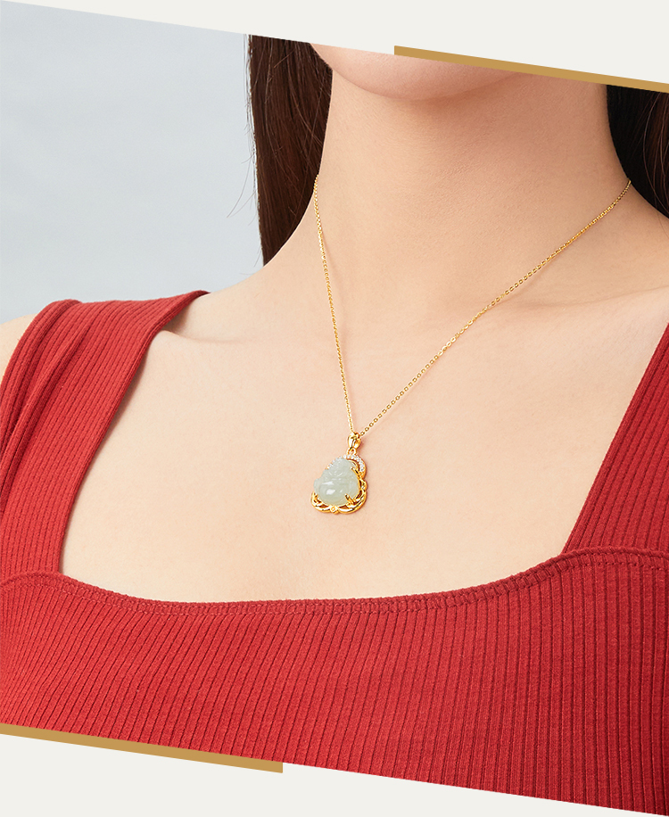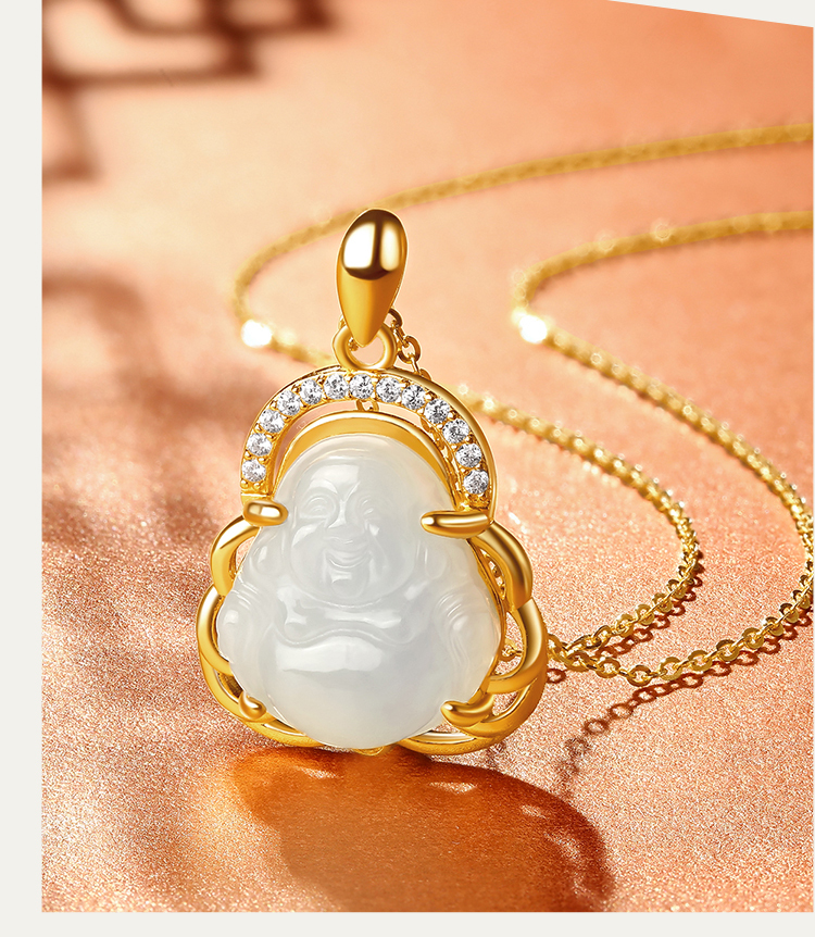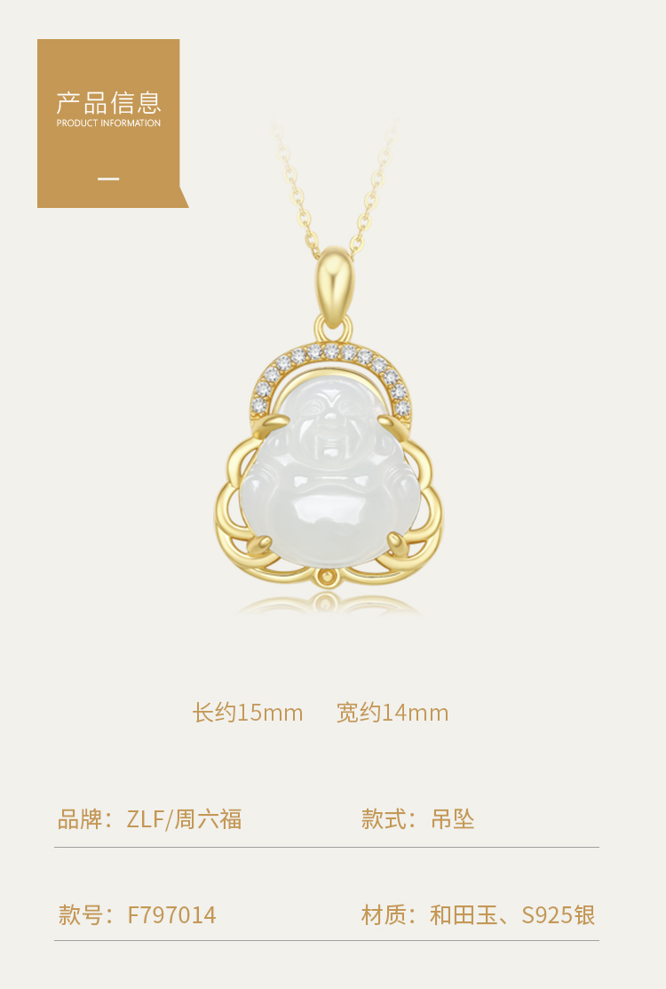 商品名称:周六福S925银和田白玉白玉佛吊坠项链