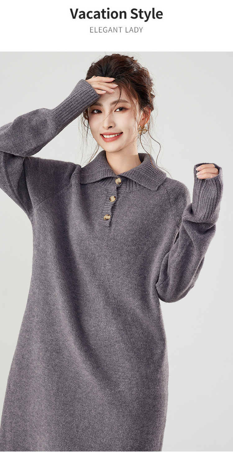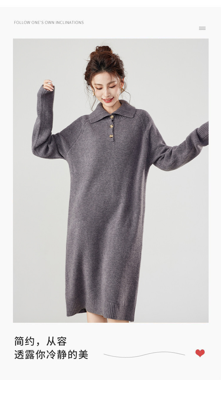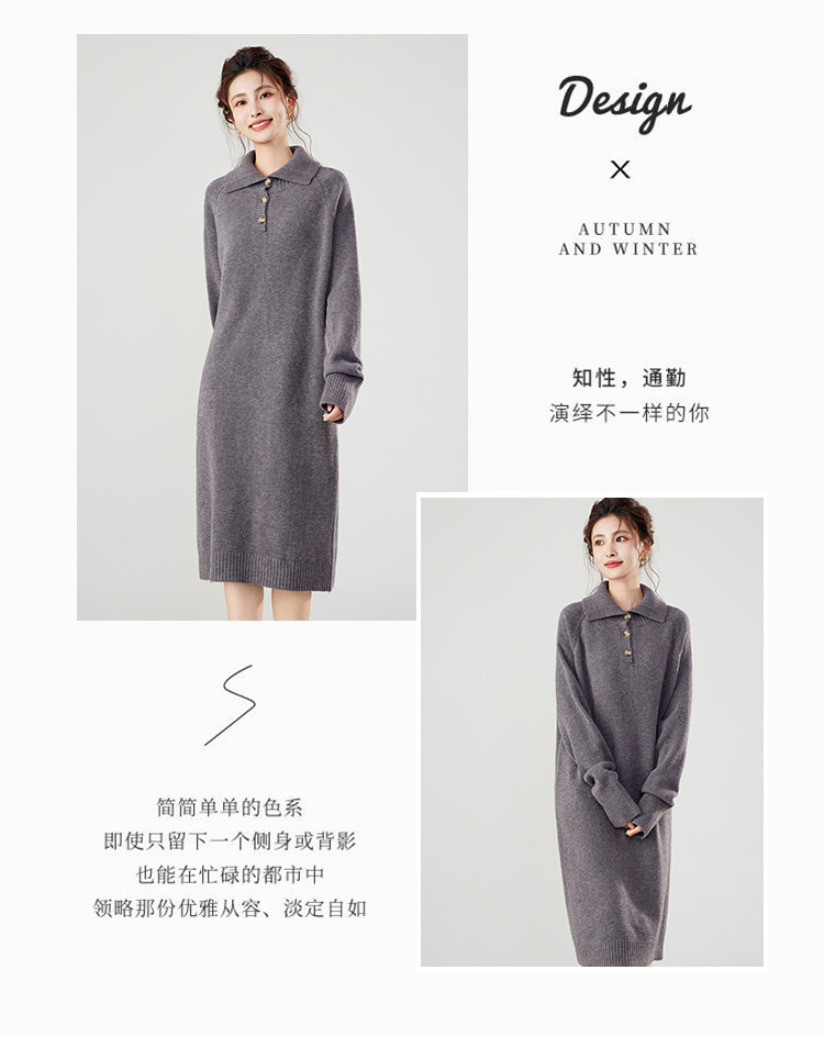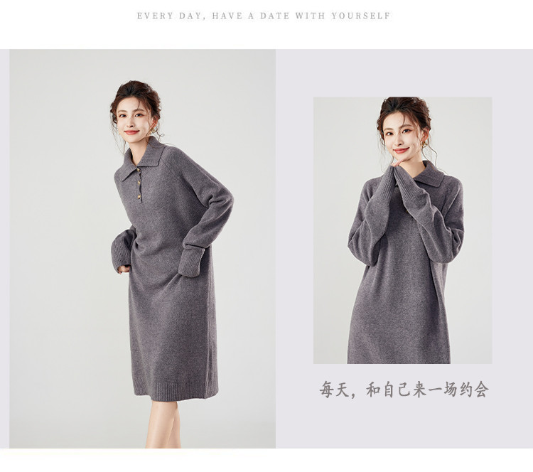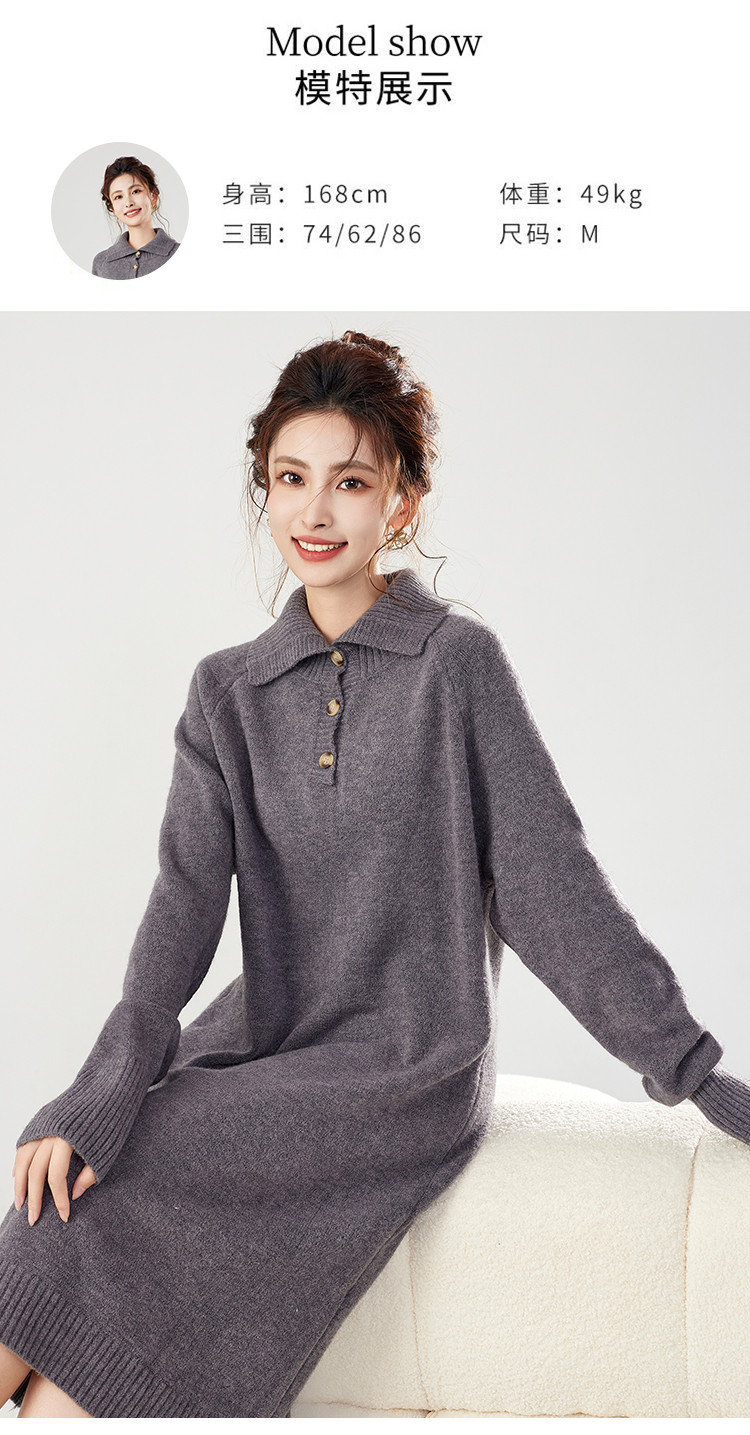 商品名称:秋冬韩版时尚Polo领厚款毛衣针织打底连衣裙女 516255