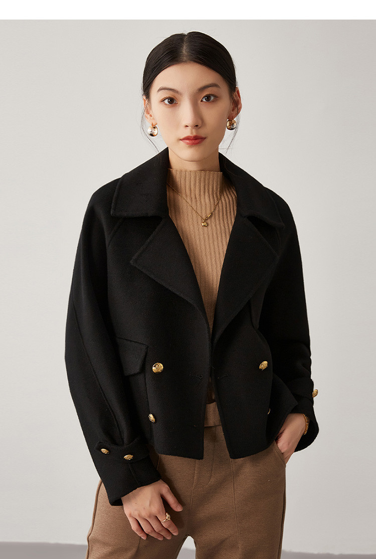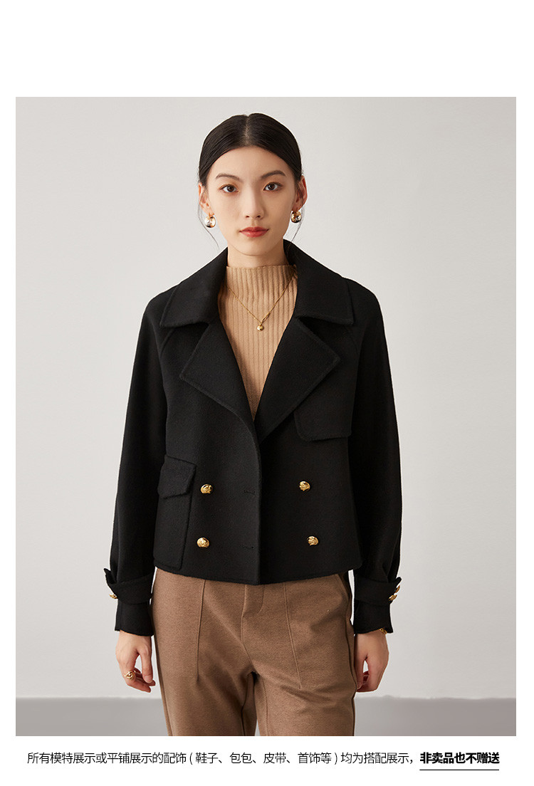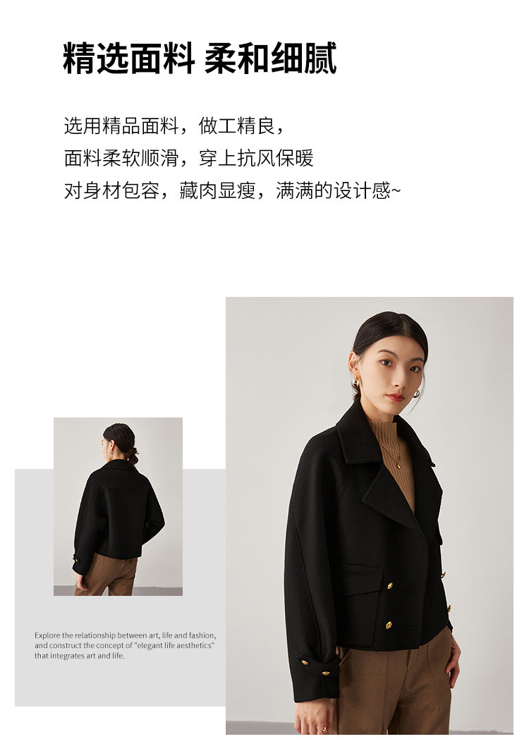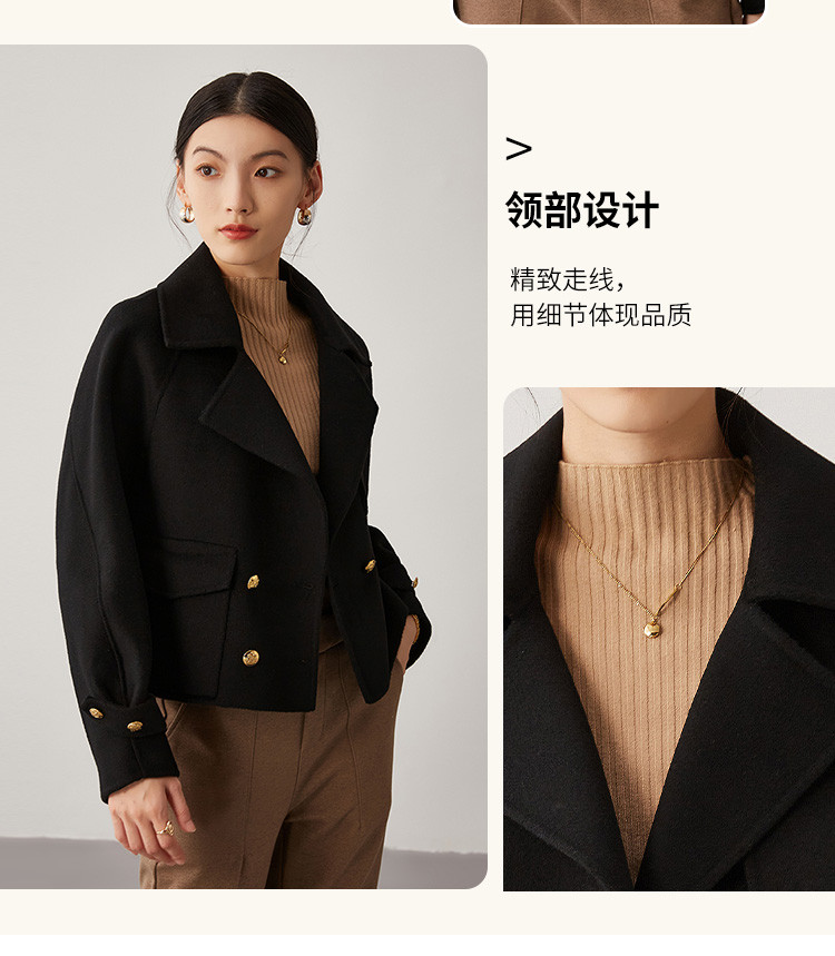 春秋休闲时尚羊毛大衣女式短款100%绵羊毛双面呢外套 871839