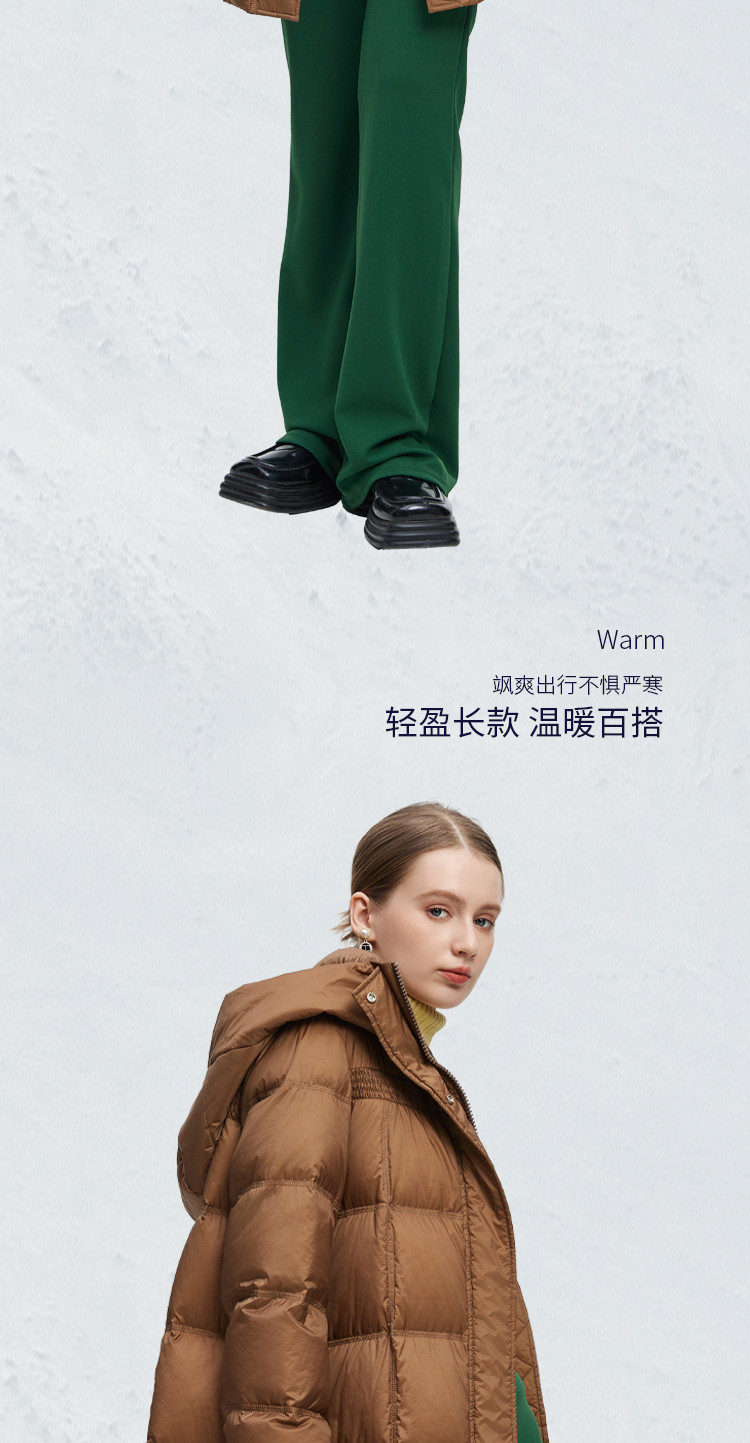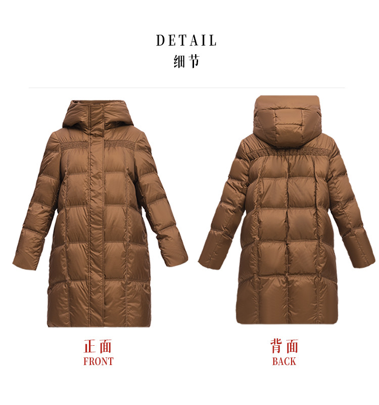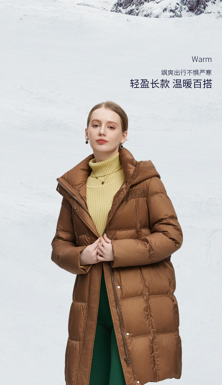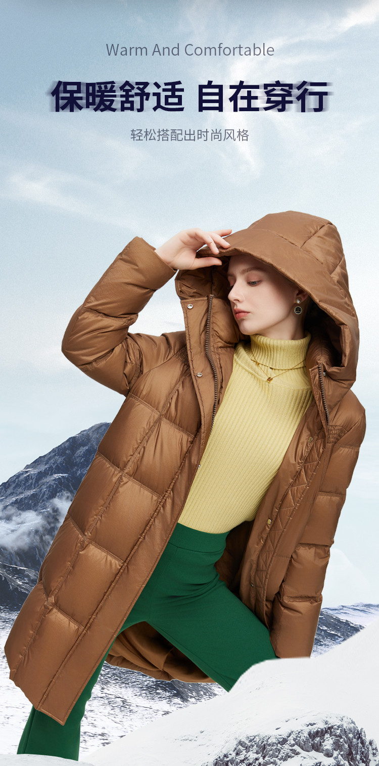 商品名称:【莫兰迪色系】休闲直筒厚款保暖中长款女式连帽舒羽绒服 151455