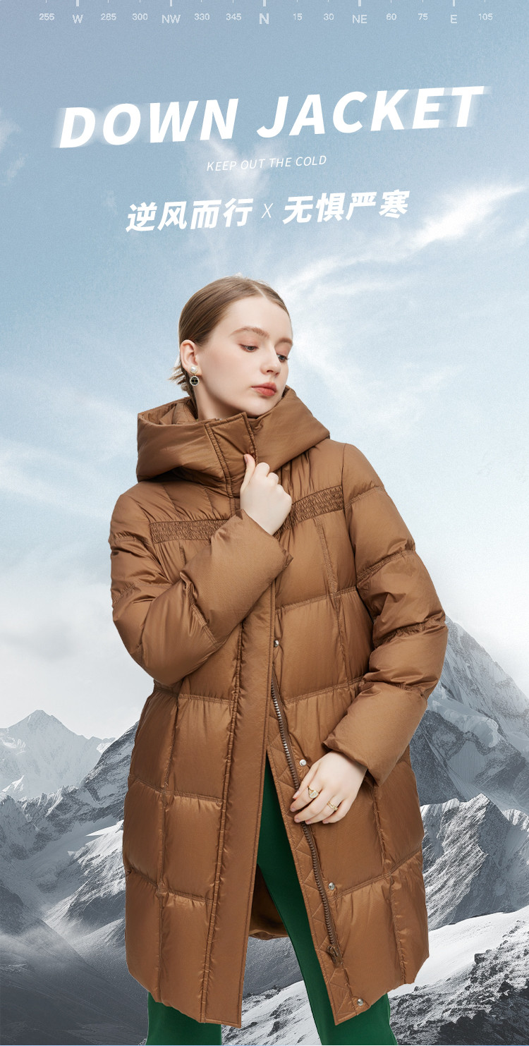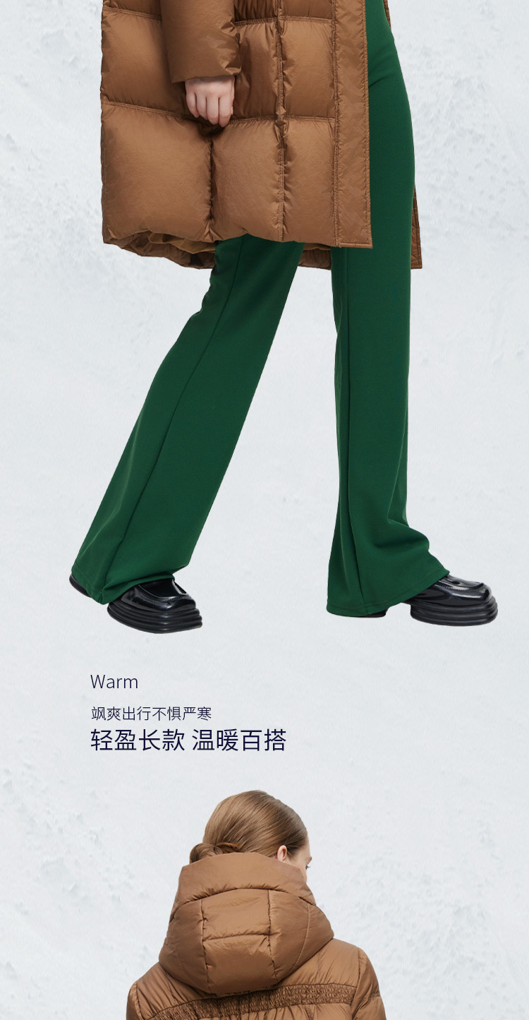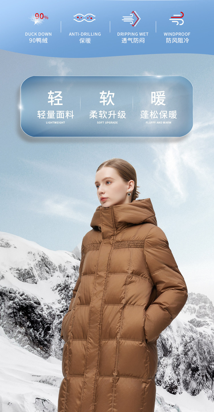 商品名称:【莫兰迪色系】休闲直筒厚款保暖中长款女式连帽舒羽绒服 151455