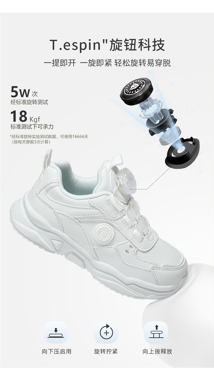 商品名称:春秋季女童旋转纽扣小白鞋儿童运动鞋男童跑步鞋时尚百搭老爹鞋 548951