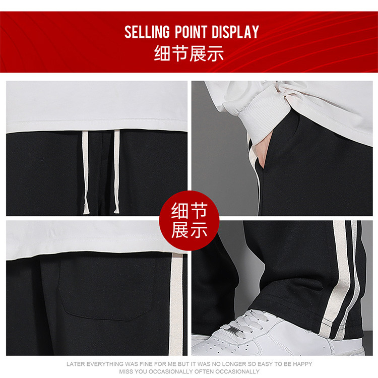 商品名称:春季男式宽松直筒裤男舒适透气运动长裤侧边撞色织带休闲裤男 518675