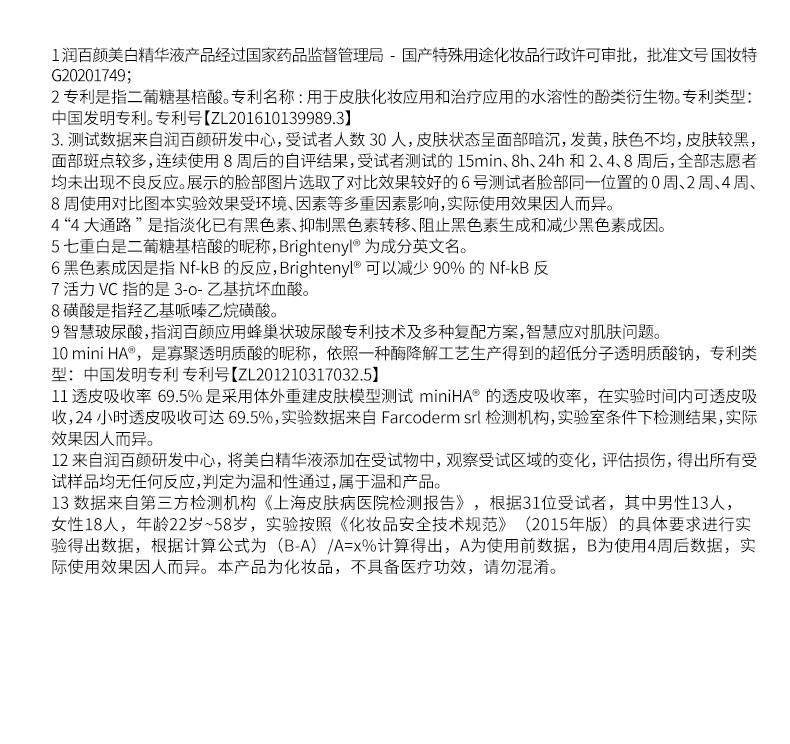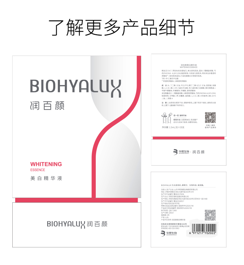 商品名称:润百颜 次抛VC精华液玻尿酸淡斑提亮华熙生物 30支/盒