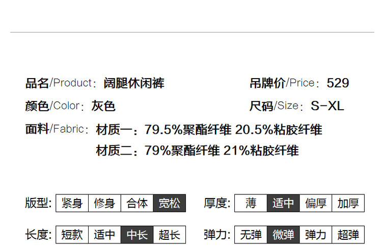 商品名称:【简约风阔腿裤】春秋直筒长裤女裤宽松休闲裤子女 293825