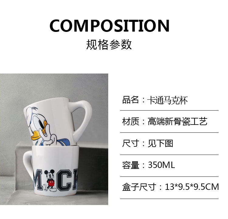 商品名称:迪士尼 米奇唐老鸭火星探险马克杯 350ml无盖无勺带手柄咖啡杯