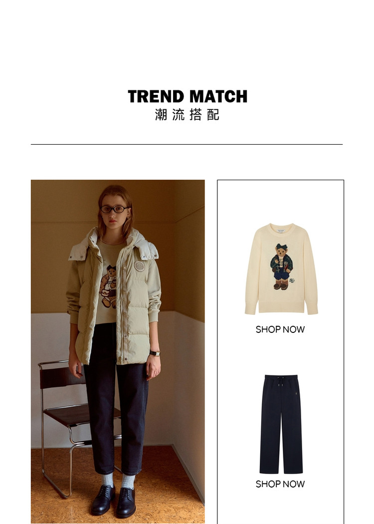 商品名称:小熊女装秋冬款泡芙羽绒马甲保暖舒适上衣短款外套 190401