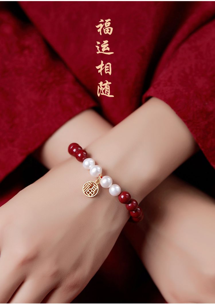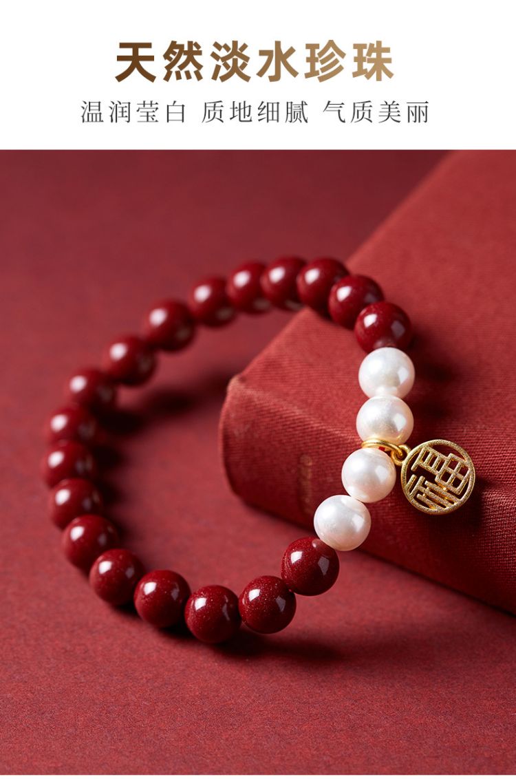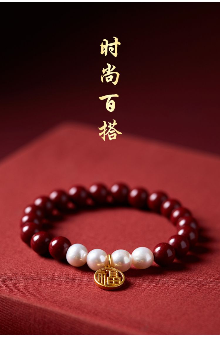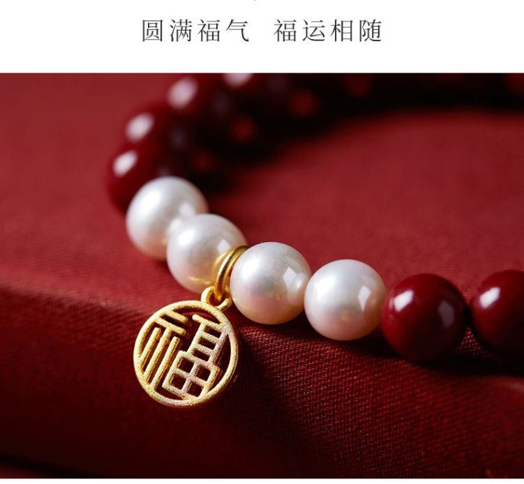 紫金砂珍珠福牌手链送礼长辈手串精致时尚