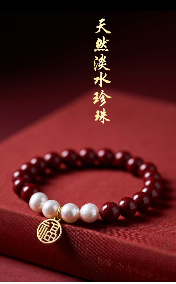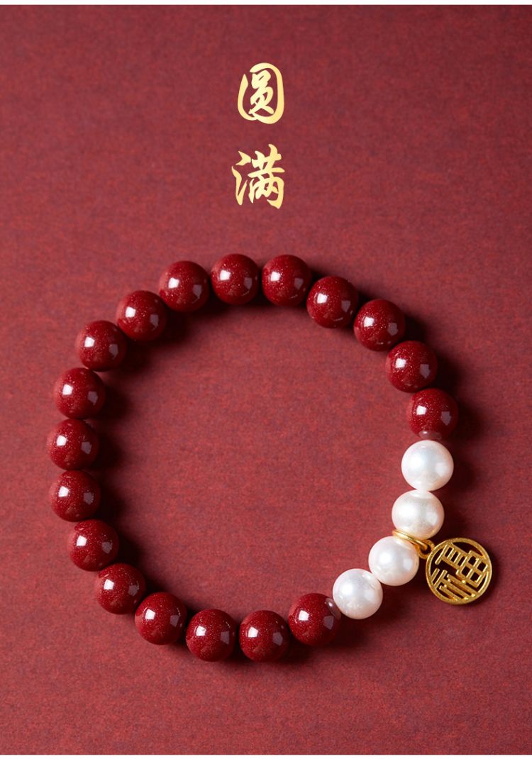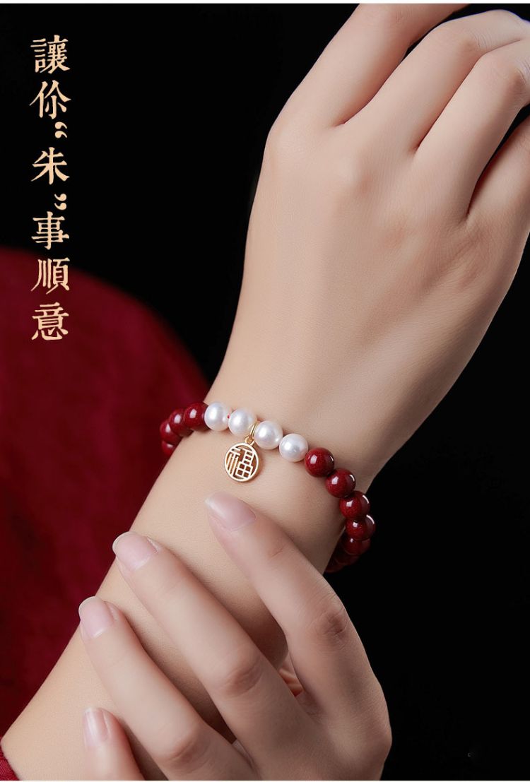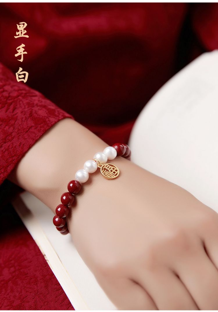 紫金砂珍珠福牌手链送礼长辈手串精致时尚