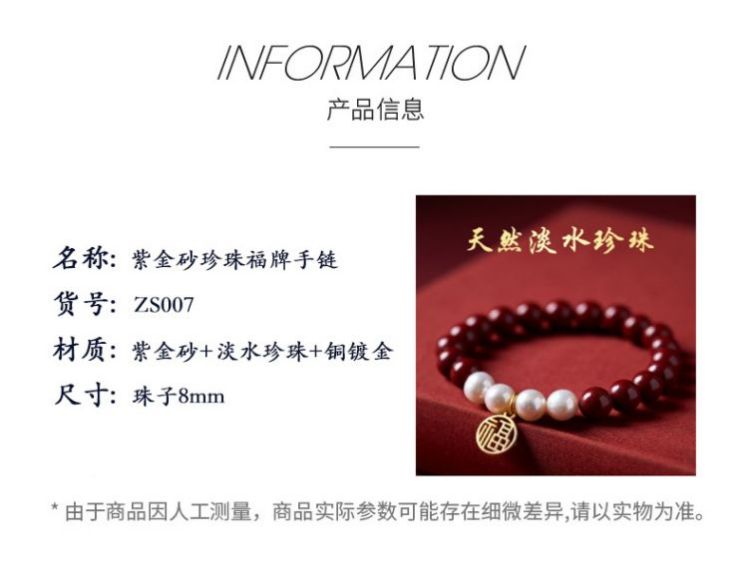 商品名称:紫金砂珍珠福牌手链送礼长辈手串精致时尚