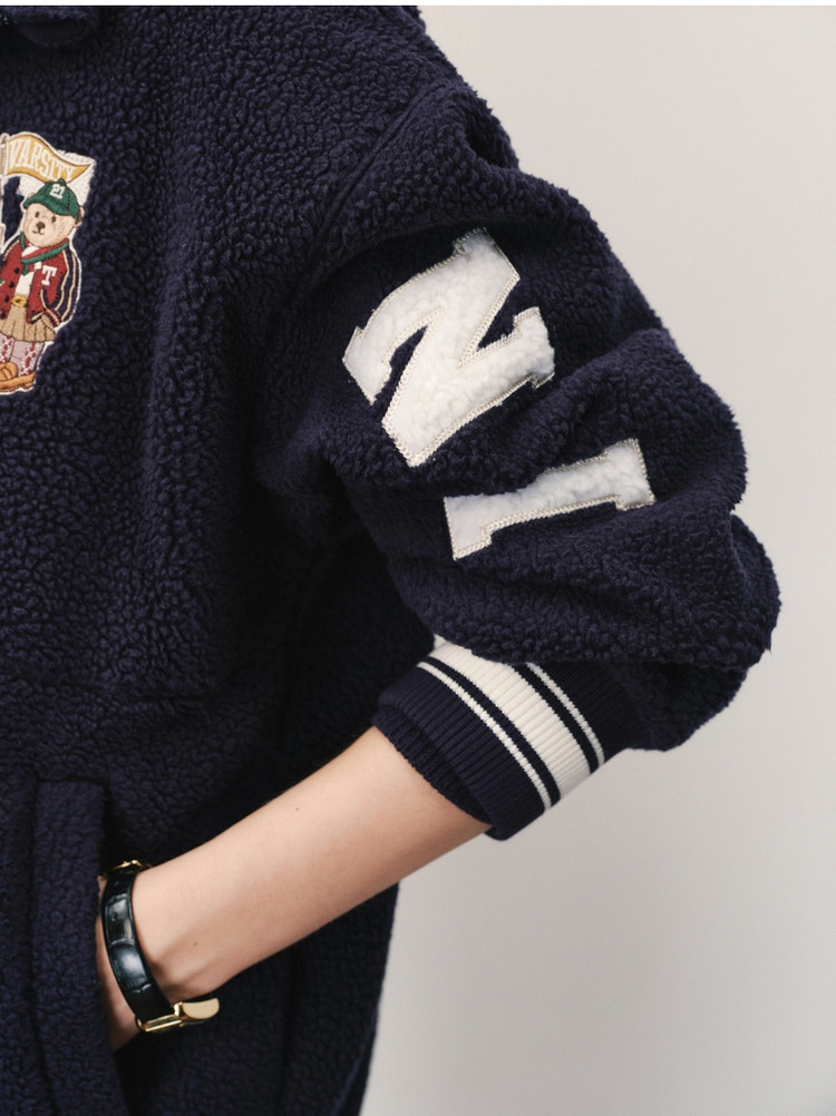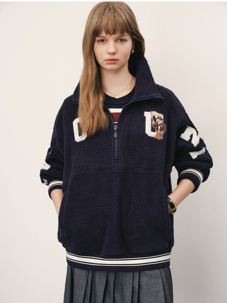 商品名称:卫衣女春秋款复古仿羊羔绒半开拉链套头卫衣女 095297