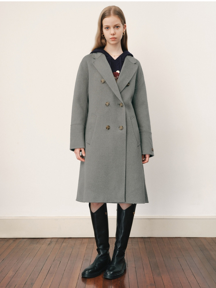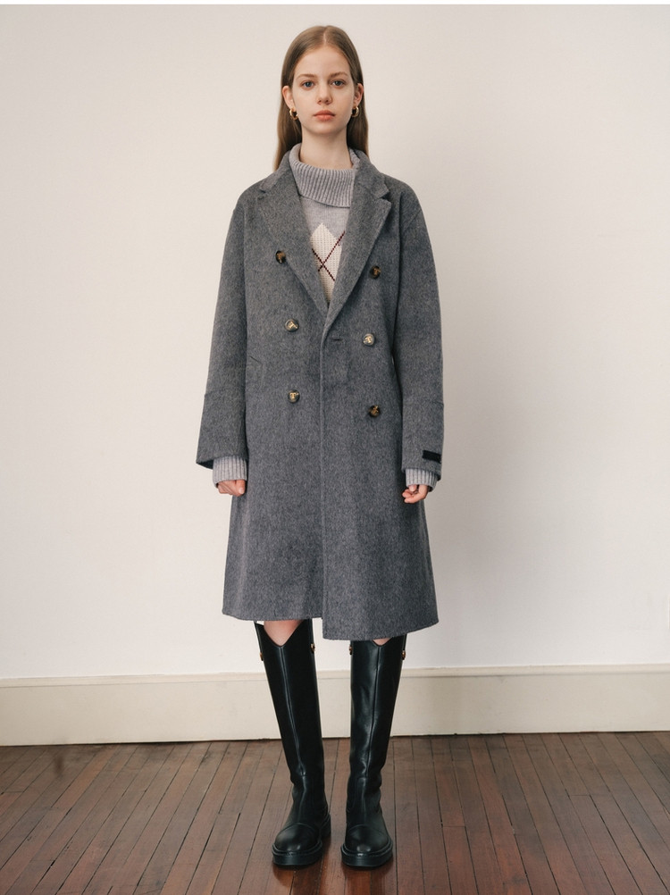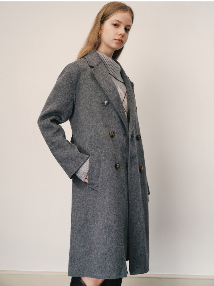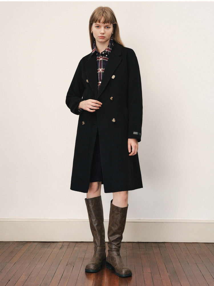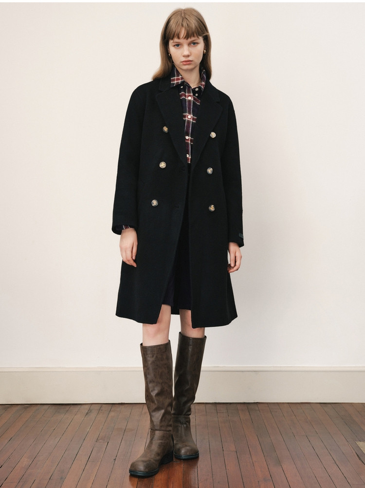 【绵羊毛】毛呢大衣女冬季双排扣中长款双面呢子大衣 211969