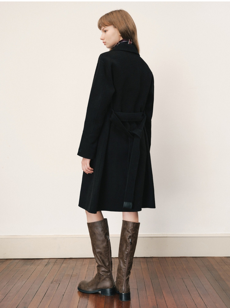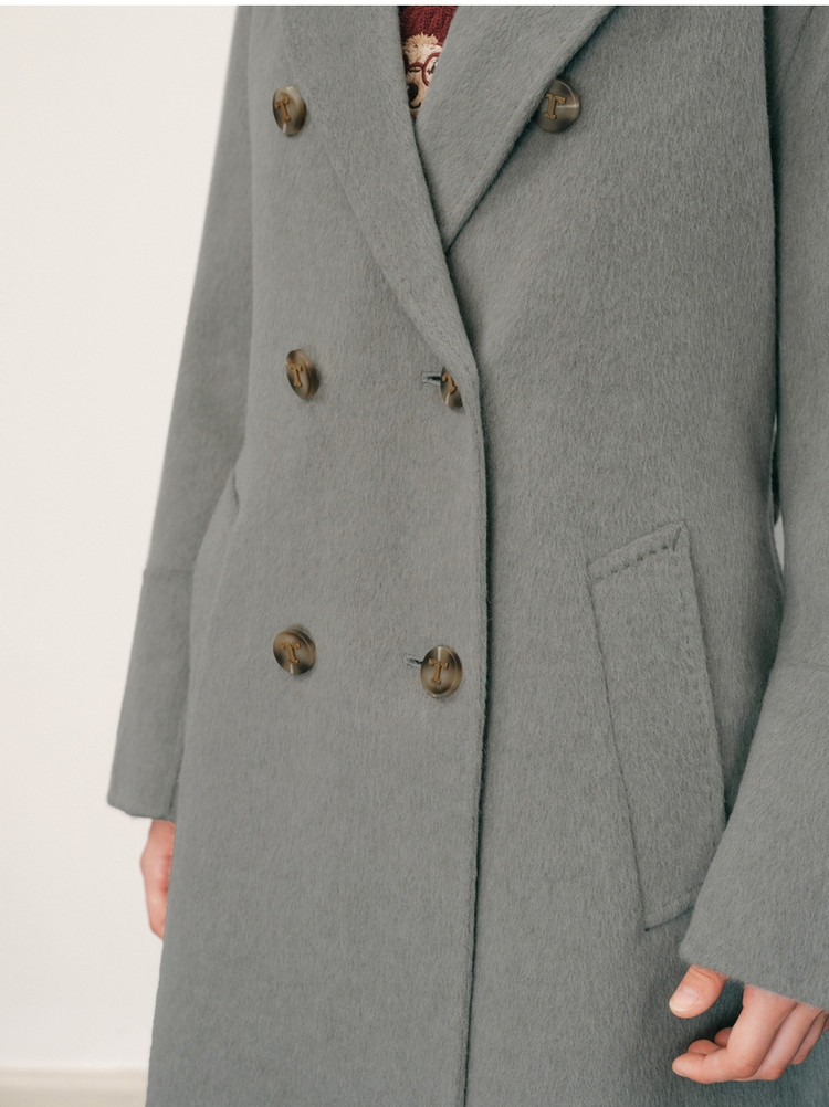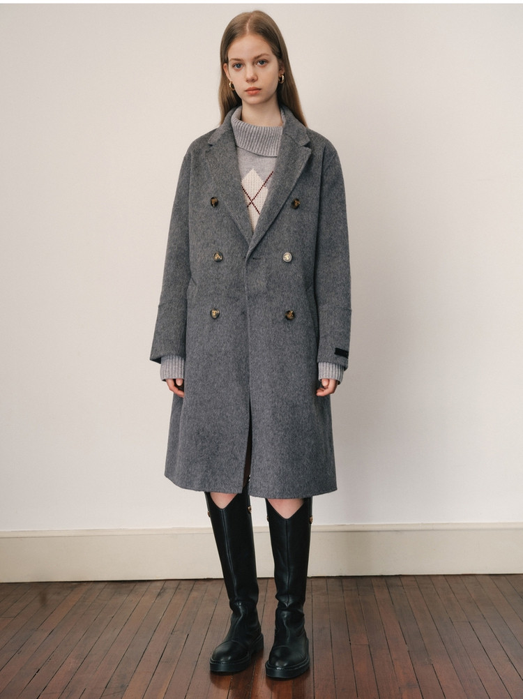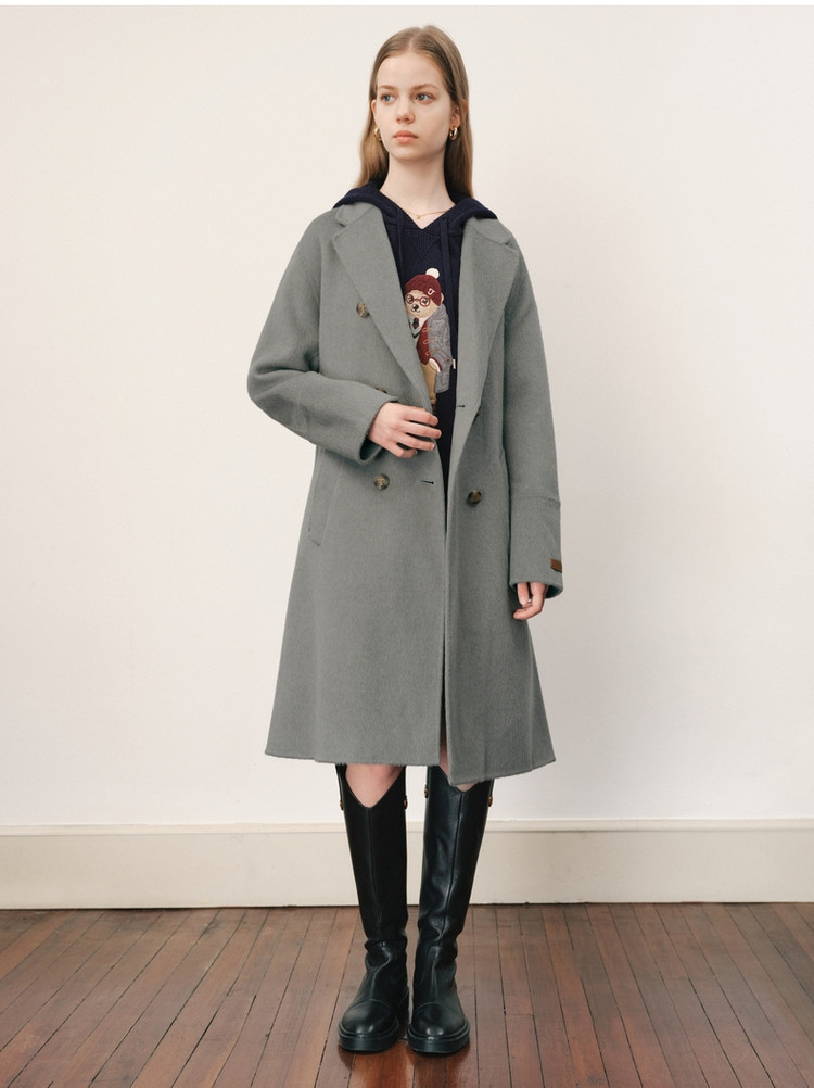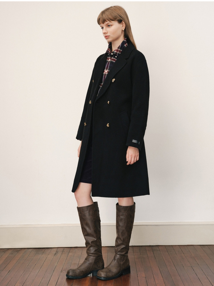 【绵羊毛】毛呢大衣女冬季双排扣中长款双面呢子大衣 211969