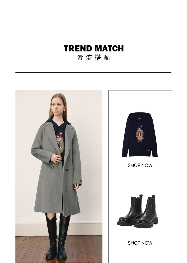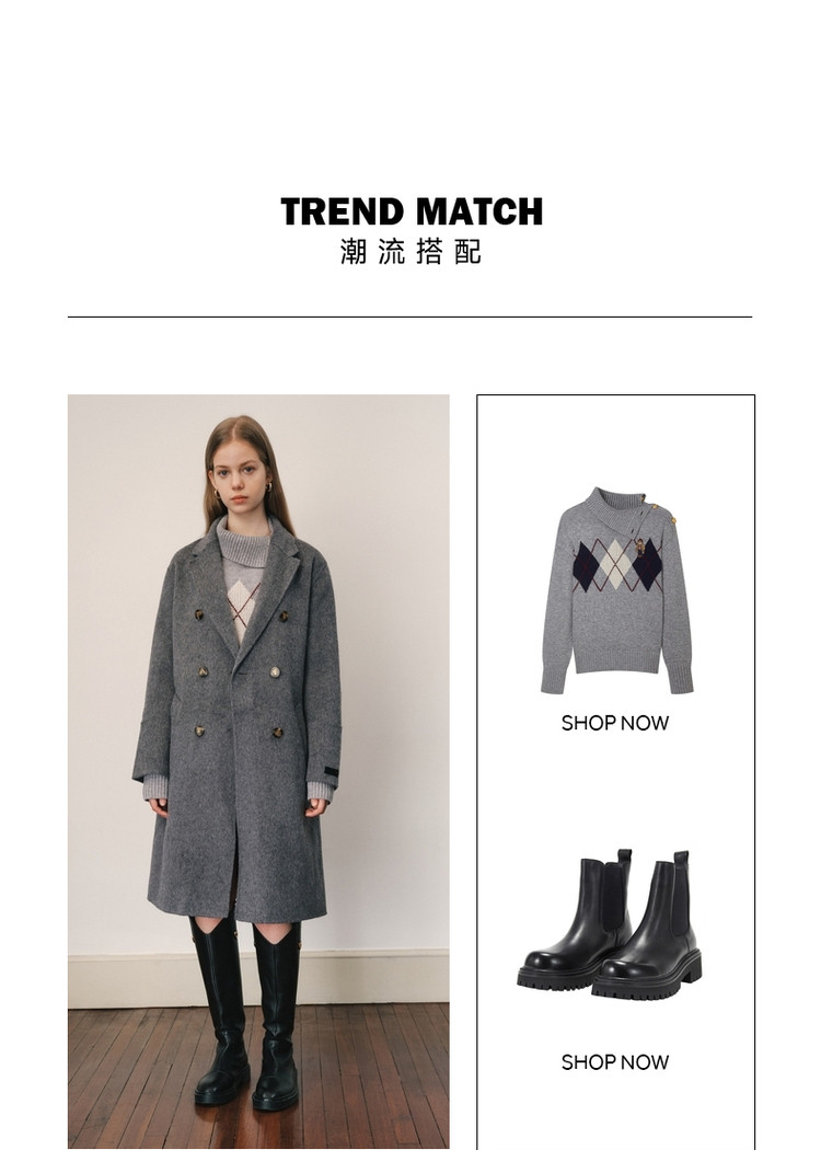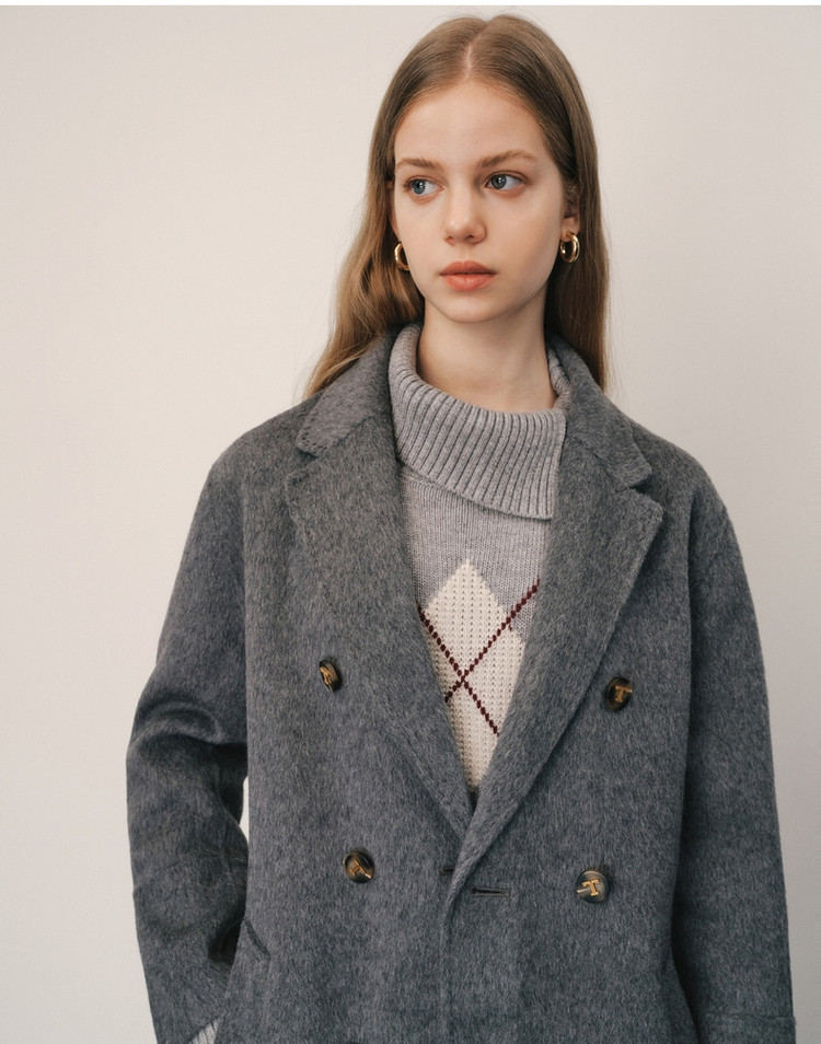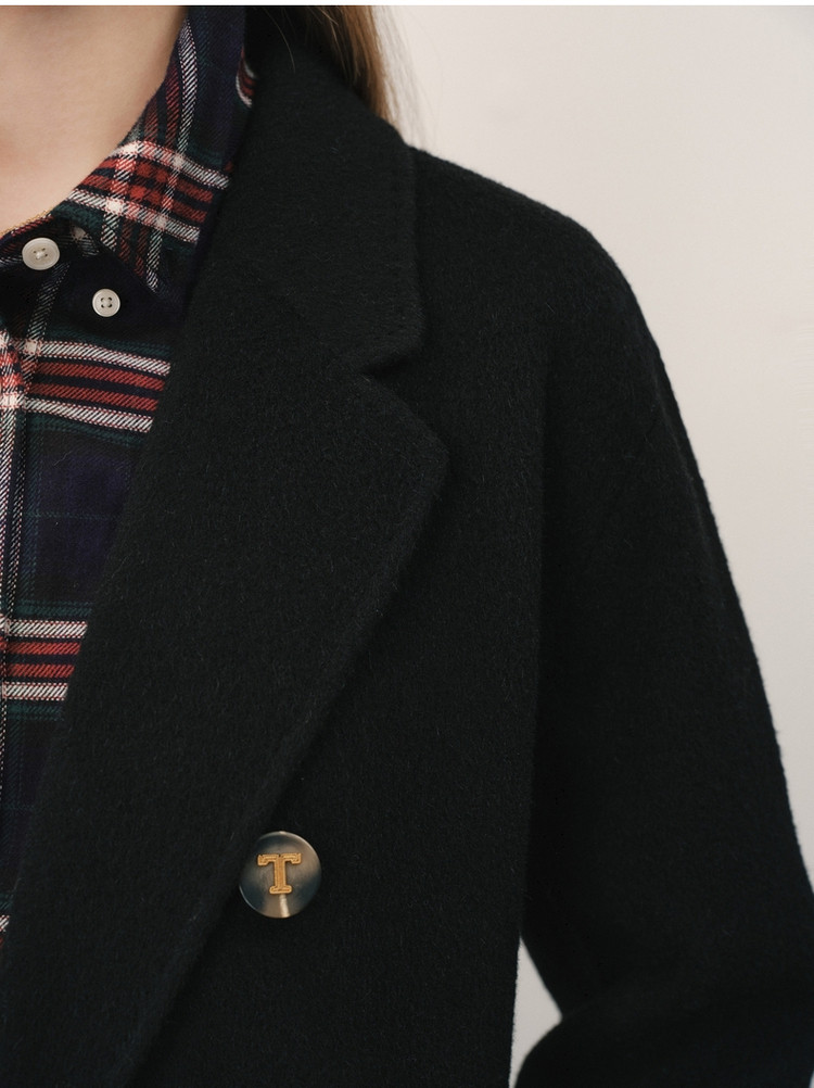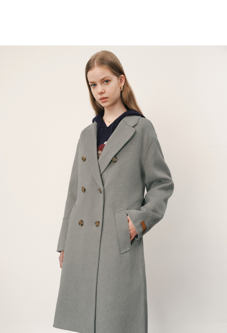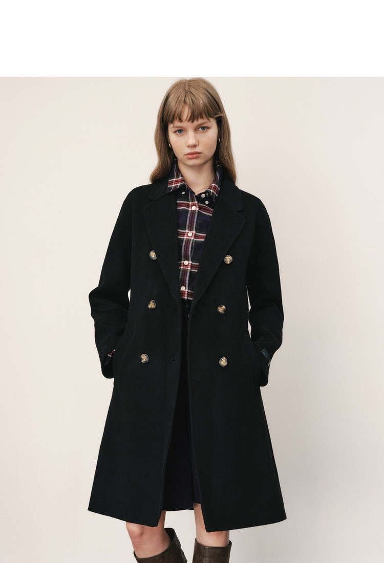 商品名称:【绵羊毛】毛呢大衣女冬季双排扣中长款双面呢子大衣 211969