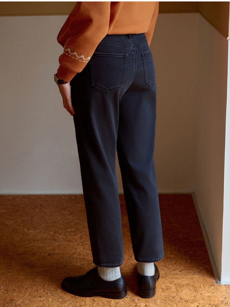 小熊冬季简约加绒保暖牛仔裤休闲韩版宽松裤子女 692929