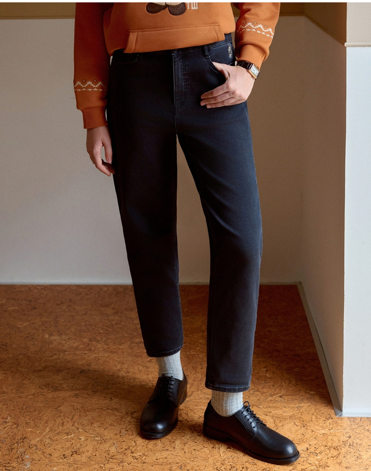 商品名称:小熊冬季简约加绒保暖牛仔裤休闲韩版宽松裤子女 692929