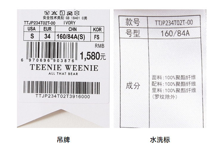 商品名称:小熊秋冬款MEMPTY轻量保暖仿羊羔绒棉服女装 052417