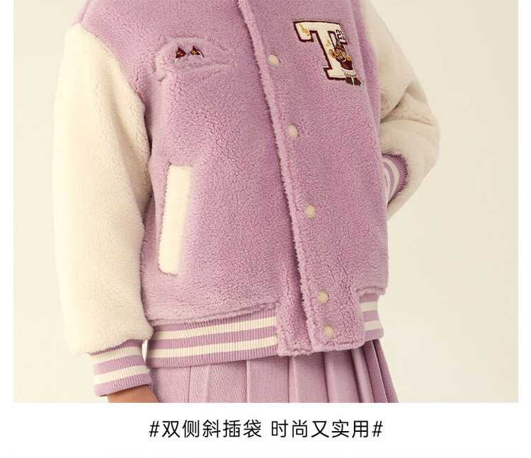 商品名称:小熊童装春季款女童仿羊羔绒棒球服式外套 403841