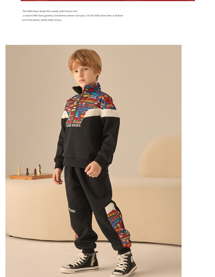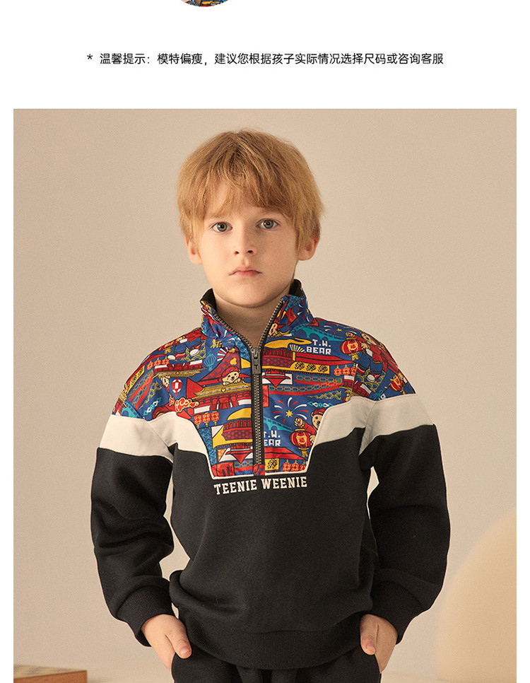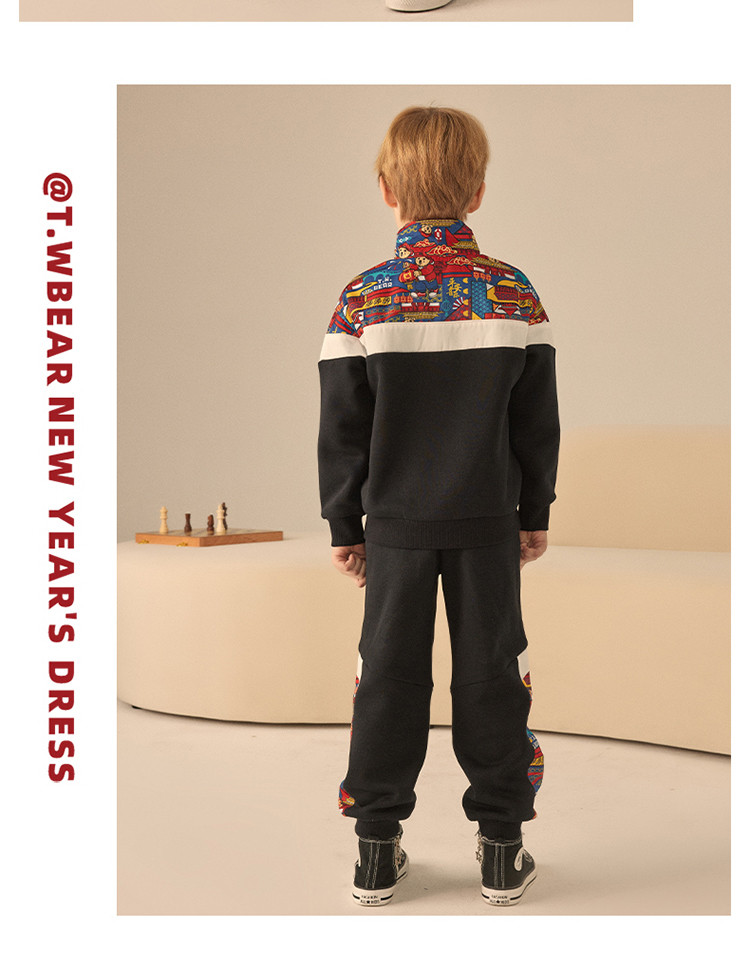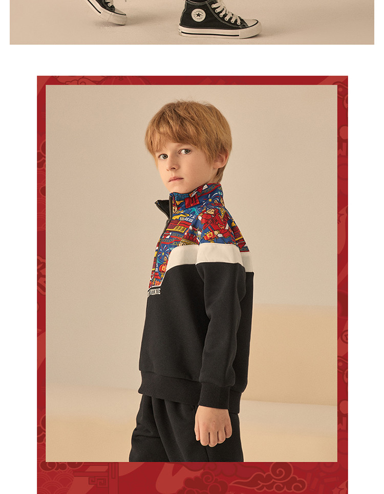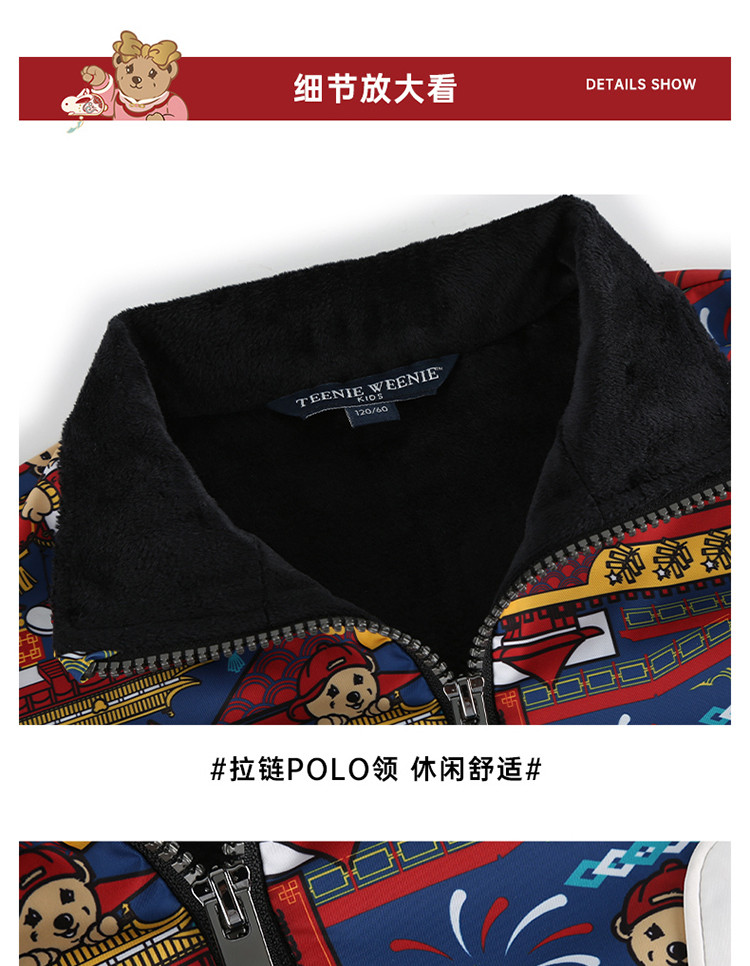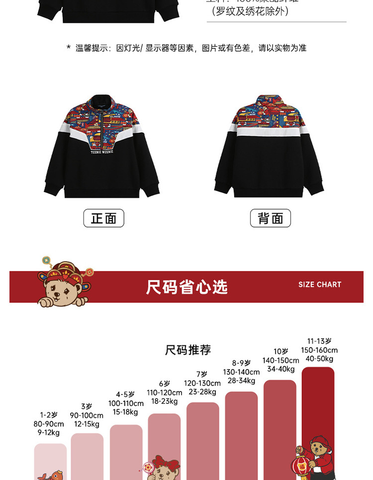 商品名称:【国风】小熊童装男童春季拉链polo领中国红卫衣 463041