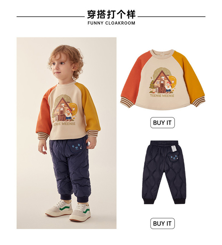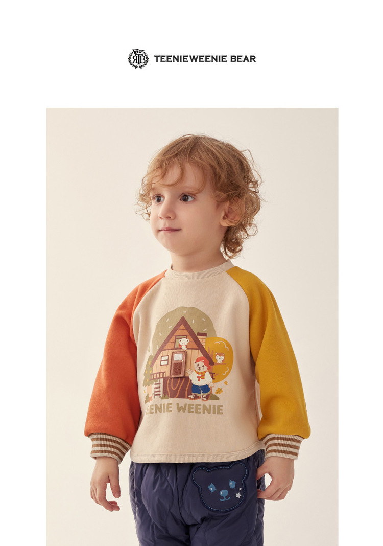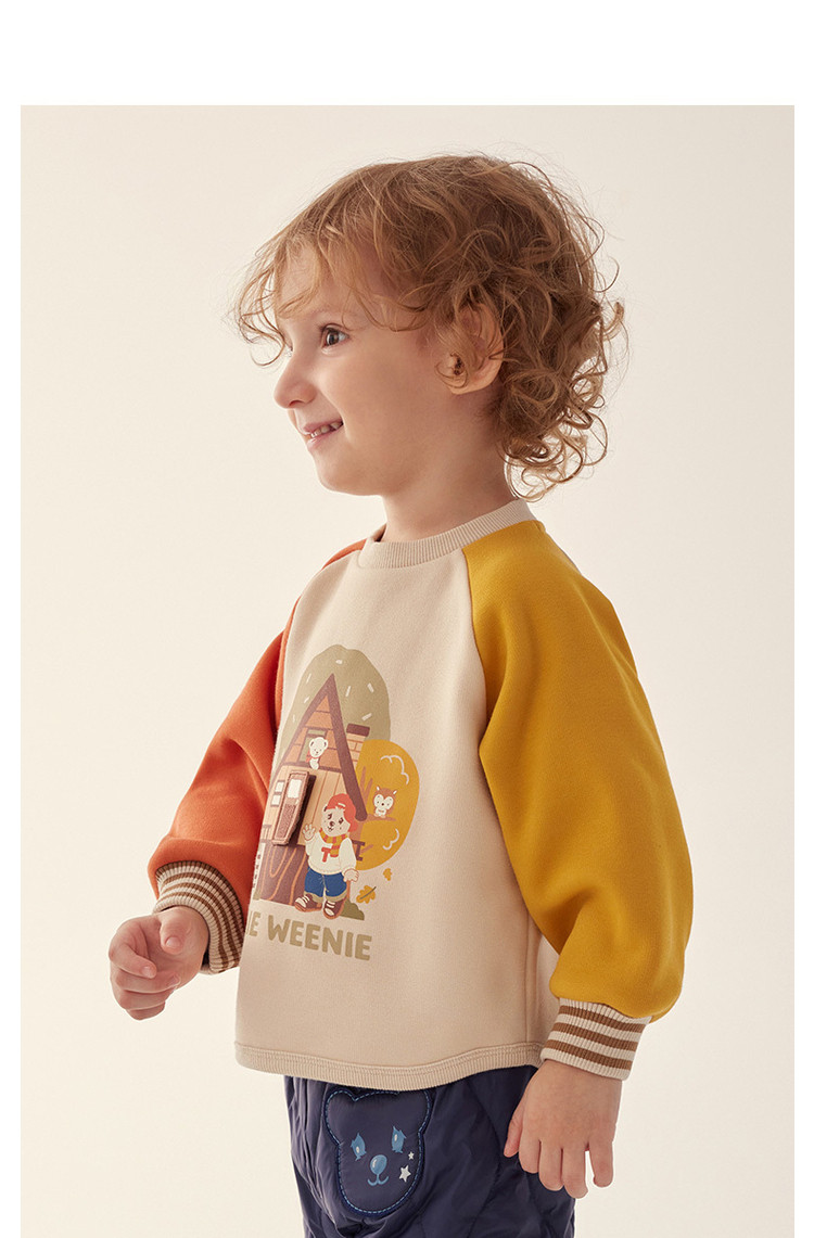 商品名称:小熊童装春季男宝宝撞色银狐绒套头卫衣 724097