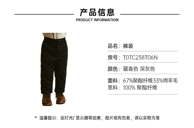 商品名称:小熊童装春季男宝宝毛呢格纹西裤 156417