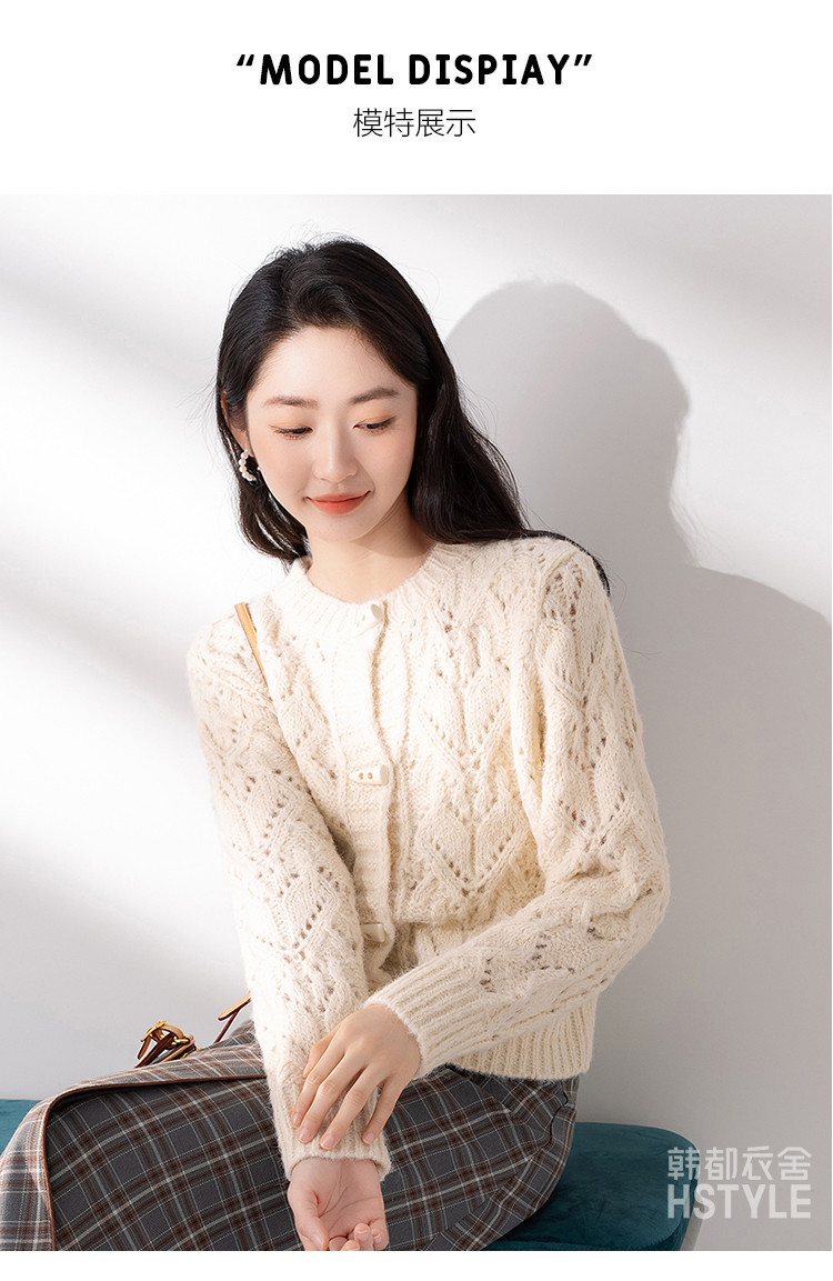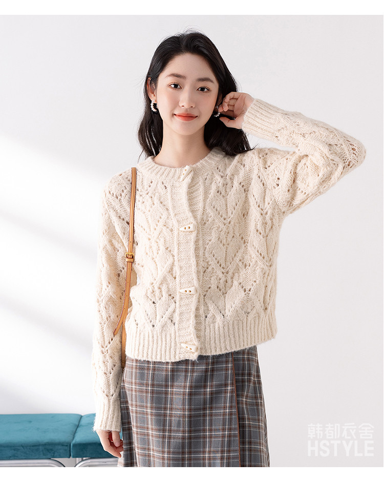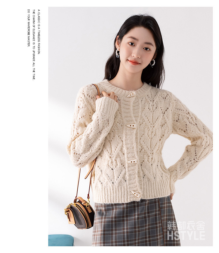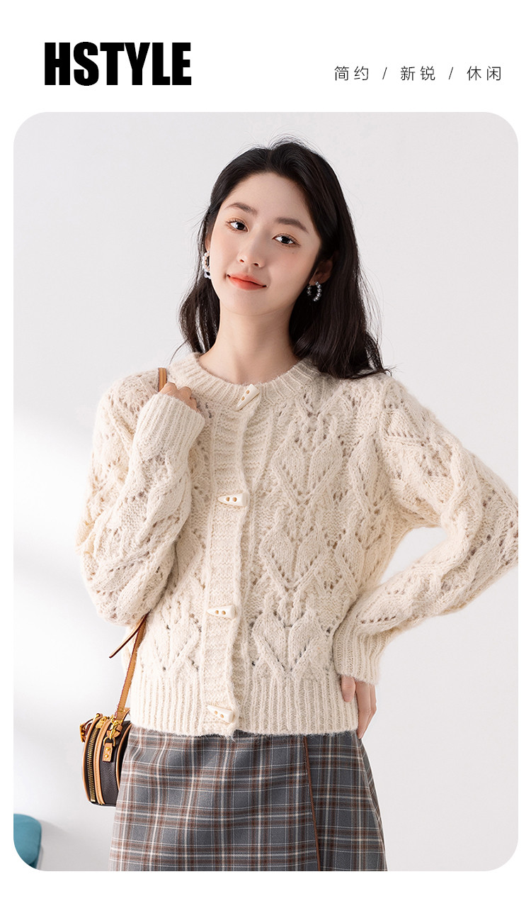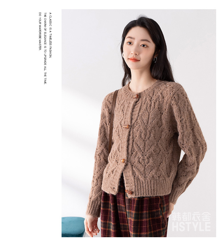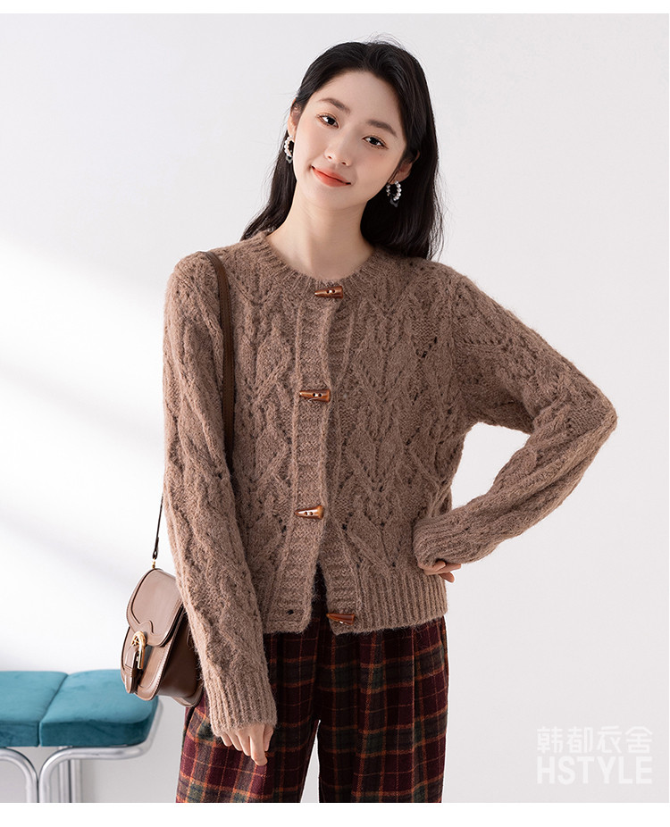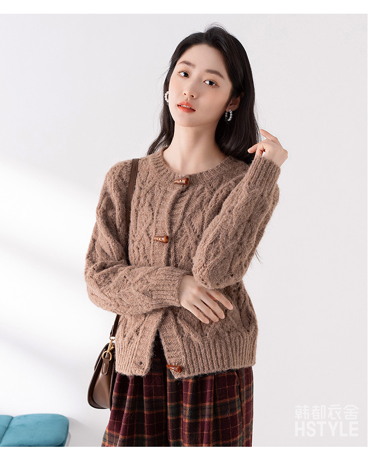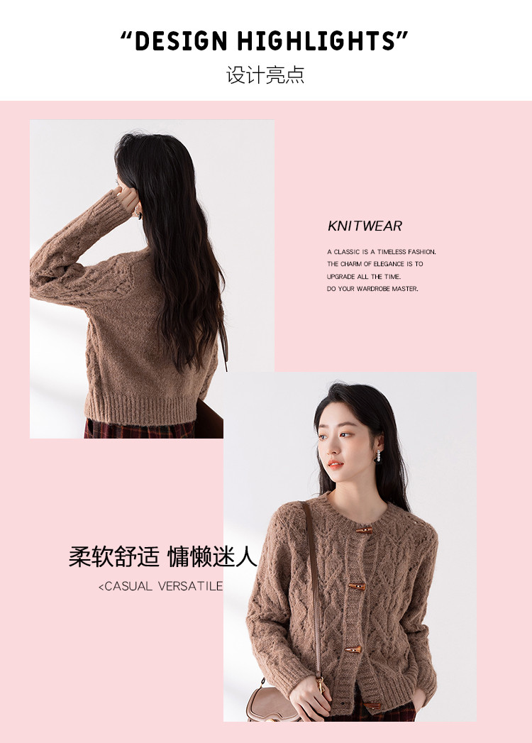商品名称:【牛角扣开衫】早春款女式针织衫上衣舒适特色提花设计感外套女 516491