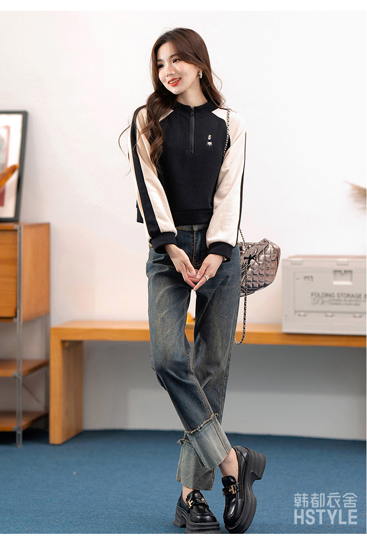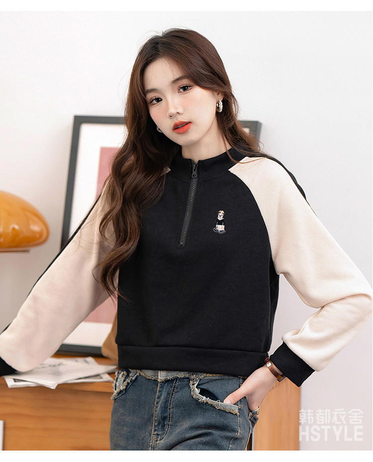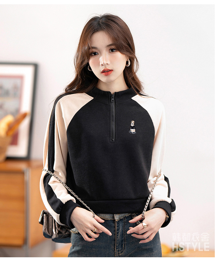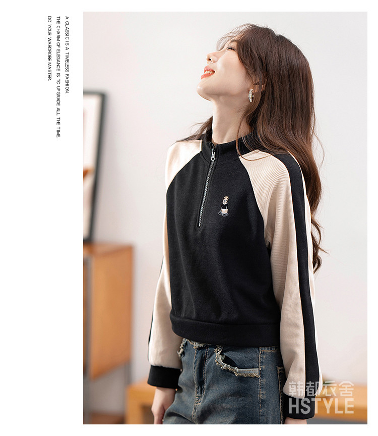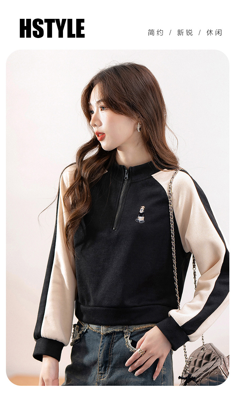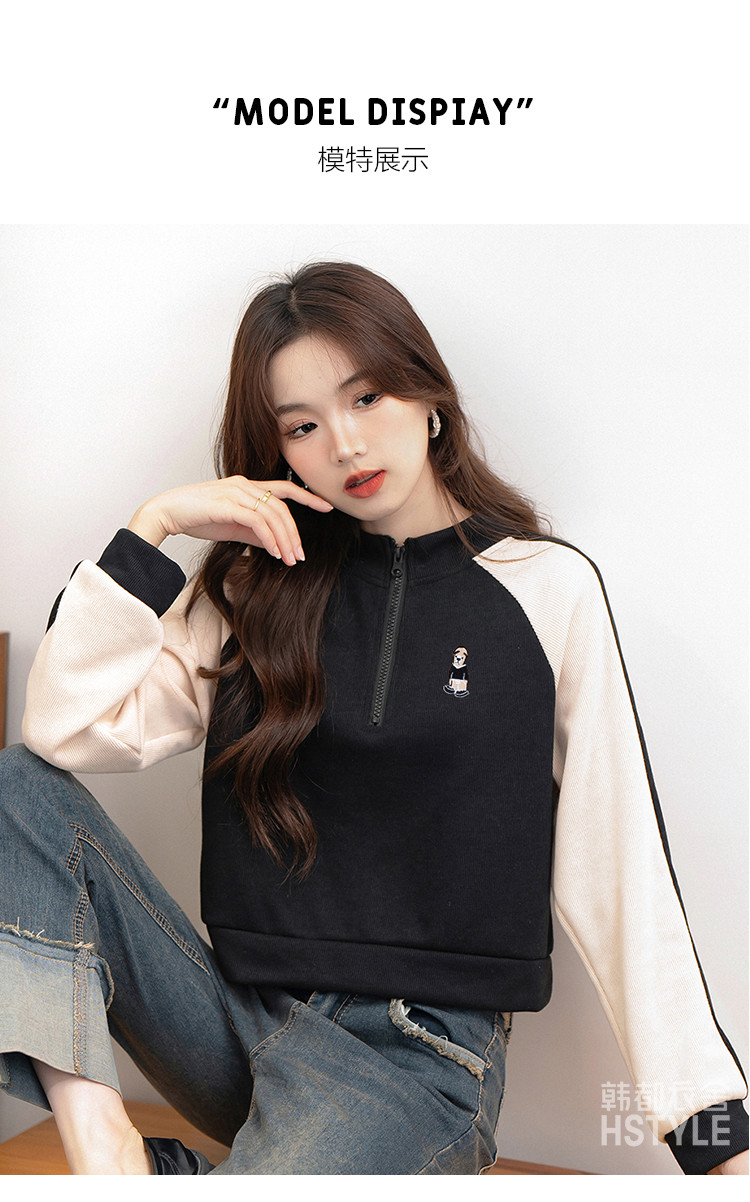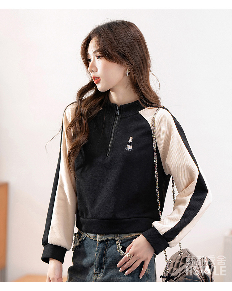 【半高领撞色卫衣】春秋款女式舒适拉链印花长袖手臂撞色休闲卫衣 227723