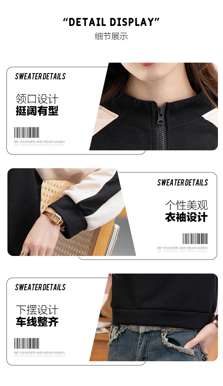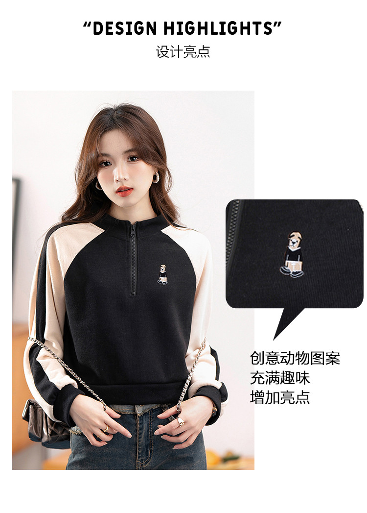商品名称:【半高领撞色卫衣】春秋款女式舒适拉链印花长袖手臂撞色休闲卫衣 227723