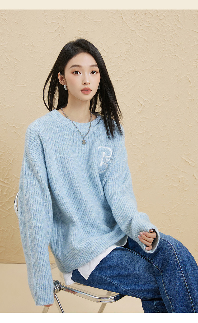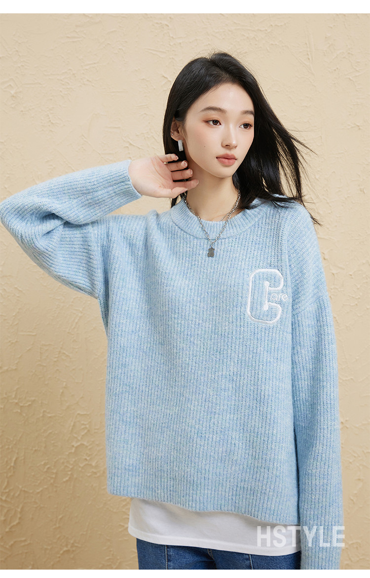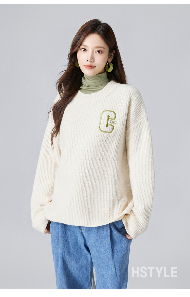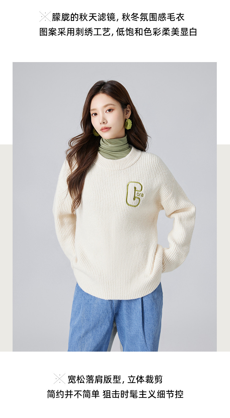 【圆领毛衣】女春款高级感刺绣舒适百搭针织衫 498251