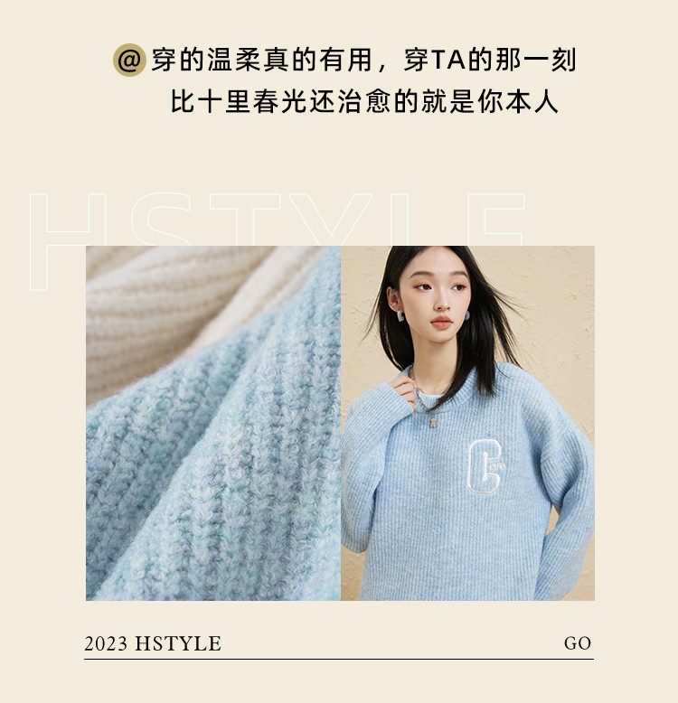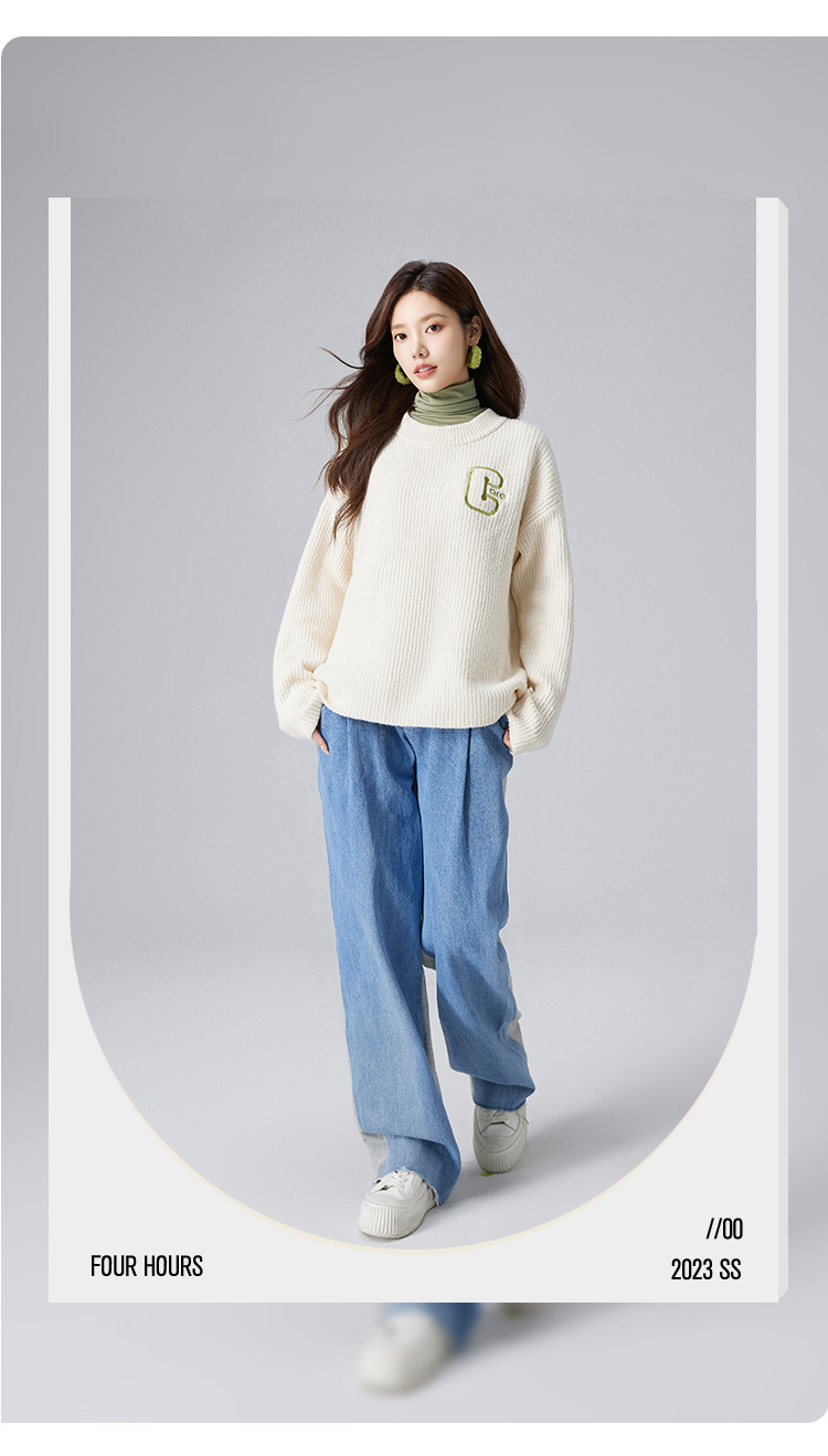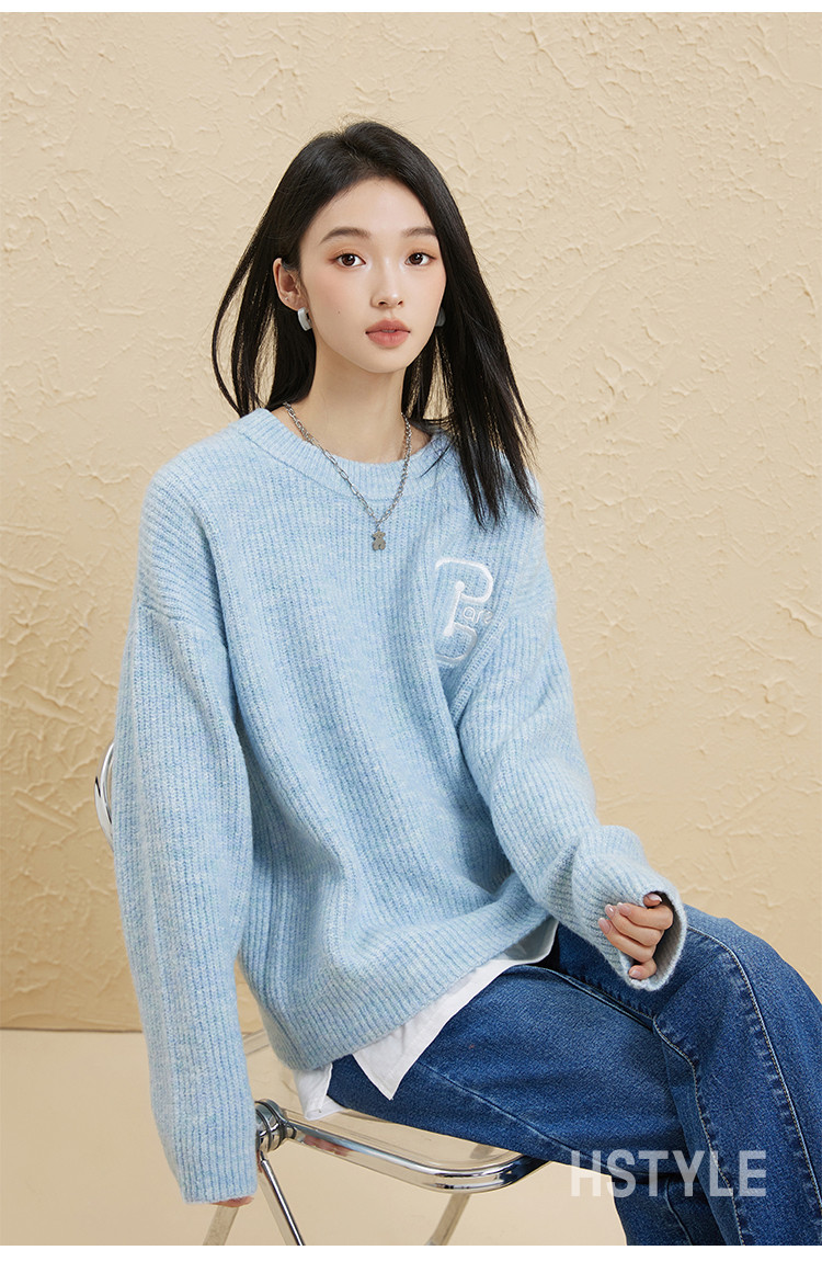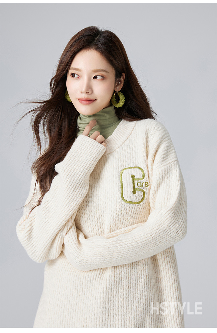 【圆领毛衣】女春款高级感刺绣舒适百搭针织衫 498251