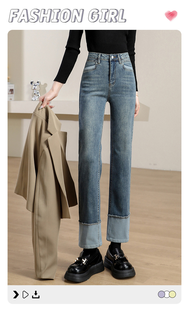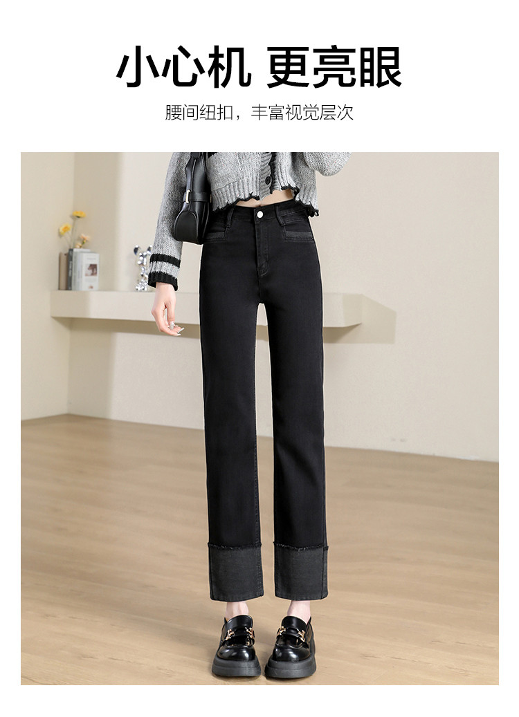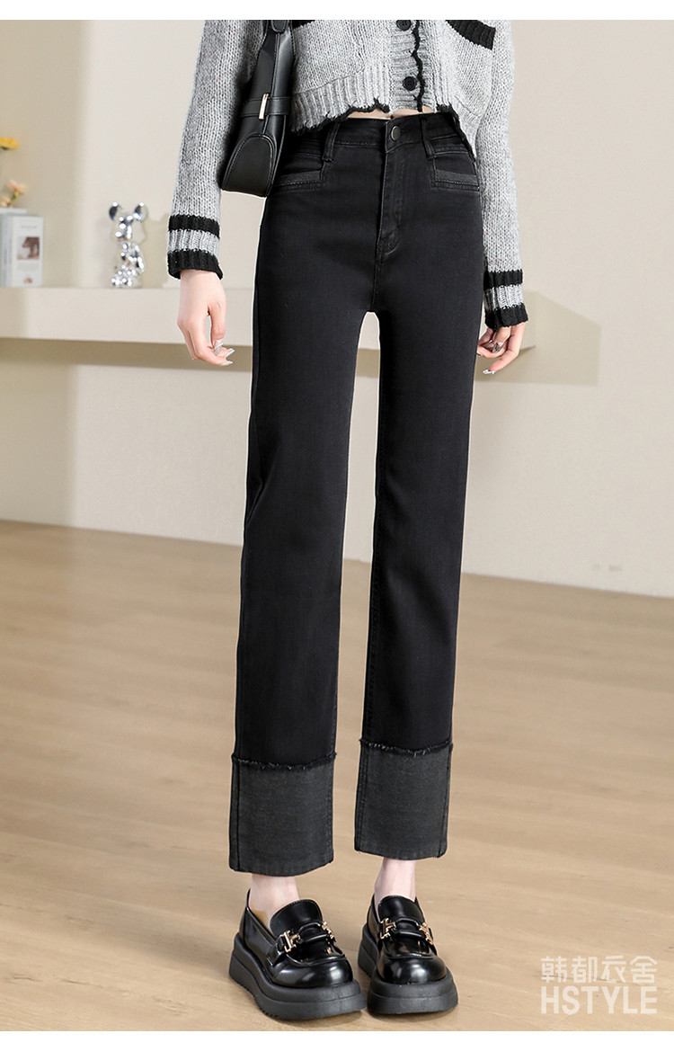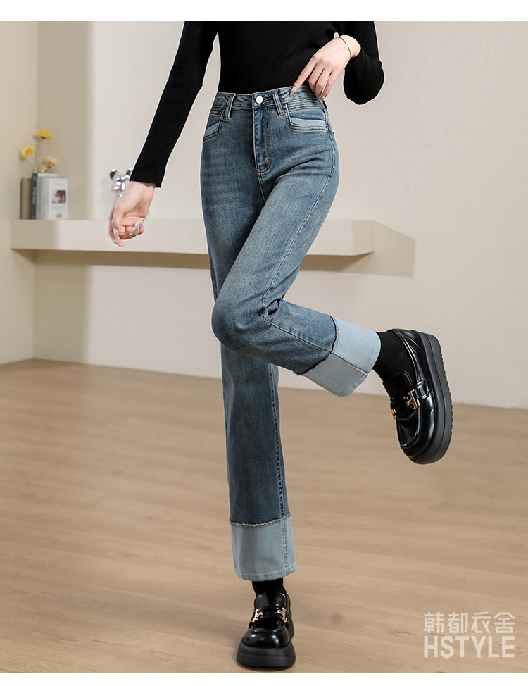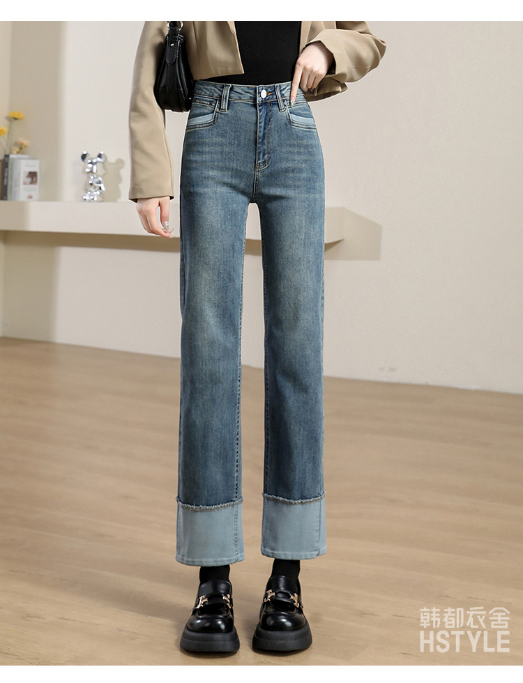 商品名称:【撞色拼接】春秋款九分裤直筒裤时尚休闲裤脚撞色拼接女式牛仔裤 162443