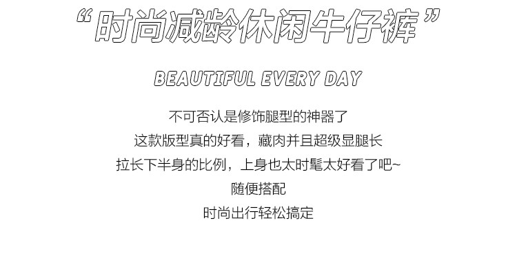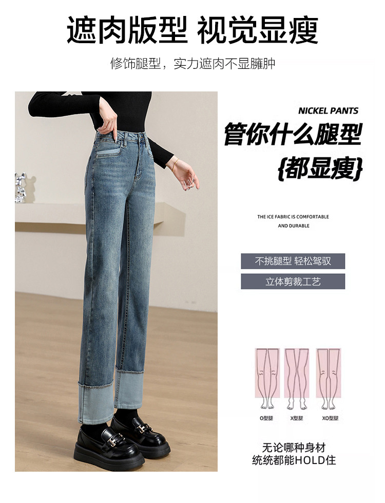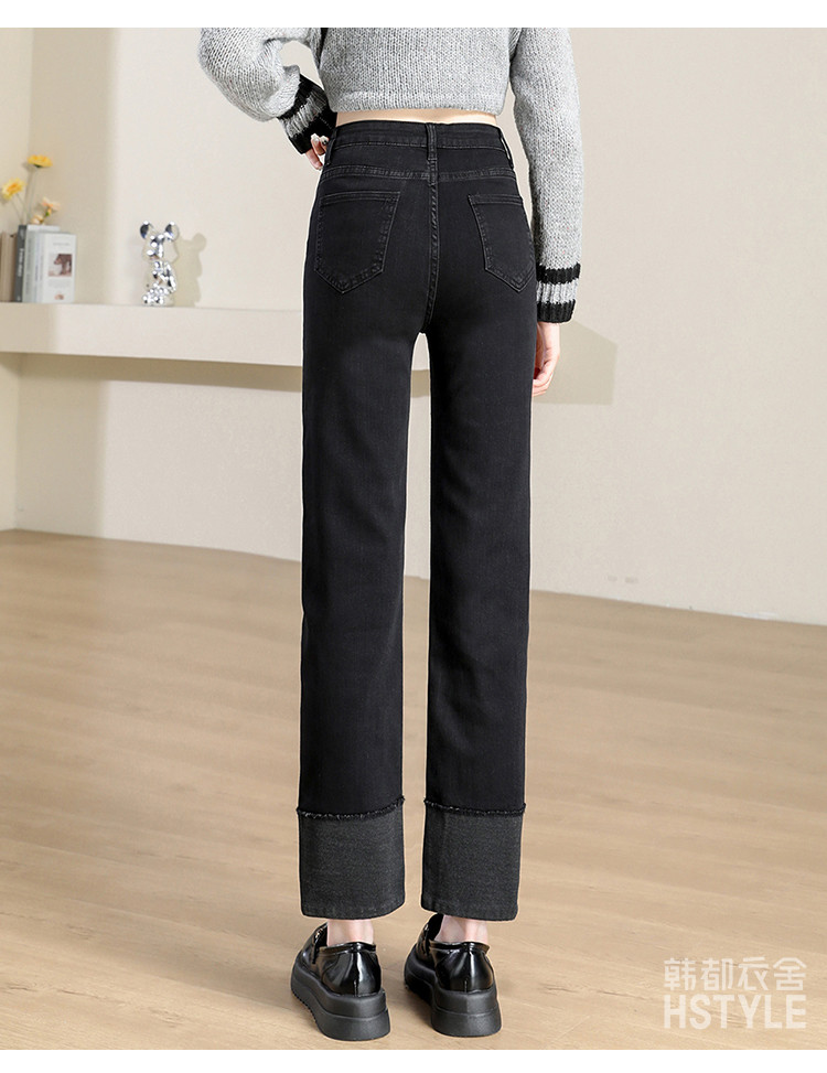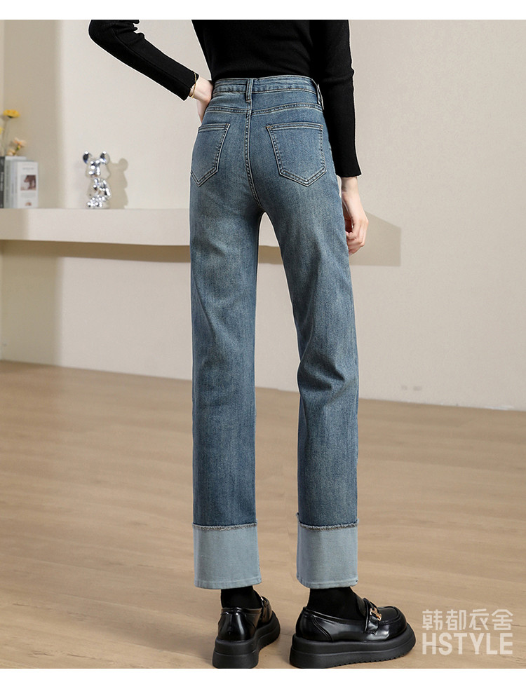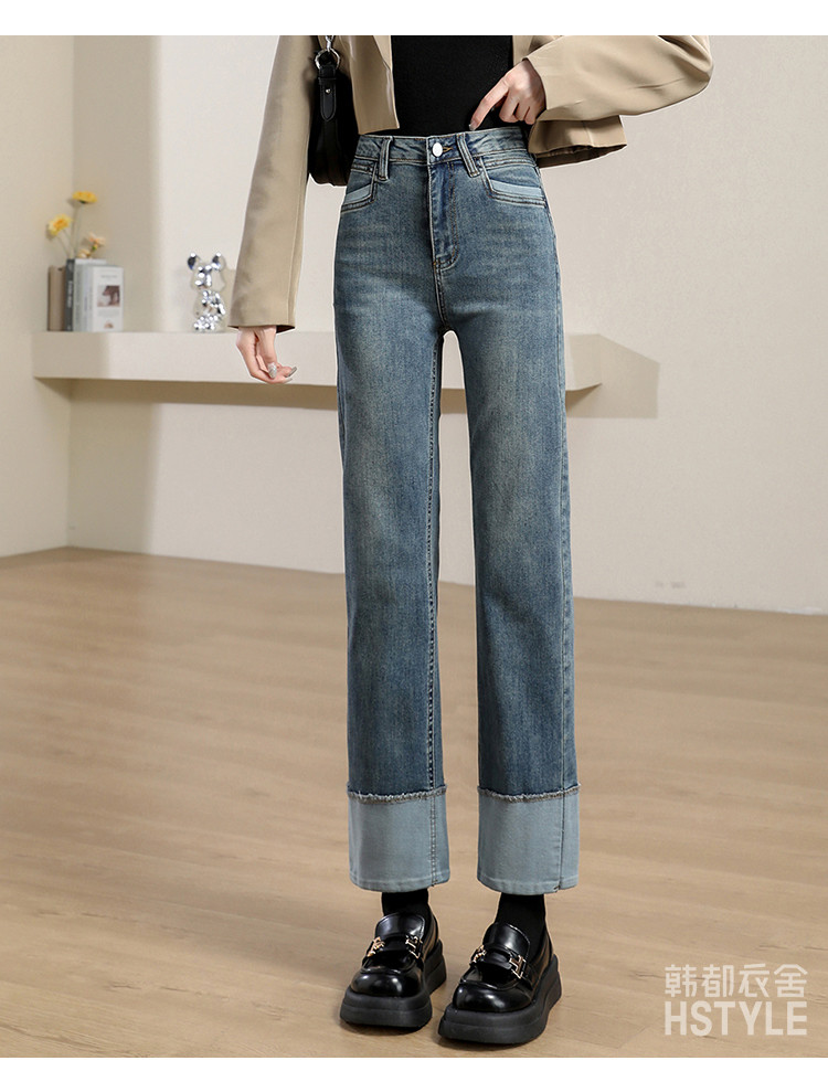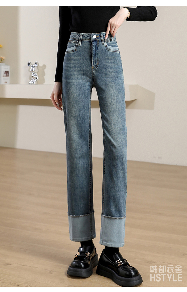 商品名称:【撞色拼接】春秋款九分裤直筒裤时尚休闲裤脚撞色拼接女式牛仔裤 162443