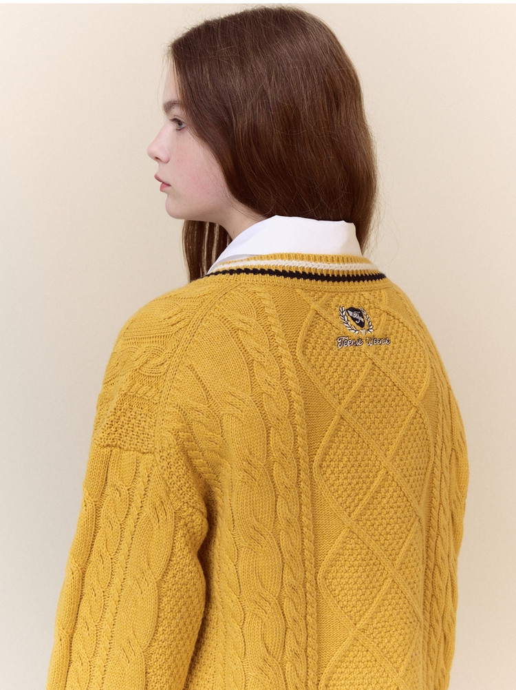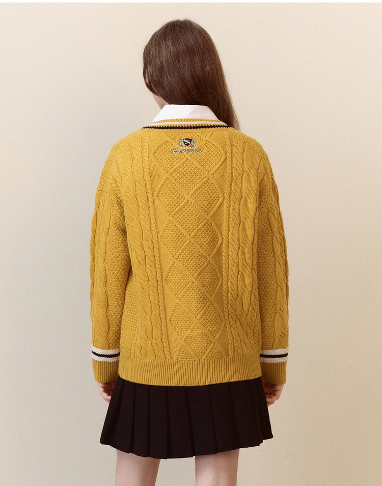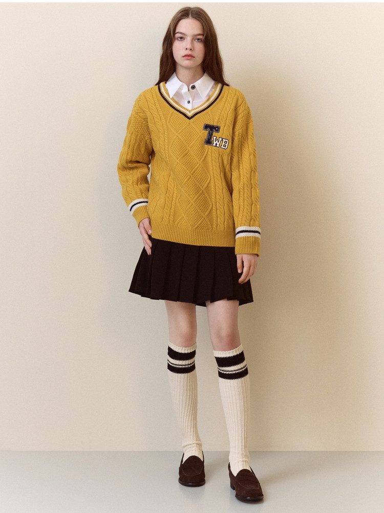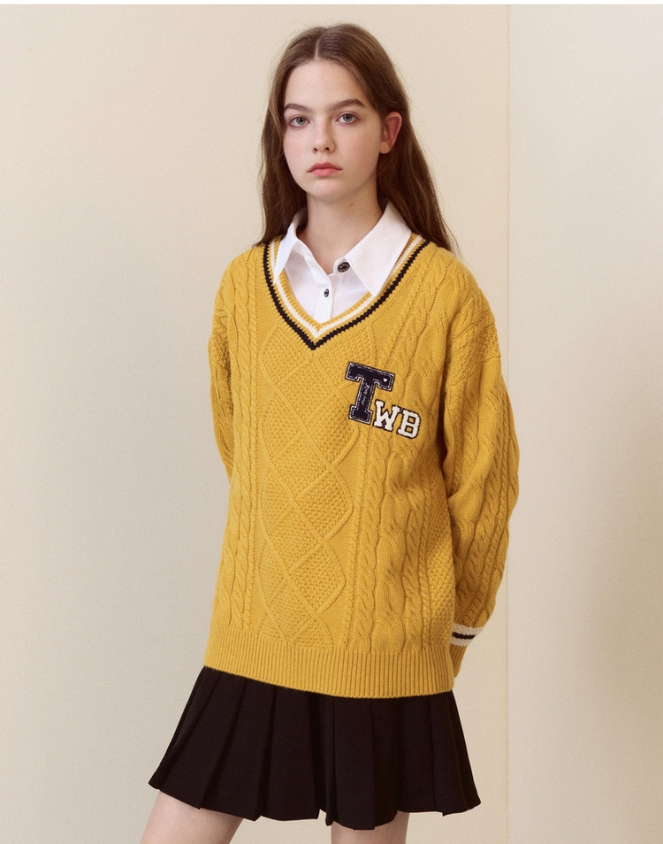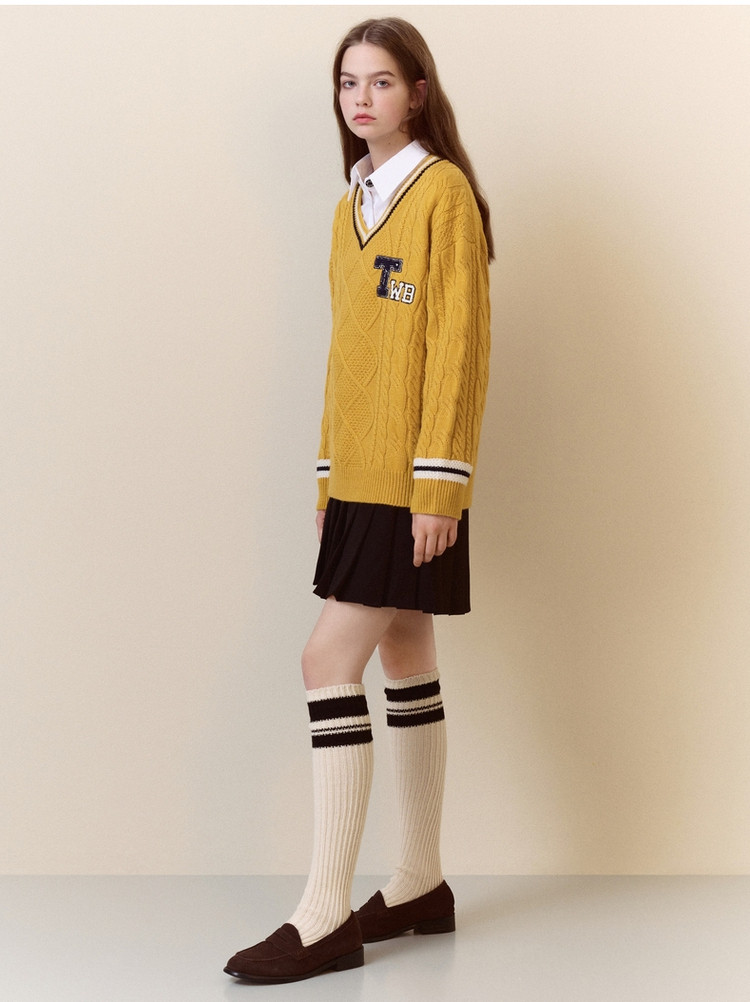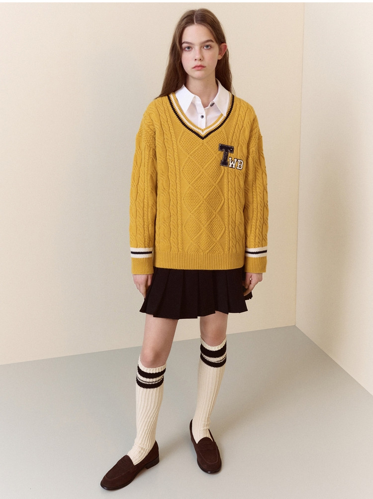 小熊春秋款宽松V领套头毛衣针织衫内搭外穿 734657