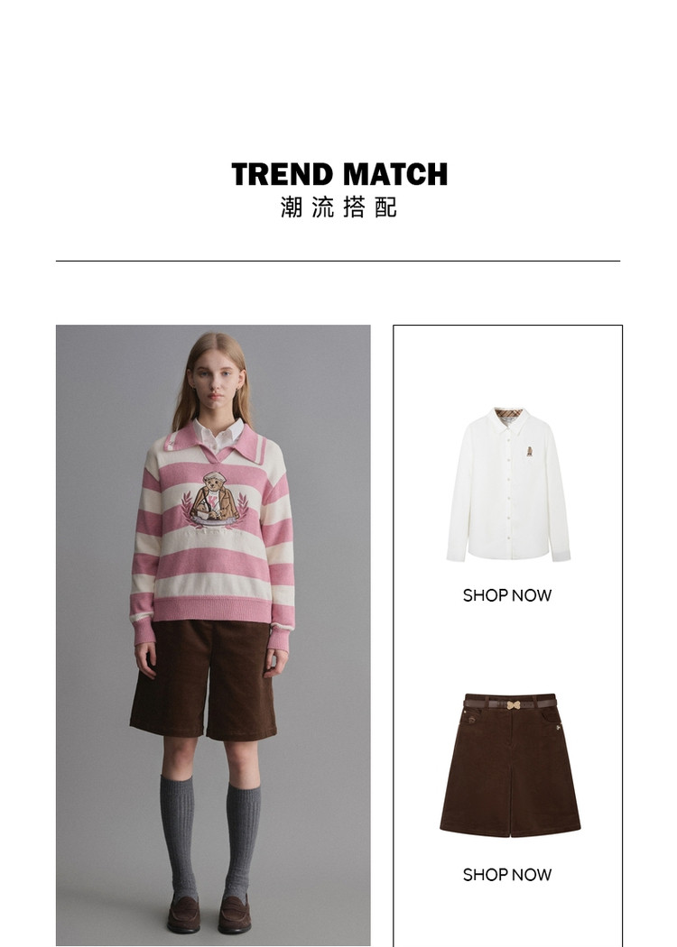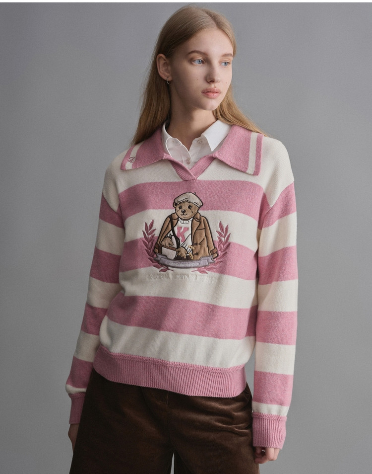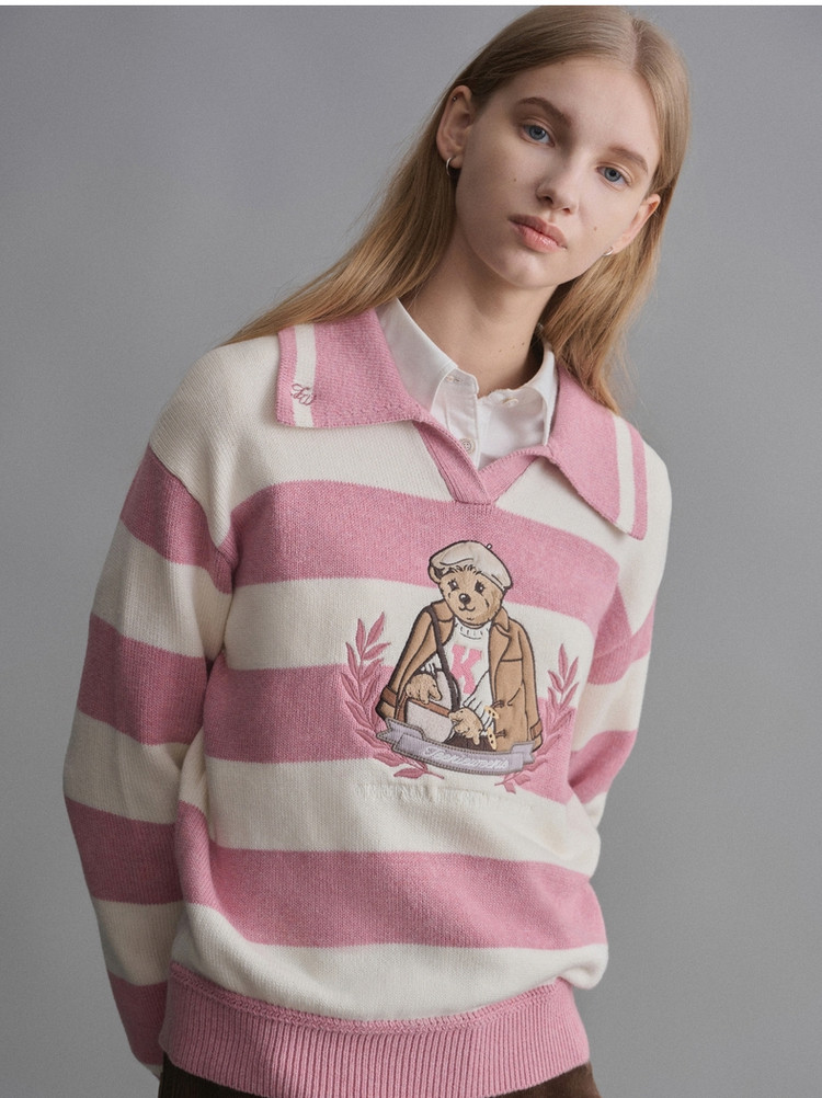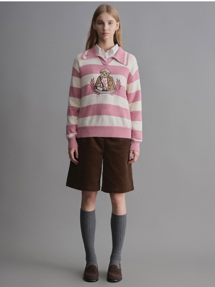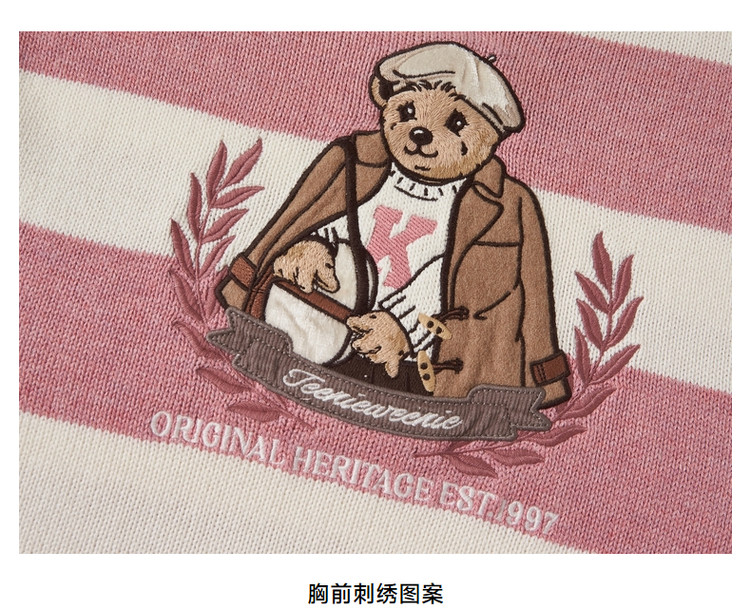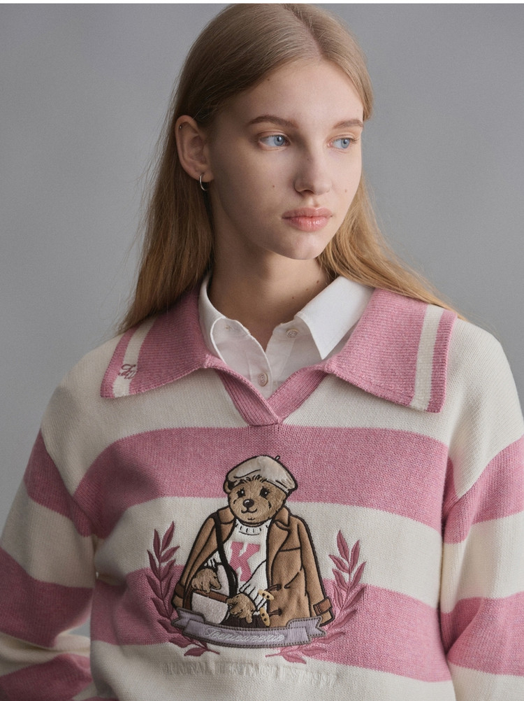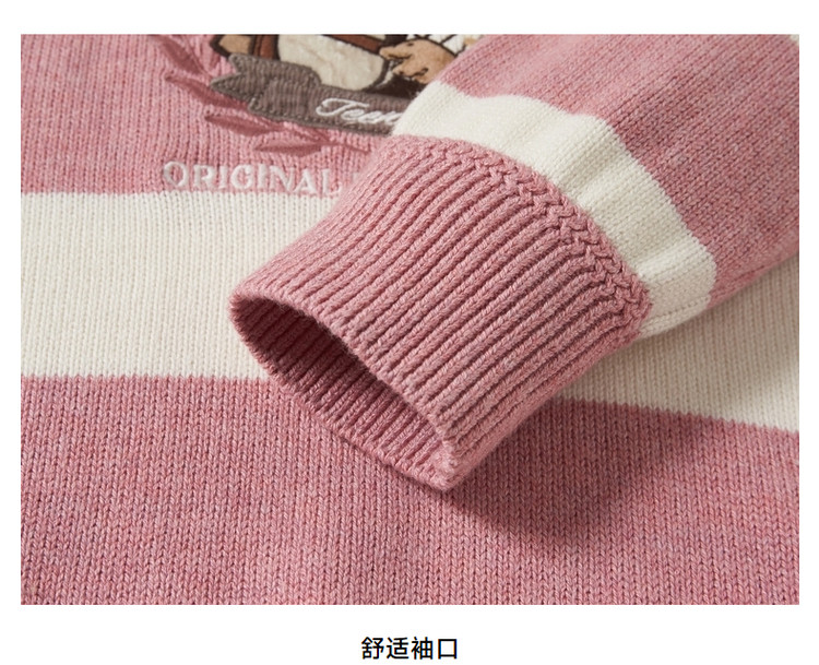 小熊春秋款撞色宽条纹V领毛衣针织衫女士 548481