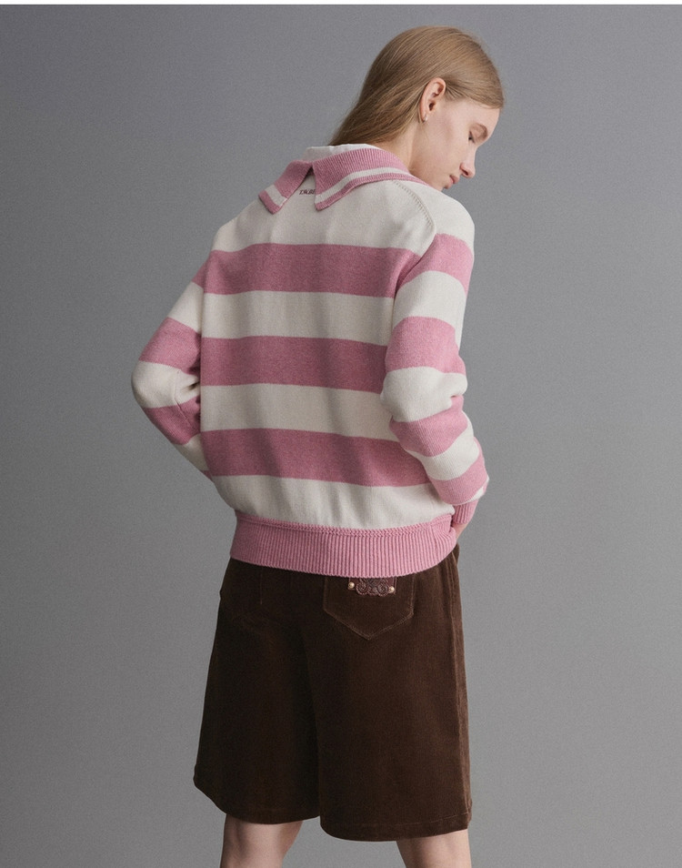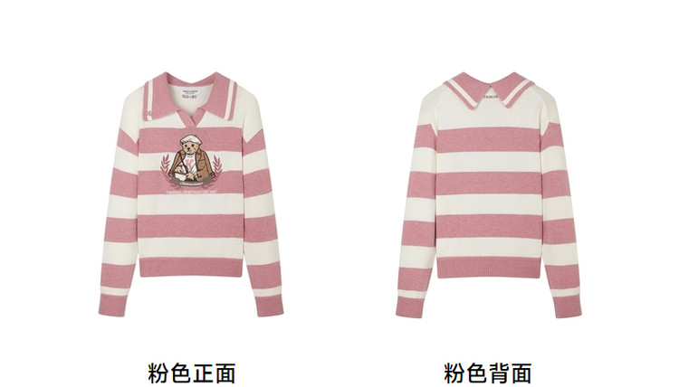 商品名称:小熊春秋款撞色宽条纹V领毛衣针织衫女士 548481