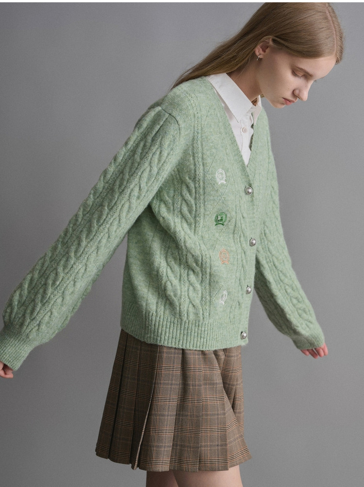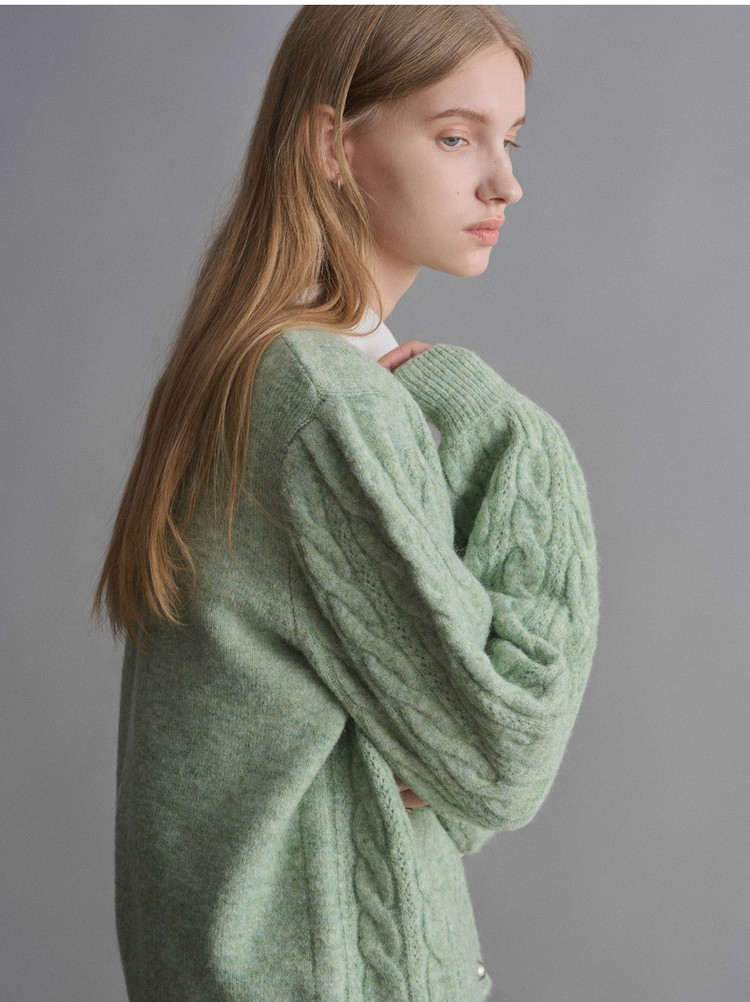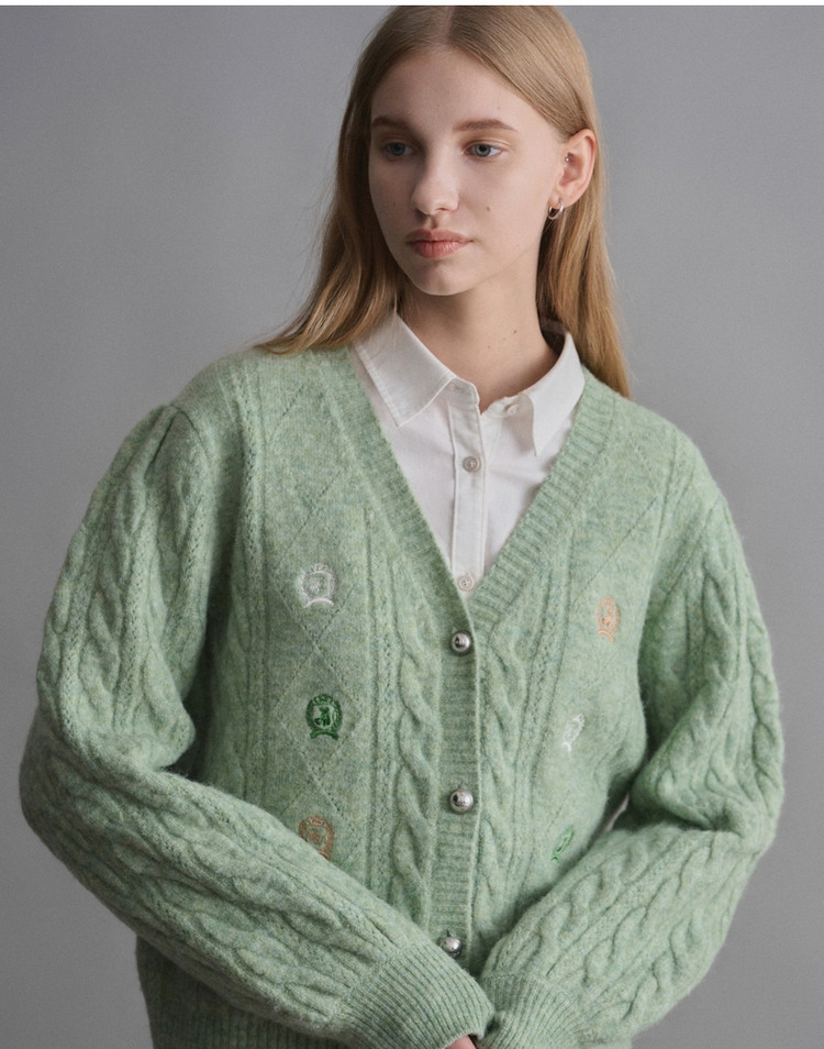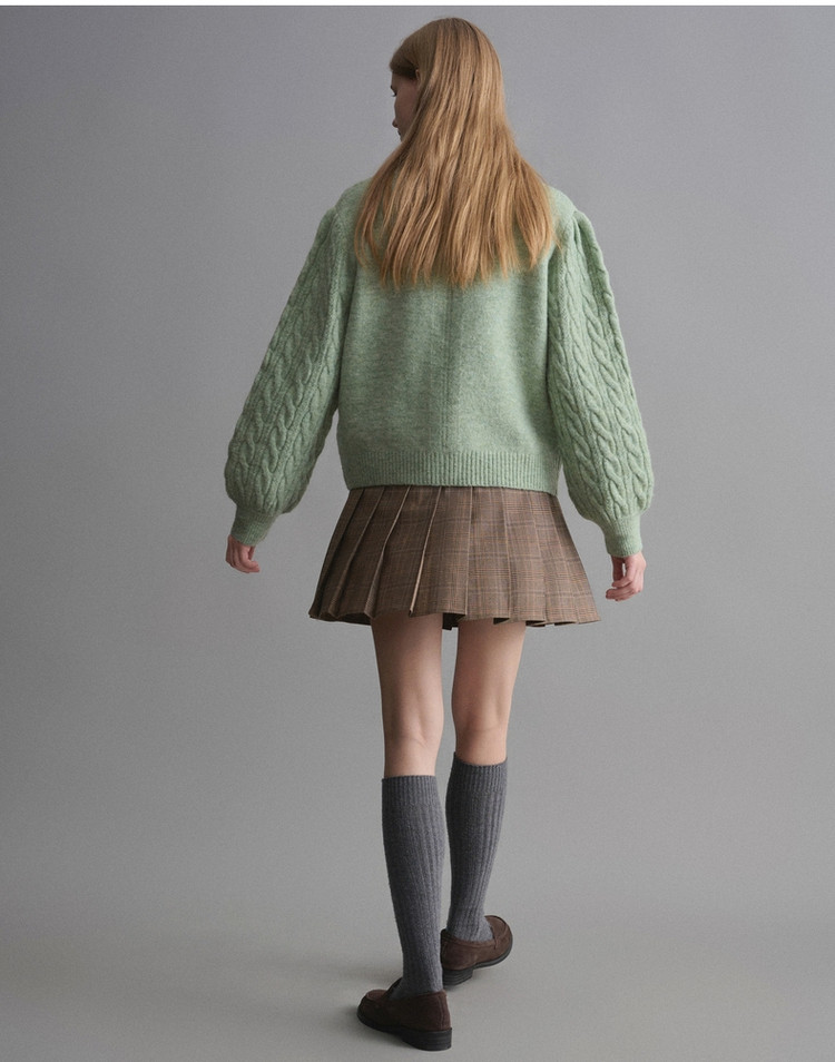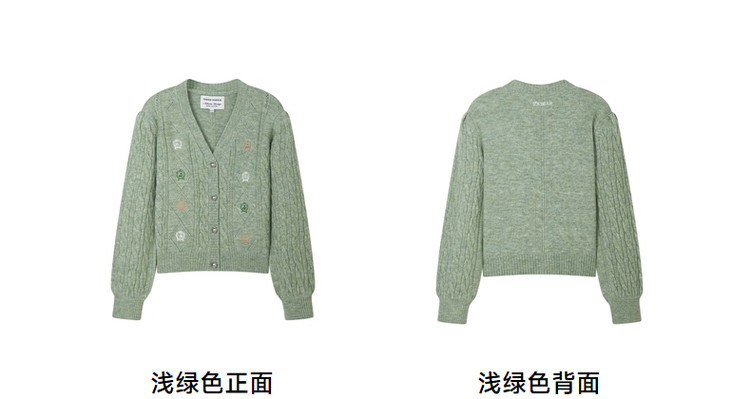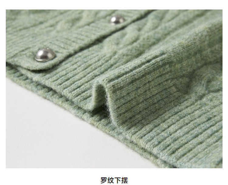 春季针织衫女含绵羊毛通勤时尚翻领针织开衫女 191323